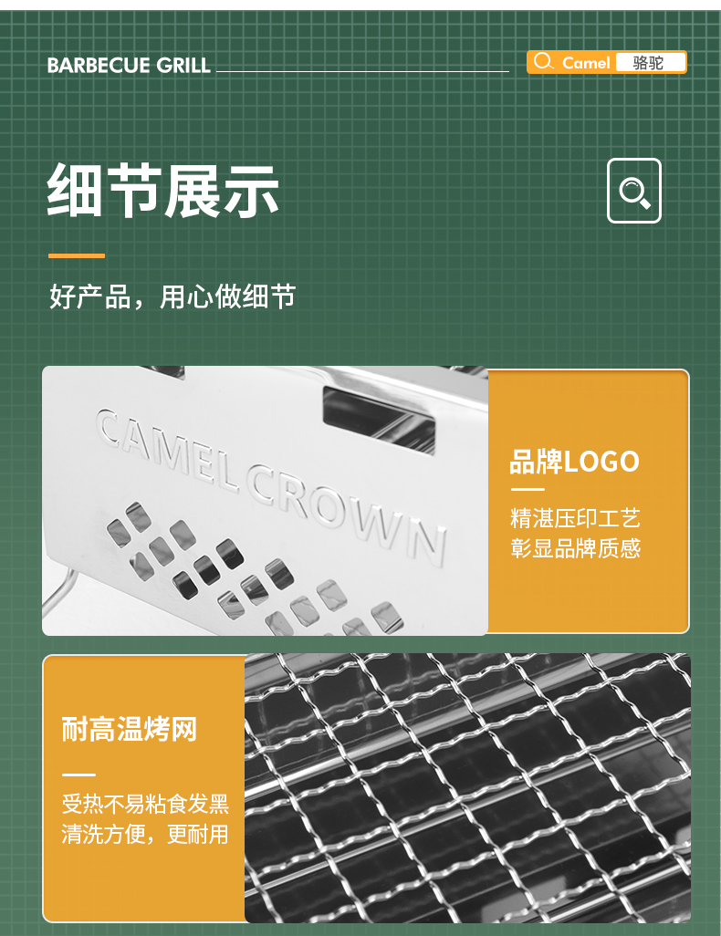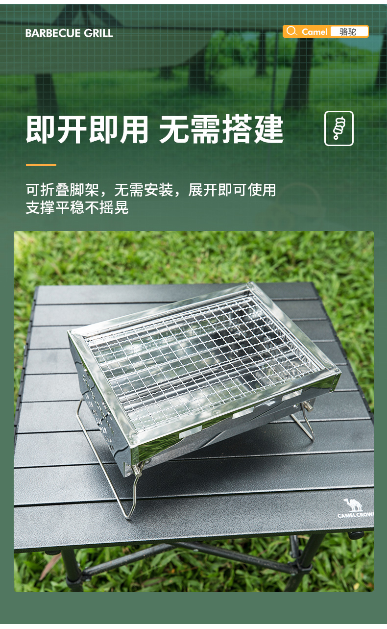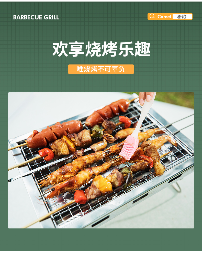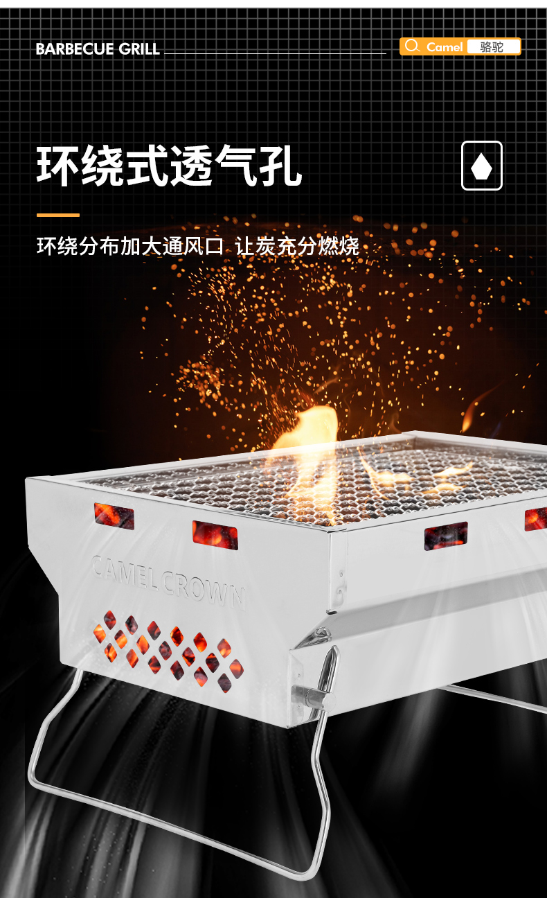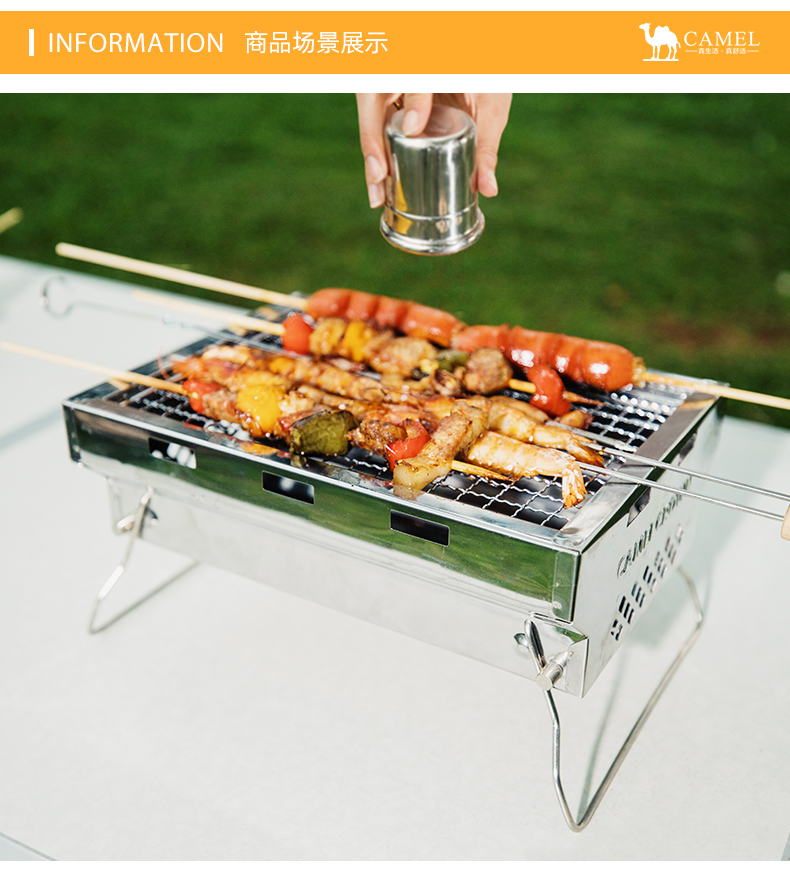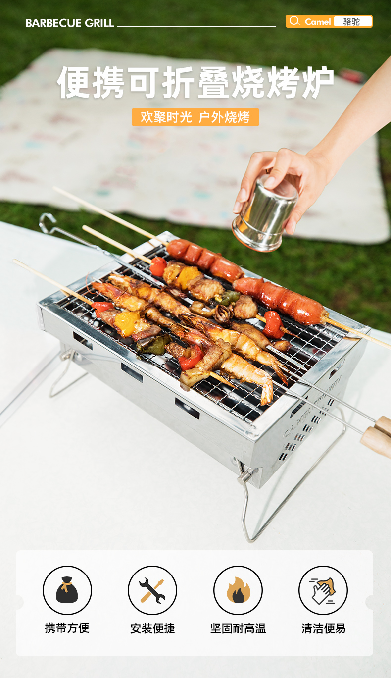 骆驼折叠烧烤架子家用木炭小型不锈钢烧烤炉户外庭院野外烤串 A1S3PW101_A1S3PW102_A1SKTC031_A1SKTC032_A1SKTC033_A1SKTC034_A1SKTC047