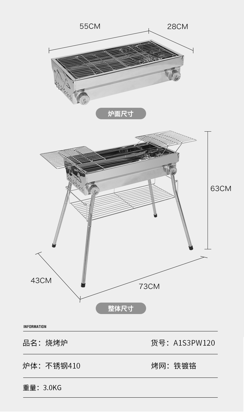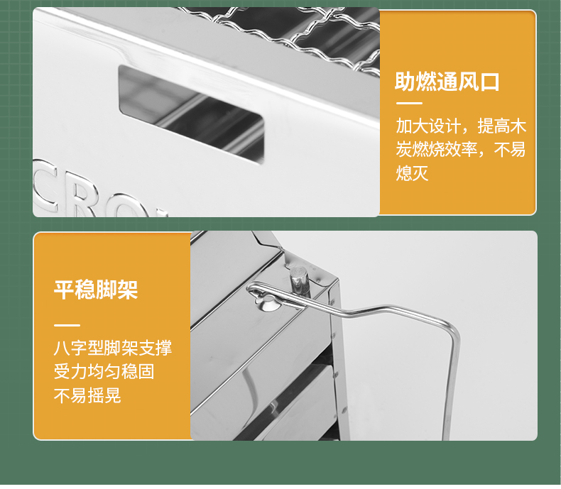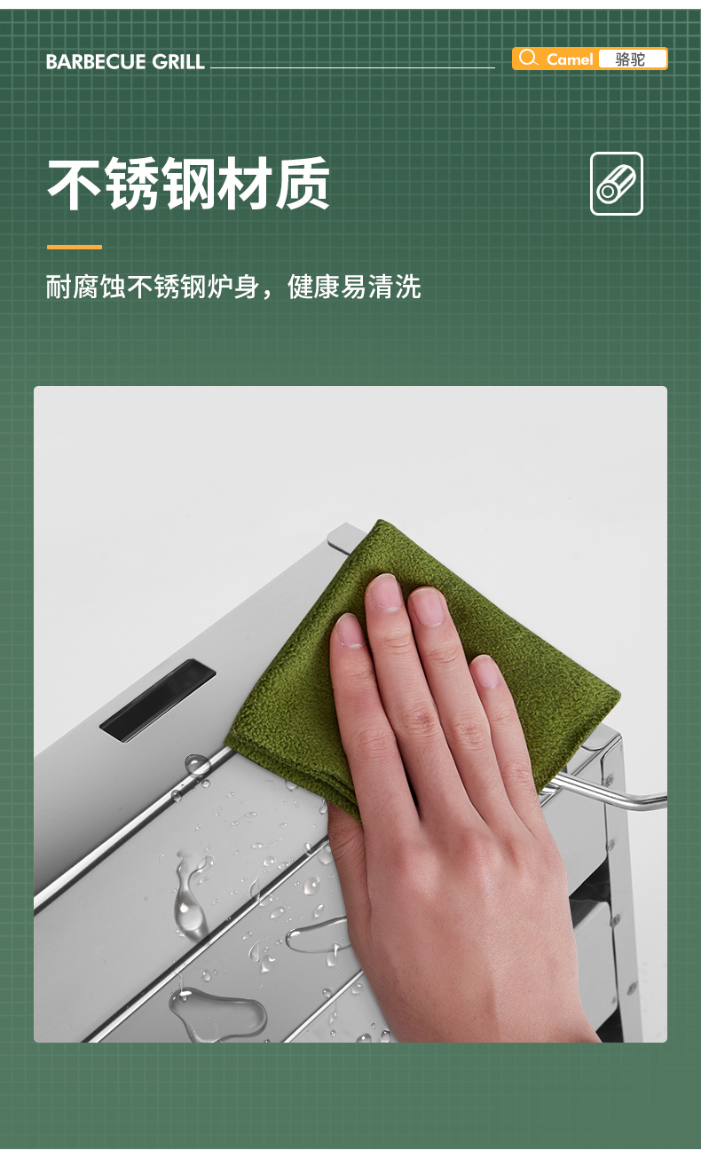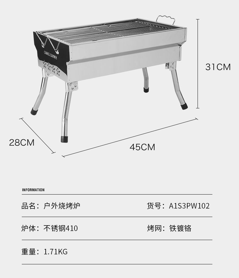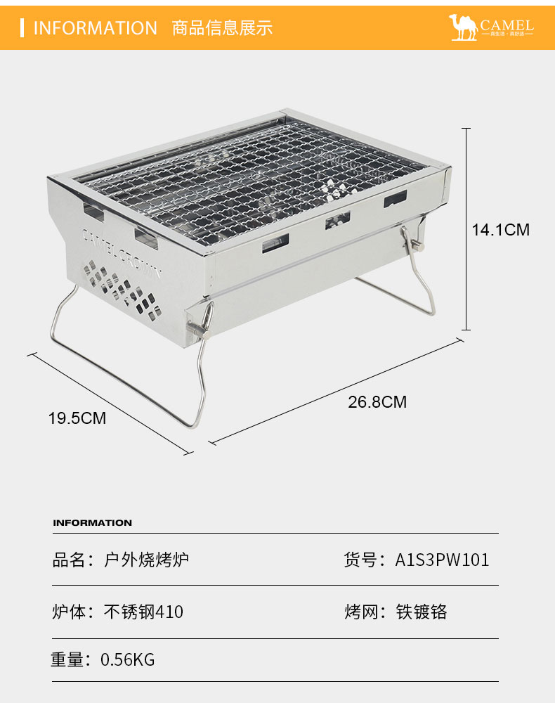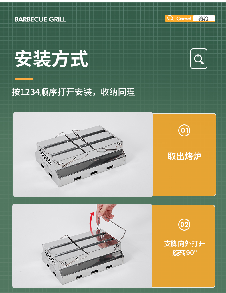 骆驼折叠烧烤架子家用木炭小型不锈钢烧烤炉户外庭院野外烤串 A1S3PW101_A1S3PW102_A1SKTC031_A1SKTC032_A1SKTC033_A1SKTC034_A1SKTC047