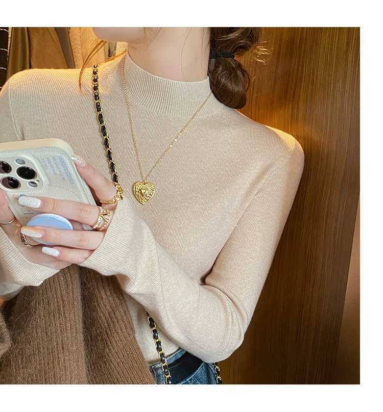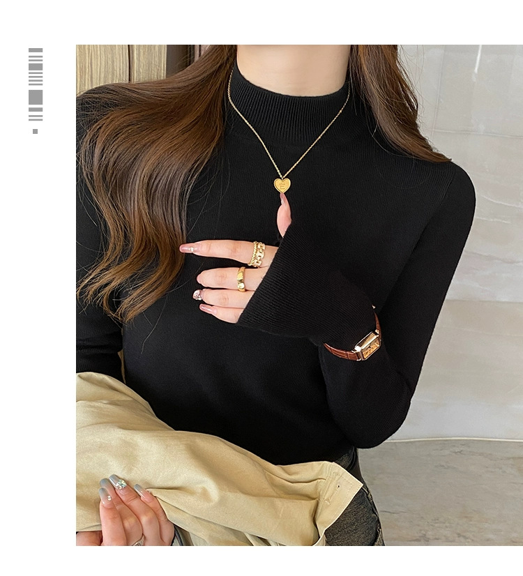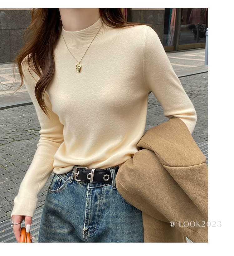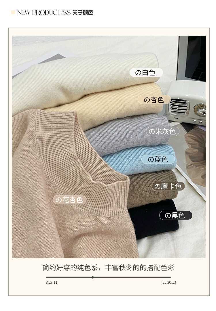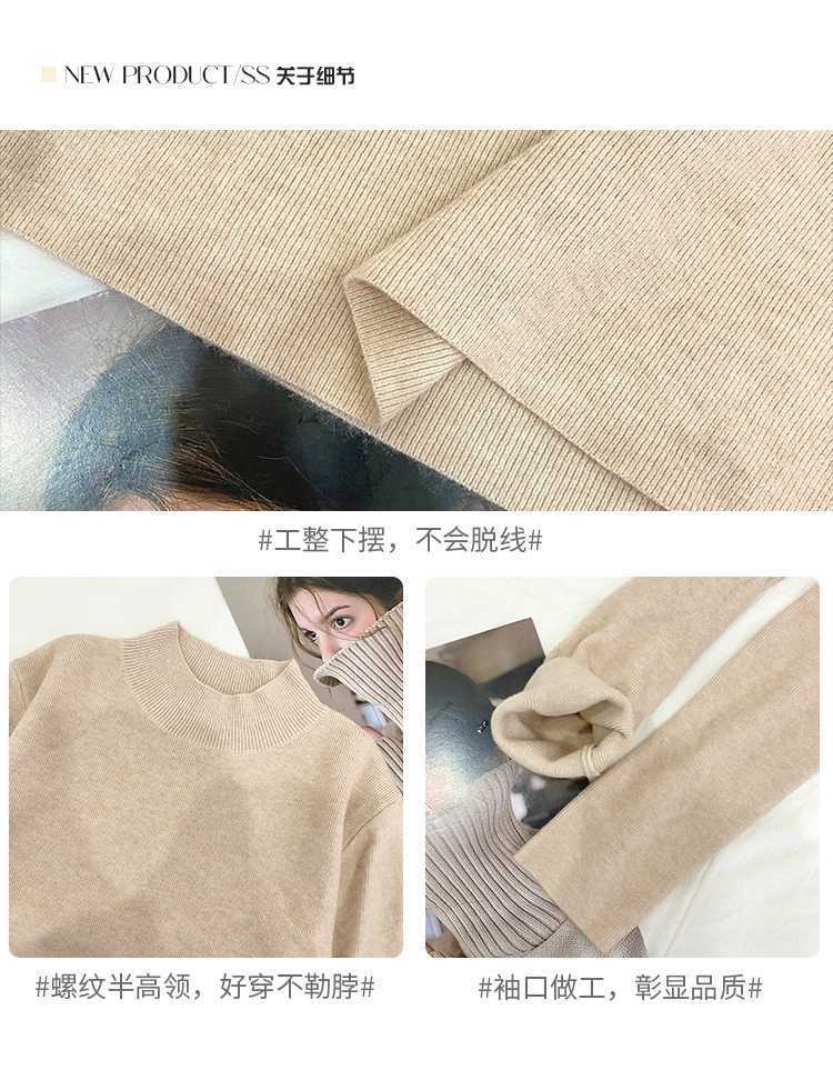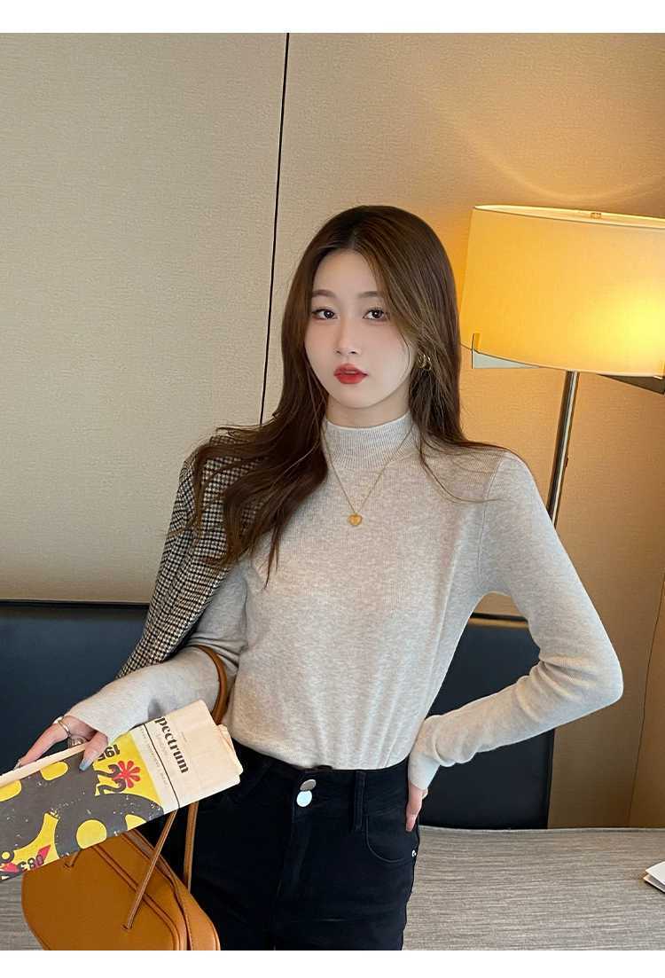 【买一送一】蓝色半高领针织衫打底毛衣内搭女秋冬打底衫2025新款修身长袖中领上衣