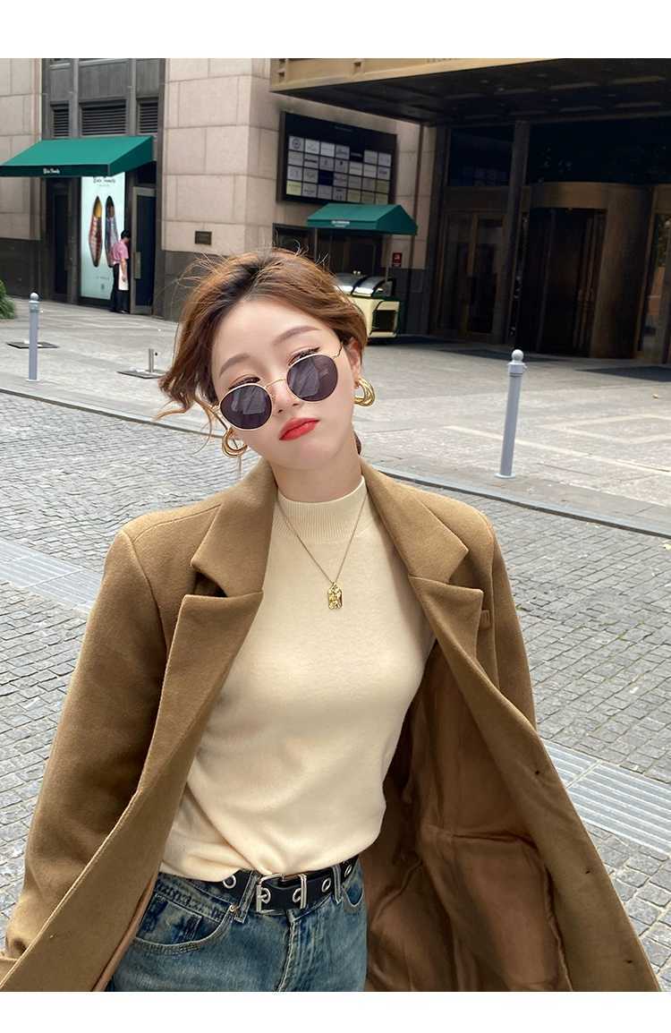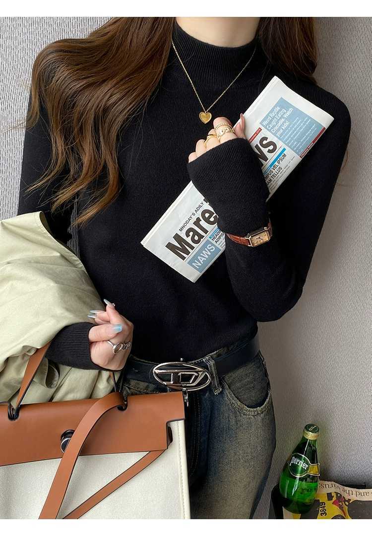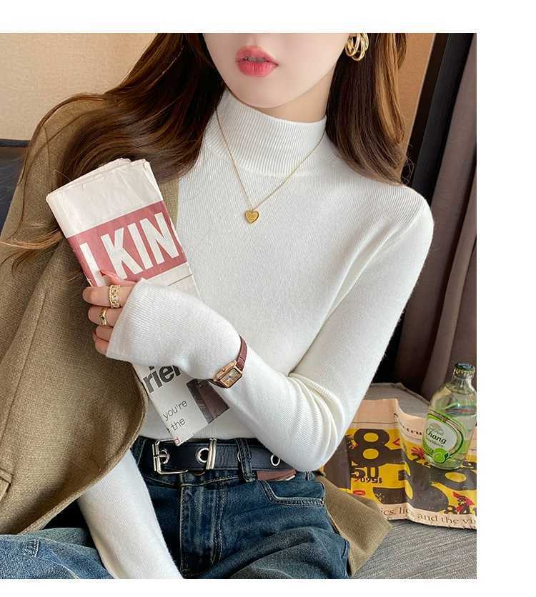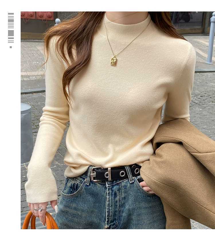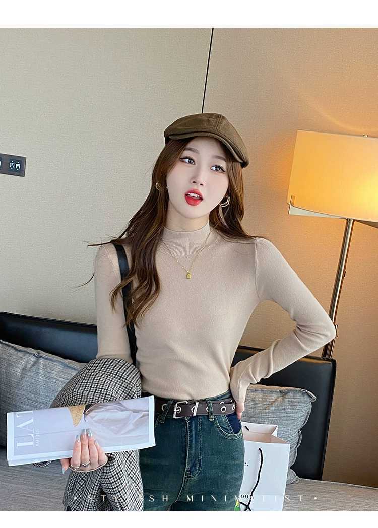【买一送一】蓝色半高领针织衫打底毛衣内搭女秋冬打底衫2025新款修身长袖中领上衣