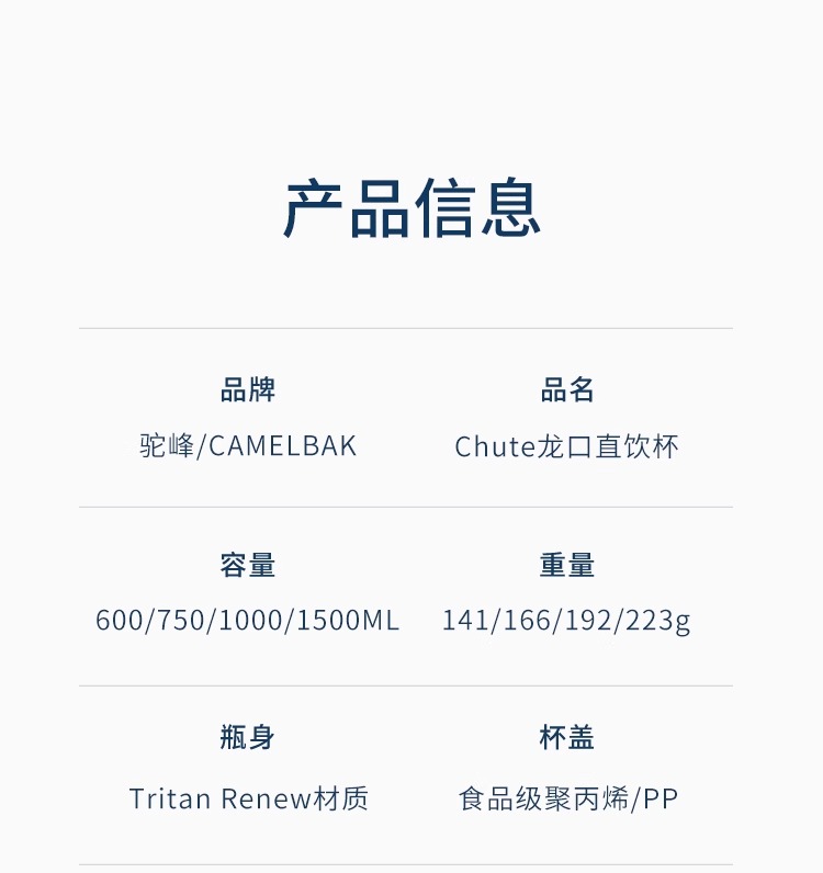 驼峰camelbak运动水杯tritan男生大容量夏季随行杯子健身塑料水壶