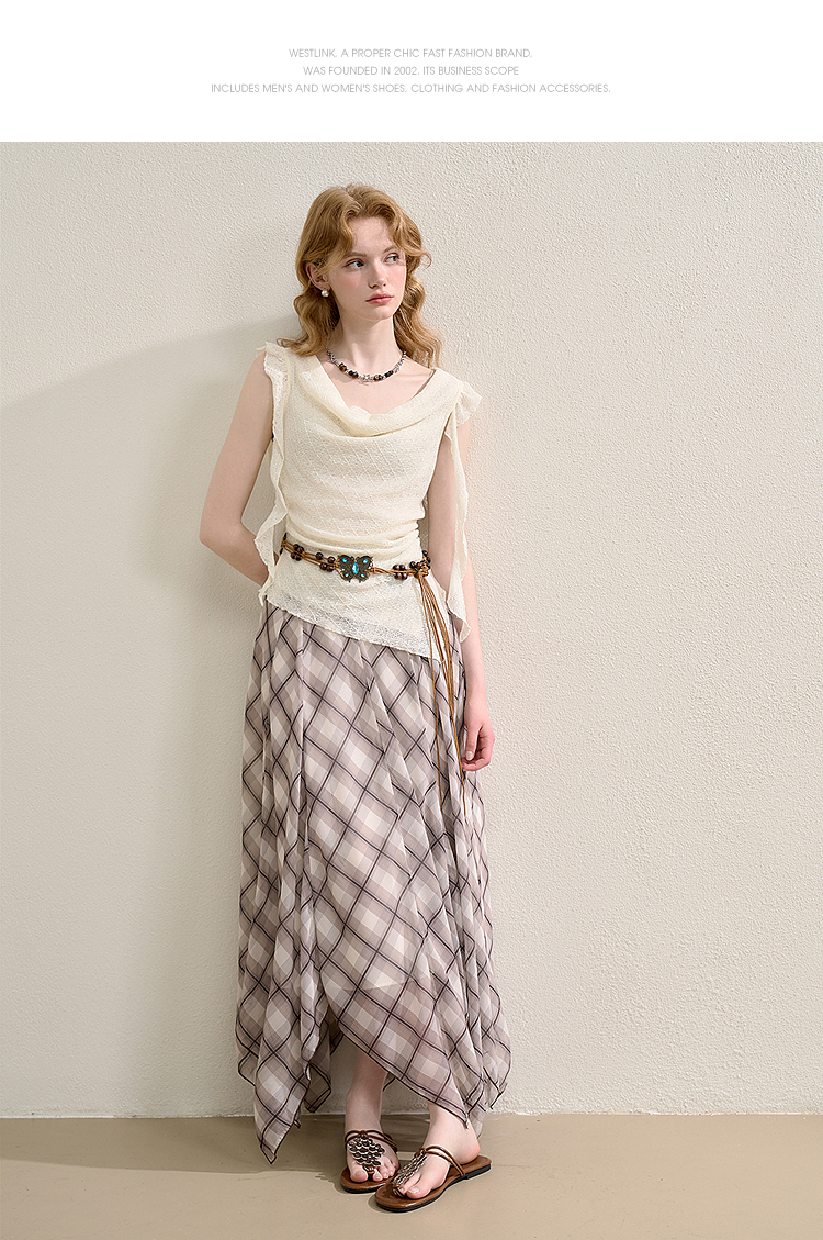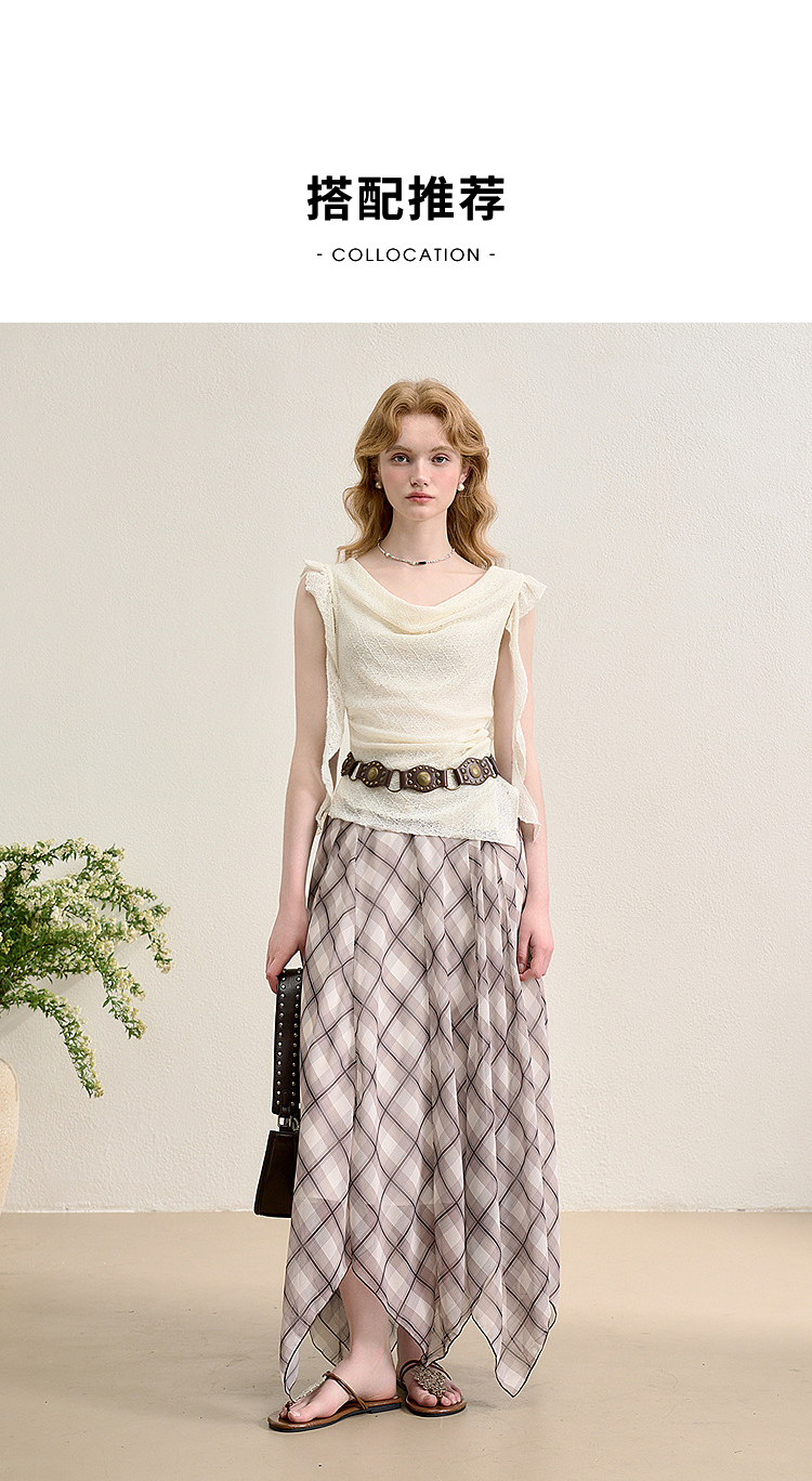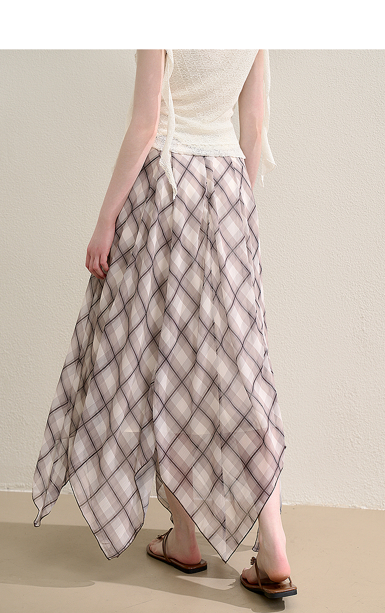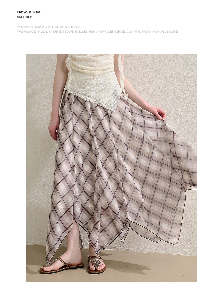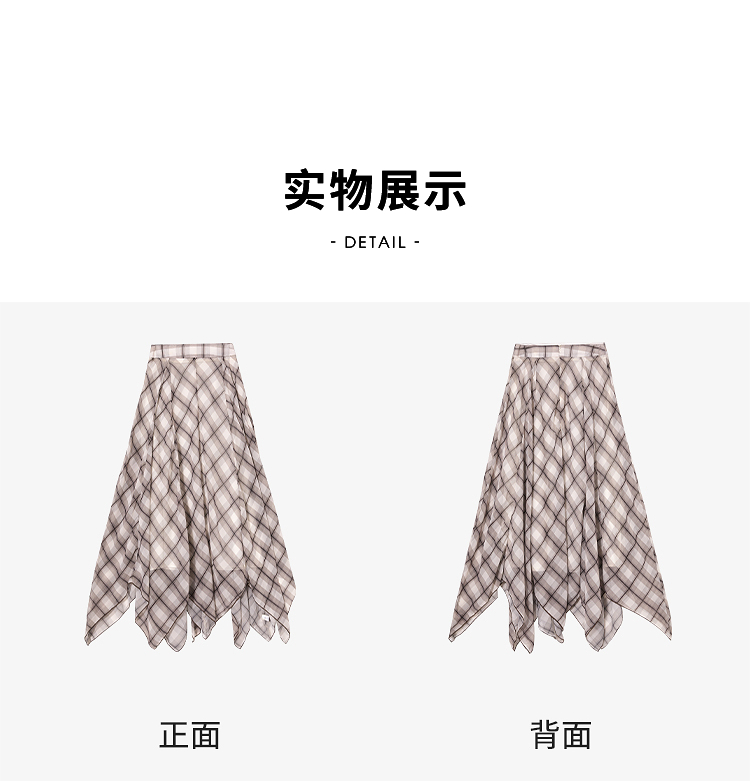 【黑白格纹】慵懒风飘逸裙摆半裙女夏季度假风长裙H0050866