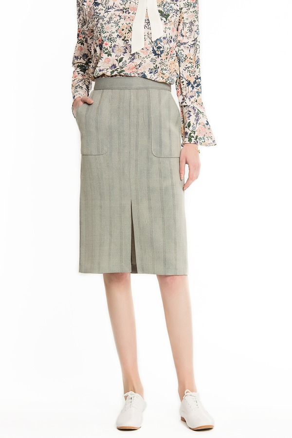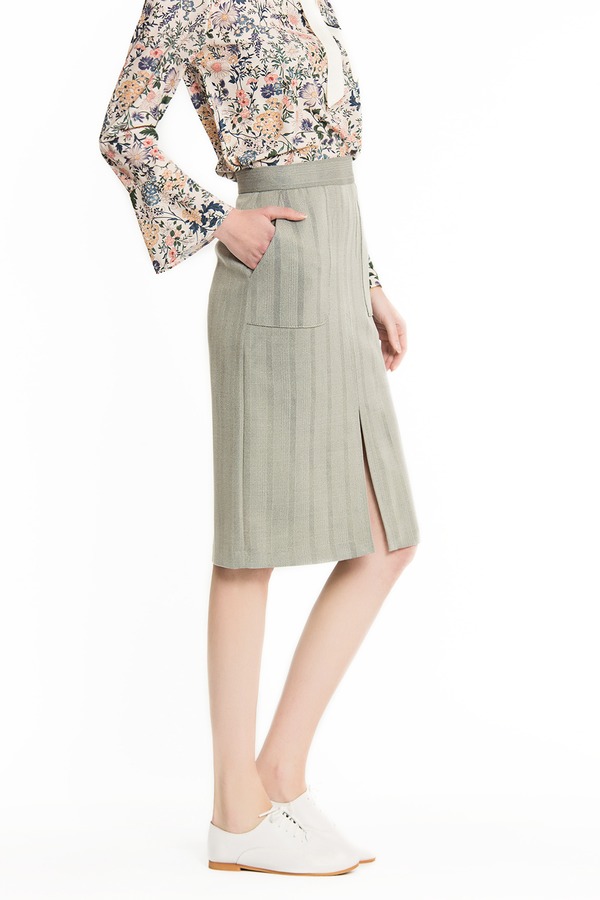 NOIR 灰色开衩一步裙 1399