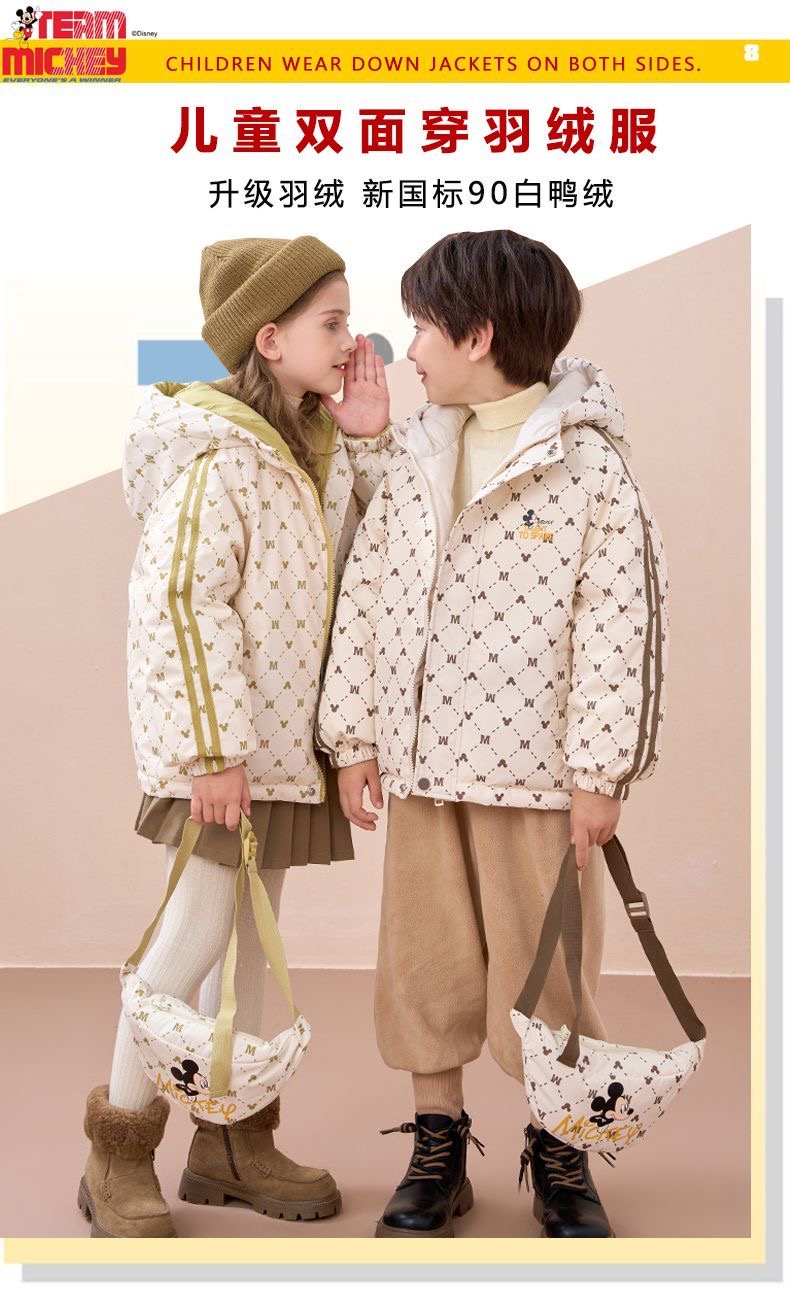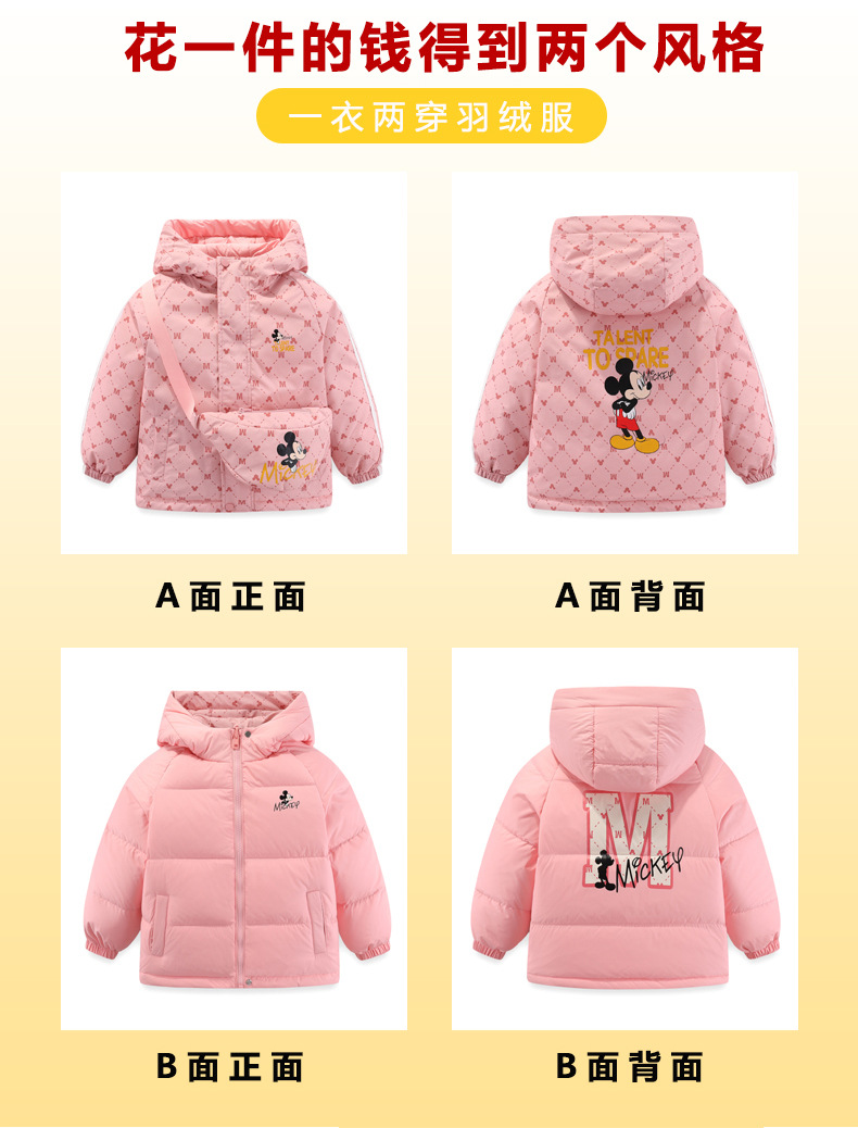 【买就送!挎包同款免费送!】儿童必备入冬神器,暖意双倍双面穿。迪士尼签约设计,超强颜值吊打一切。白鸭绒填充,保暖度杠杠滴。快来抢购,再也不怕小宝贝冻成冰棍啦!