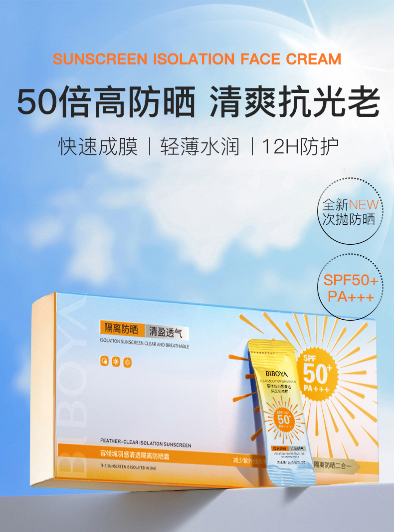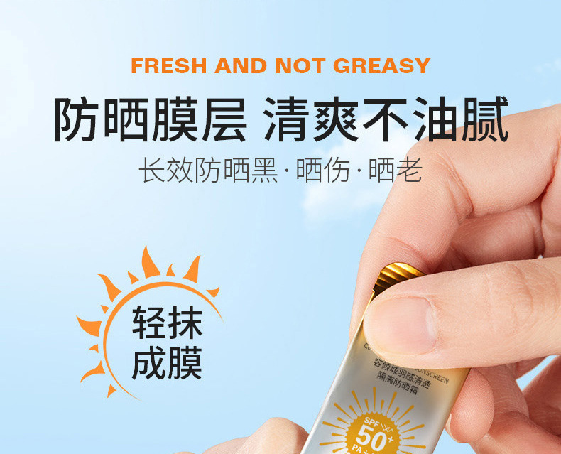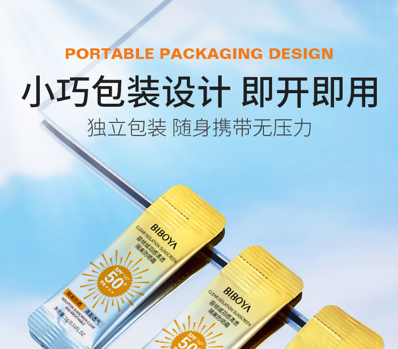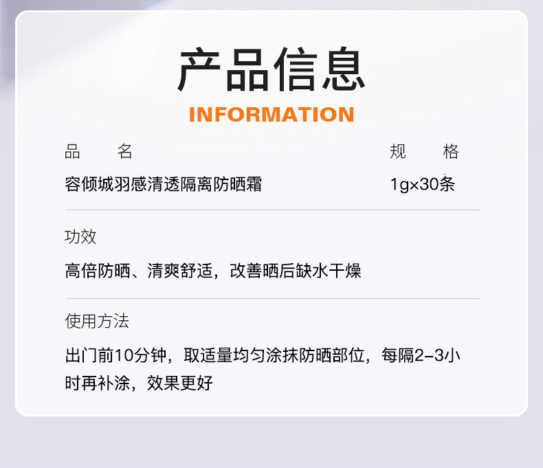 【捡漏/19.9元!独立包装!】容倾城羽感清透隔离防晒霜SPF50+ PA++++,便携装设计,方便携带,随时随地保护肌肤。每次一小包,有效防紫外线,防汗防水,遮瑕清爽不油腻,让肌肤轻松呼吸。