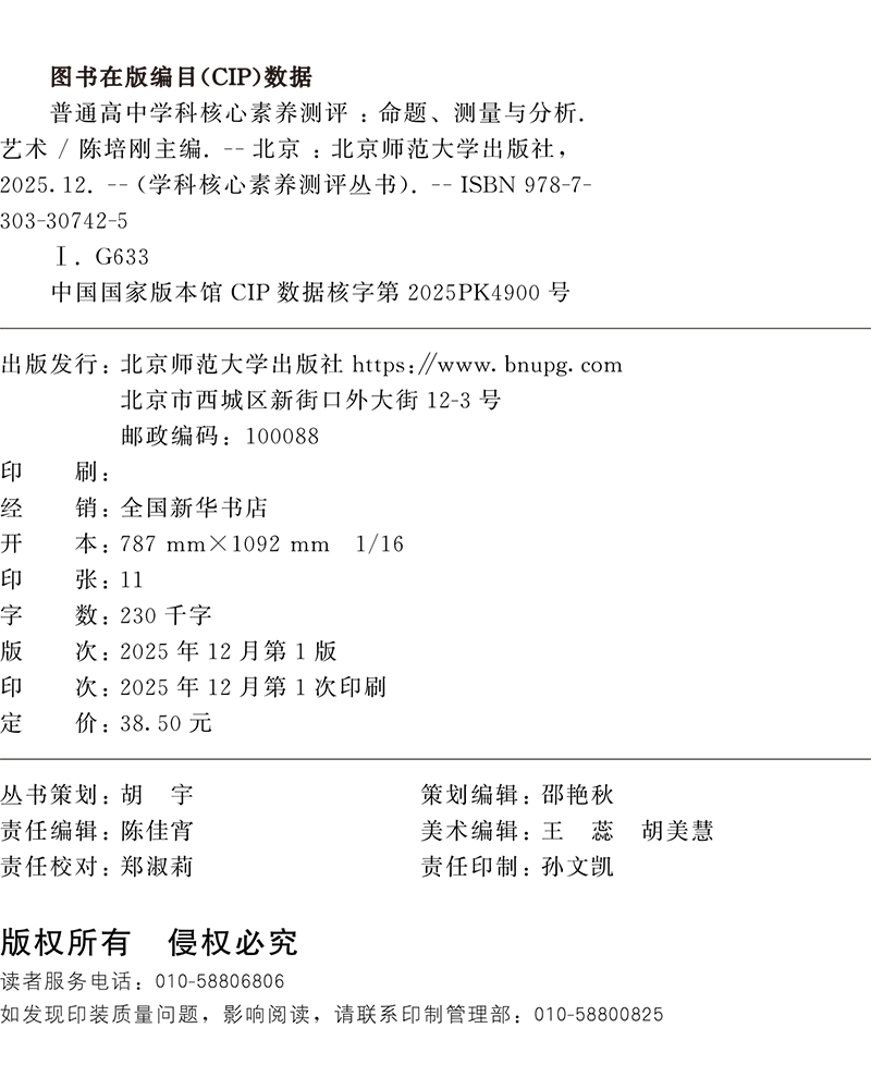 普通高中学科核心素养测评:命题、测量与分析.艺术 9787303307425 陈培刚/主编 学科核心素养测评丛书 北京师范大学出版社 正版书籍