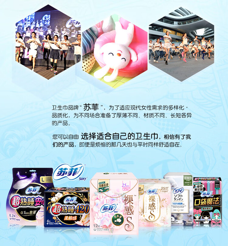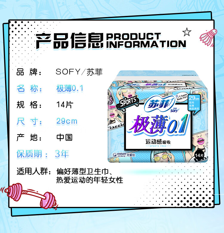 苏菲极薄0.1运动无感超长透气日夜用卫生巾290mm 14片 超薄棉柔姨妈巾 1187782
