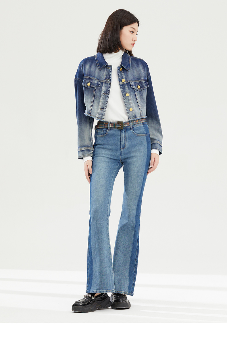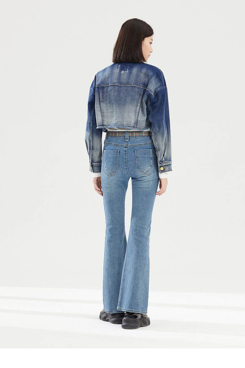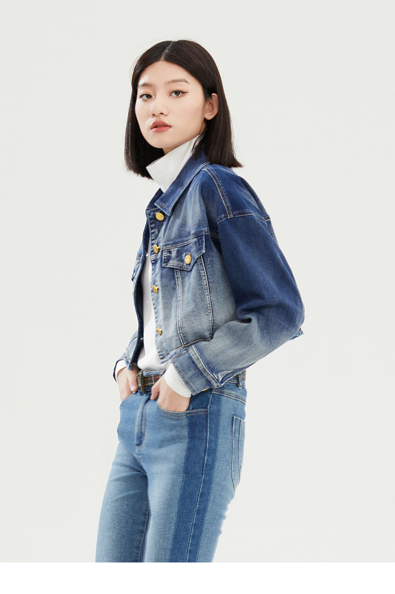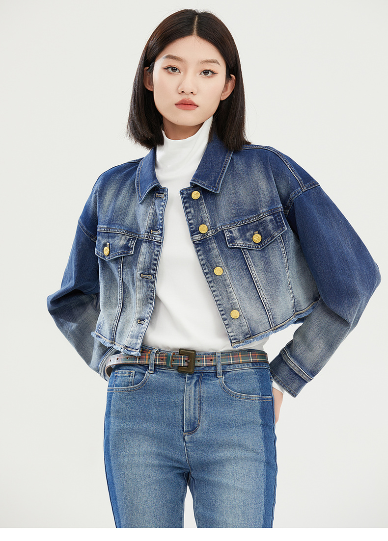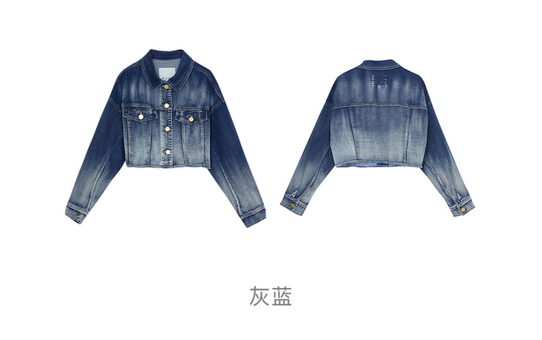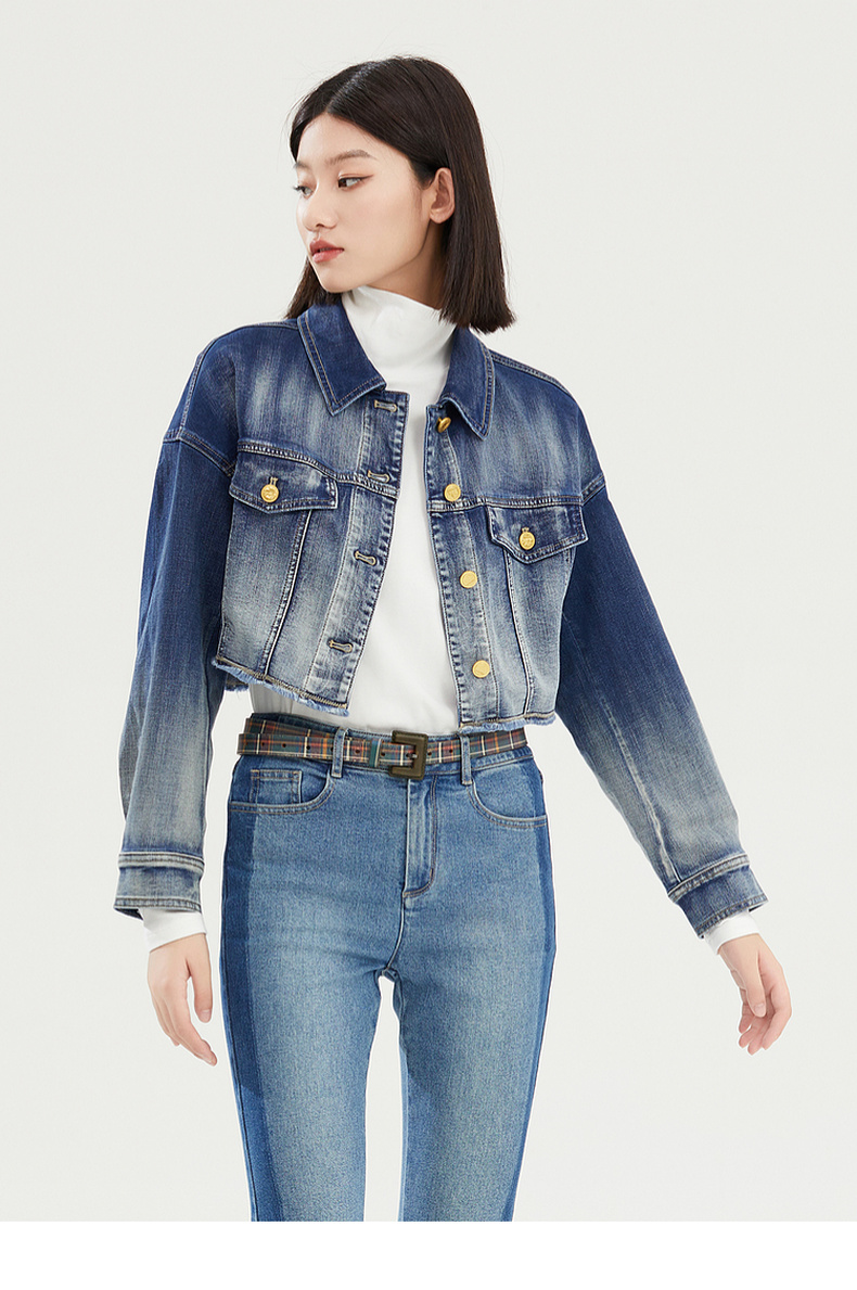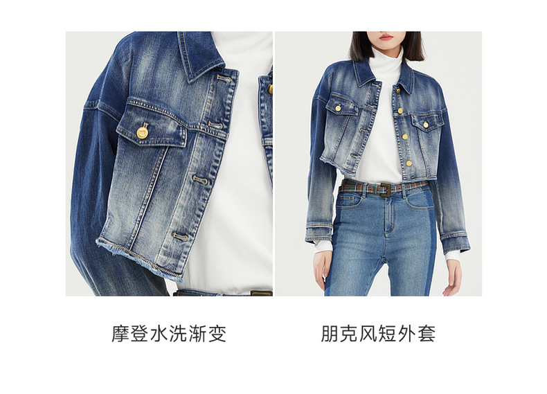 谜底复古牛仔外套女2023秋新款百搭时尚毛边短外套长袖236MW7086