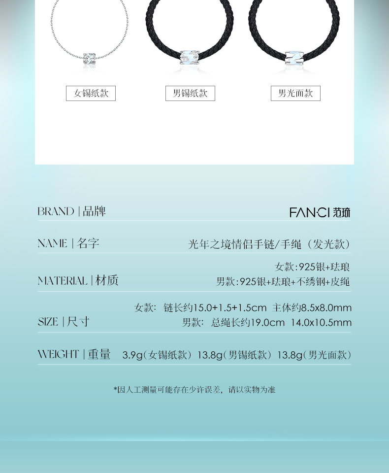 Fanci范琦银饰 【光年系列】光年之境情侣手链发光手环纪念日礼物
