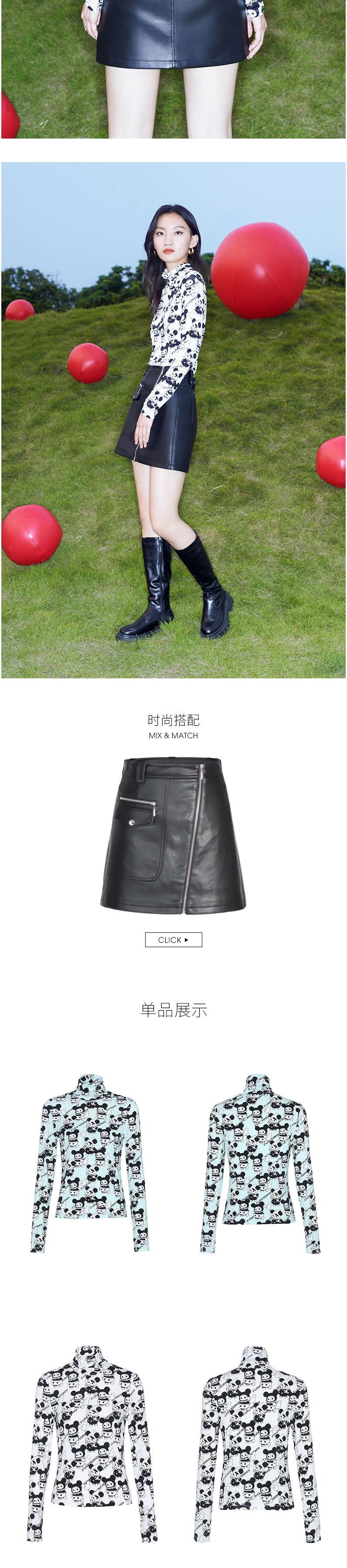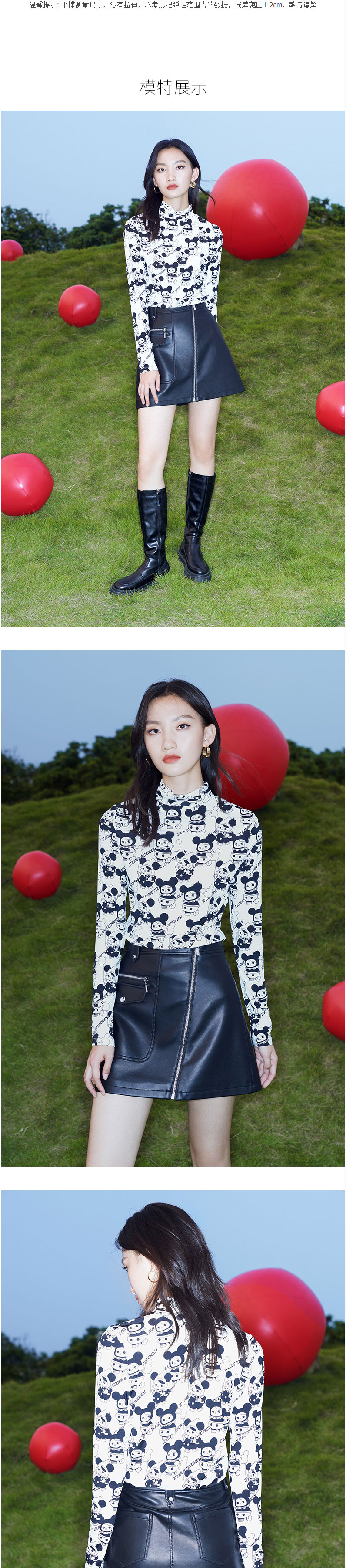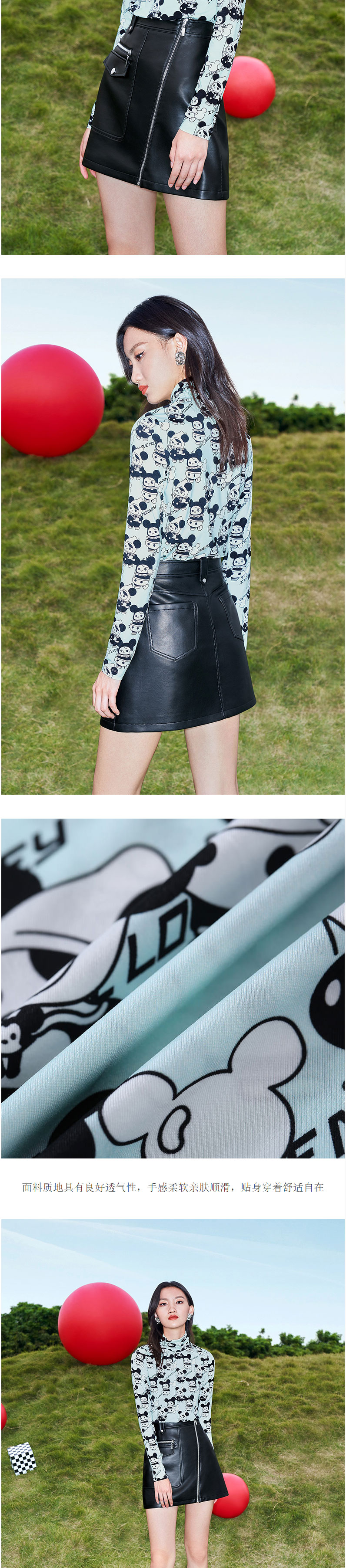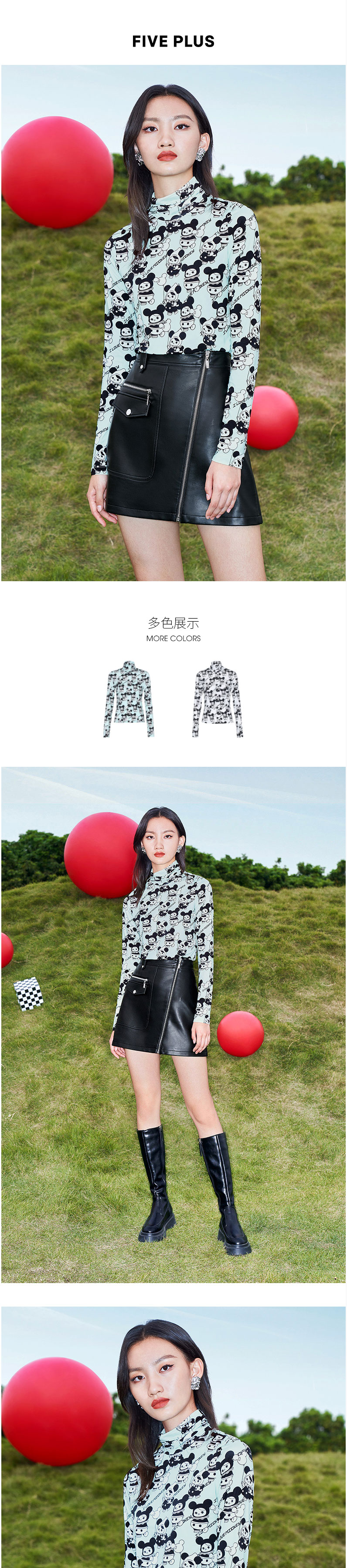 FIVE PLUS2022新款女春装泡泡玛特联名设计感T恤女高领打底衫印花 2WN1020150
