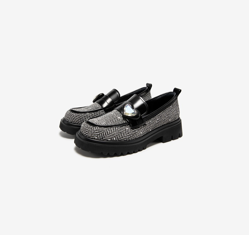 千百度百搭乐福鞋女秋季厚底增高漆皮小皮鞋真皮不累脚通勤A23436904
