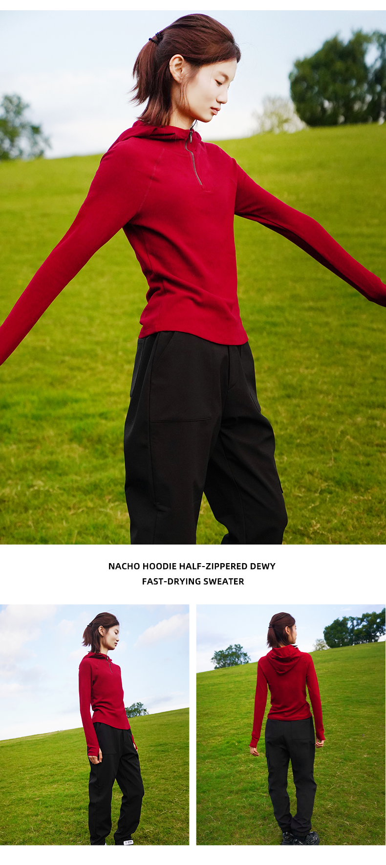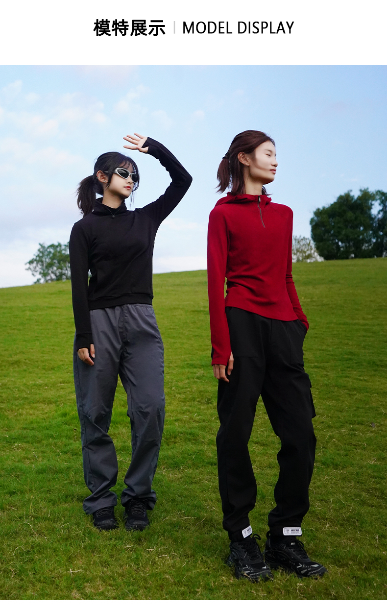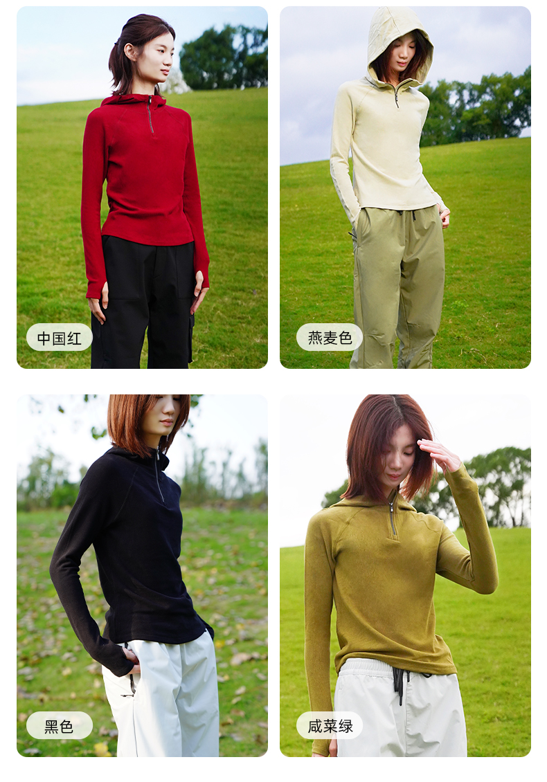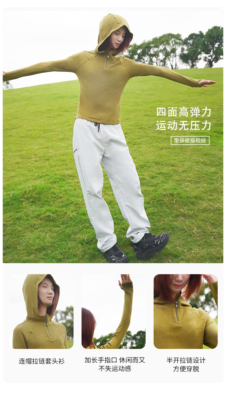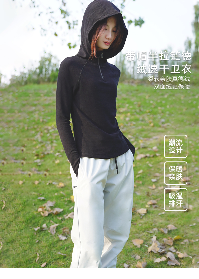 纳趣秋冬新款德绒美肤衣打底衫女士半开襟连帽内搭保暖上衣