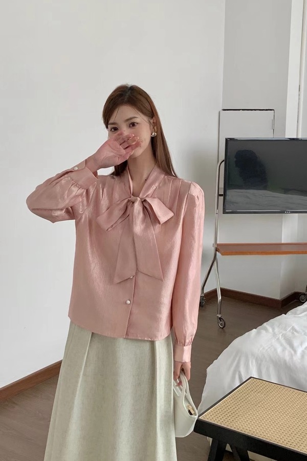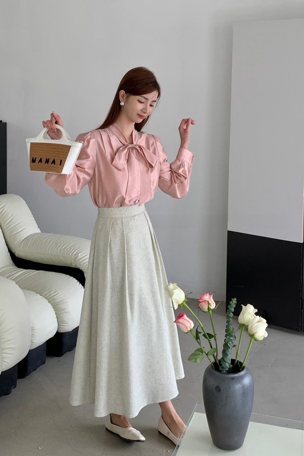 Le Malene 甜美蝴蝶结上衣高腰半裙套装 20165