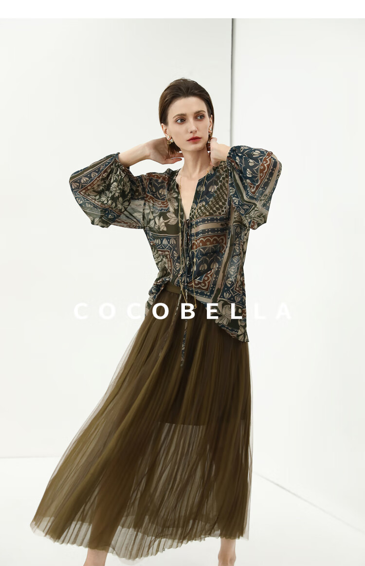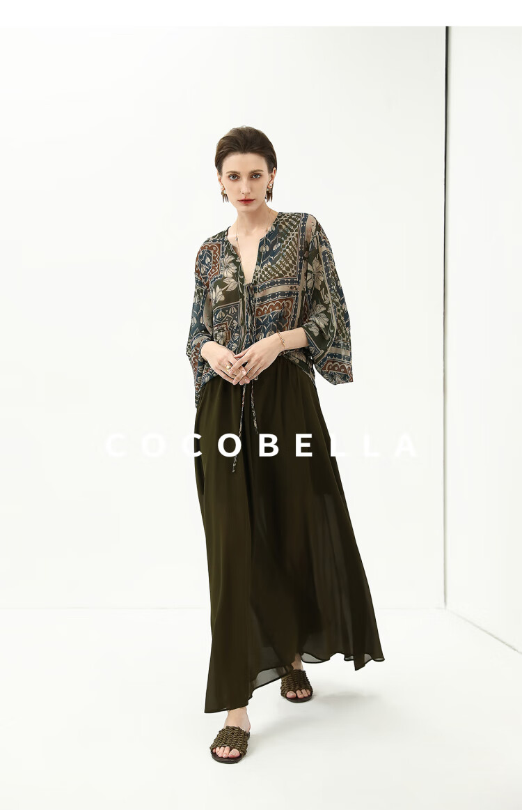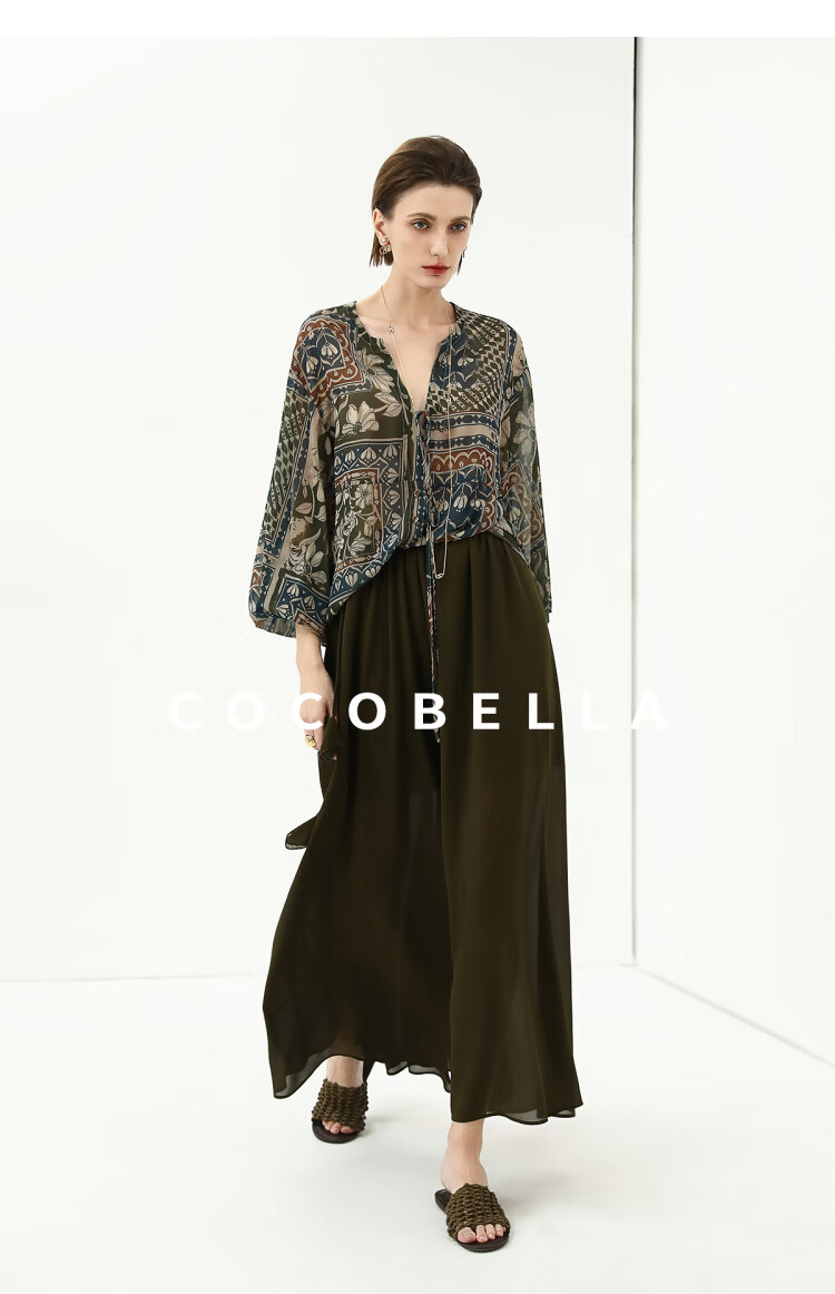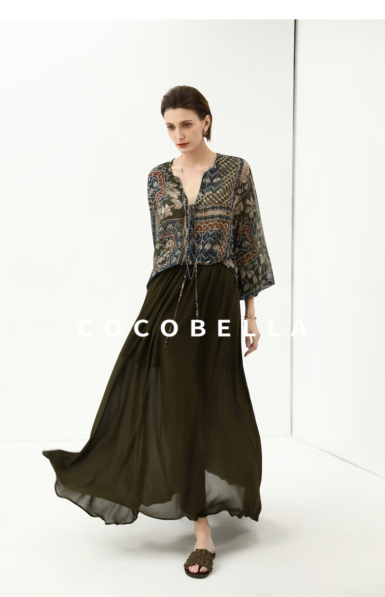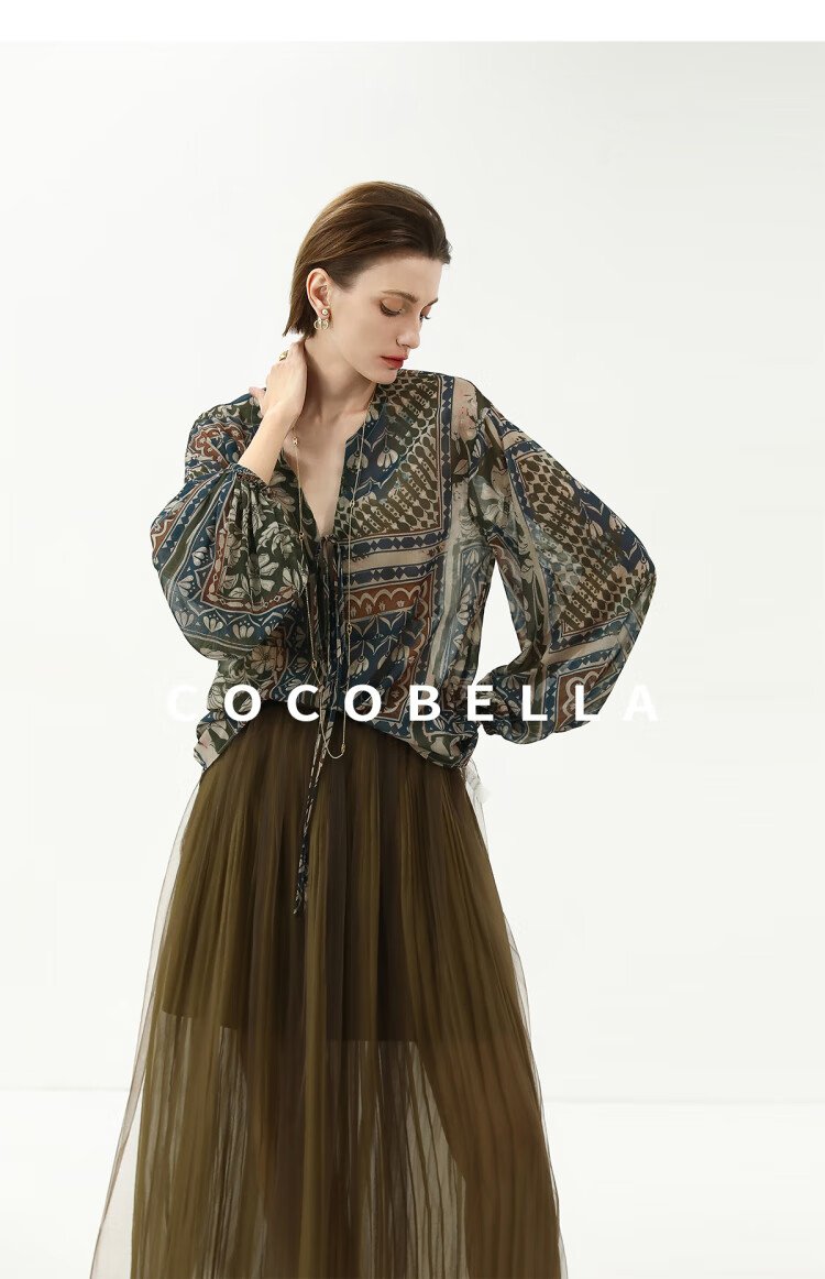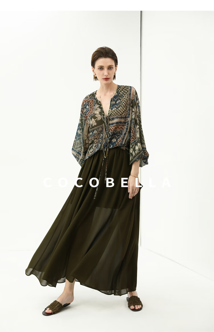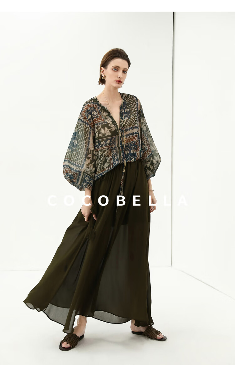 COCOBELLA静奢风波普印花雪纺衫裸领波西米亚度假衬衫SR7071