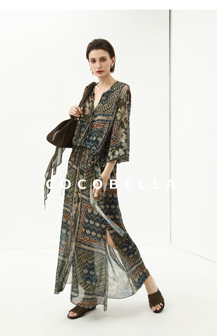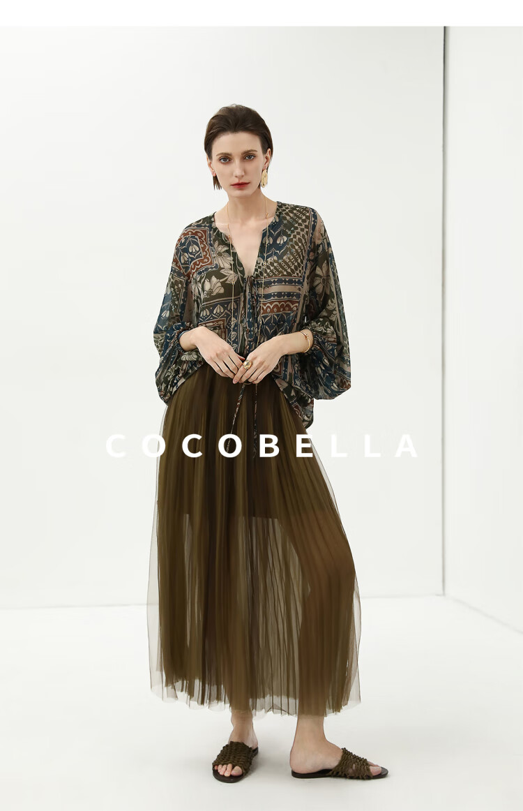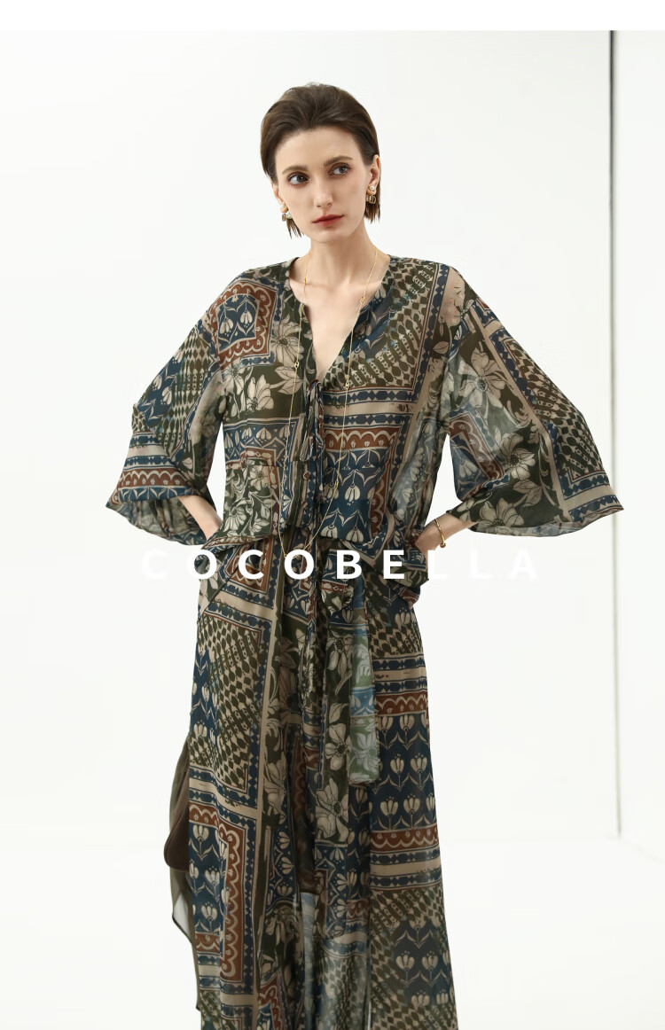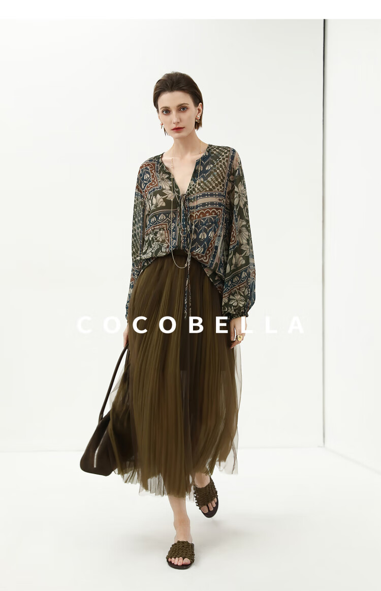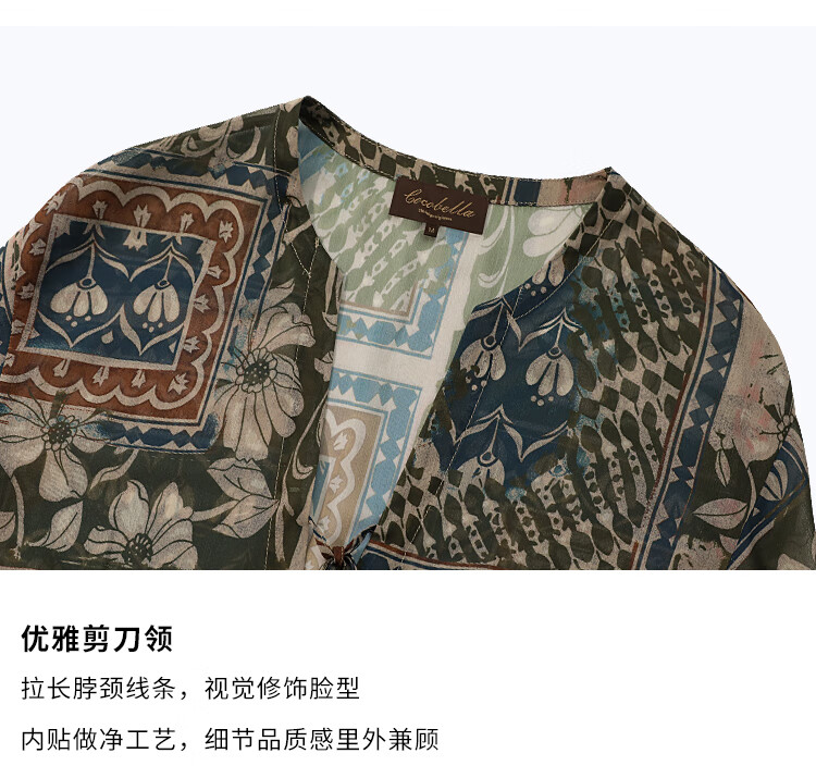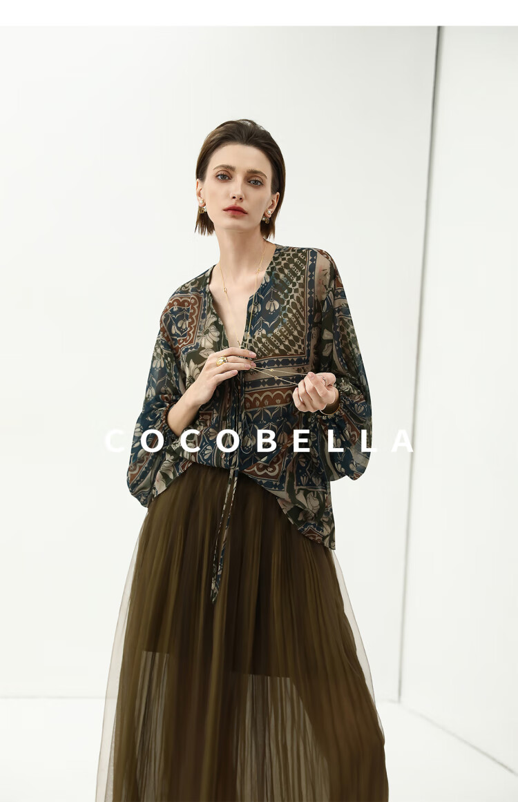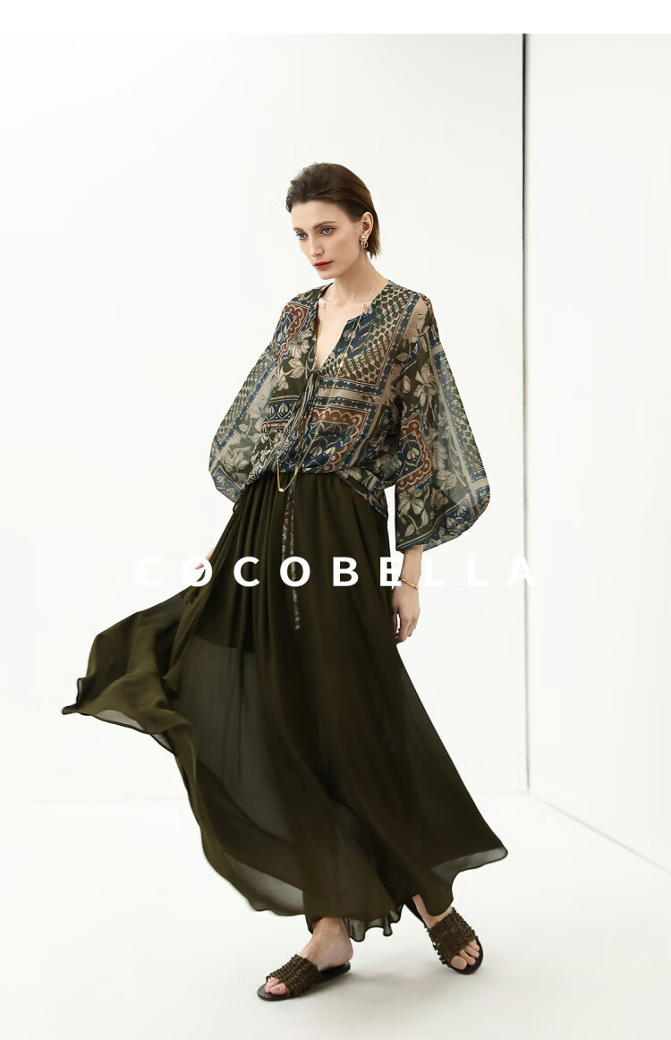 COCOBELLA静奢风波普印花雪纺衫裸领波西米亚度假衬衫SR7071