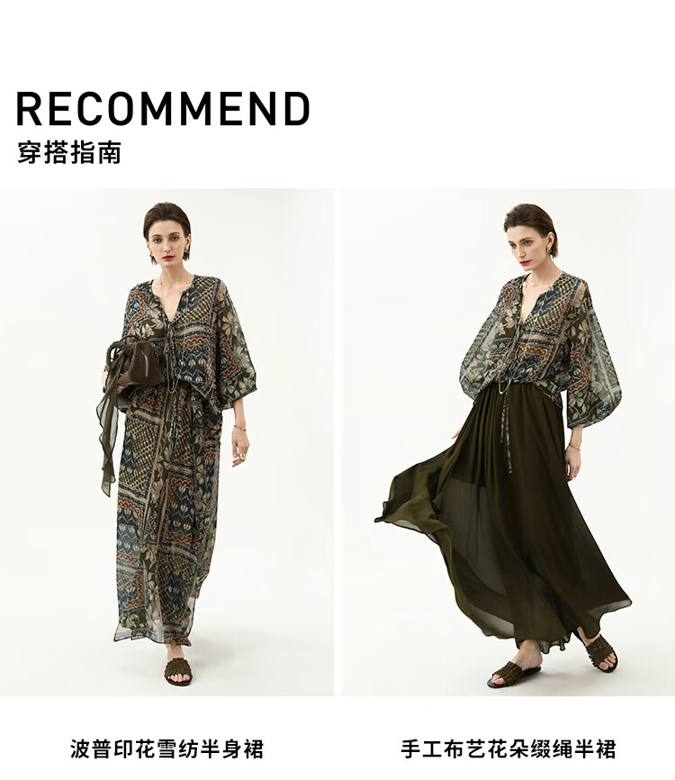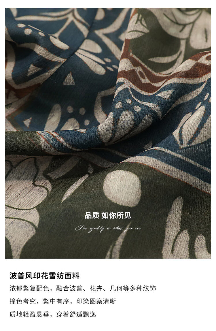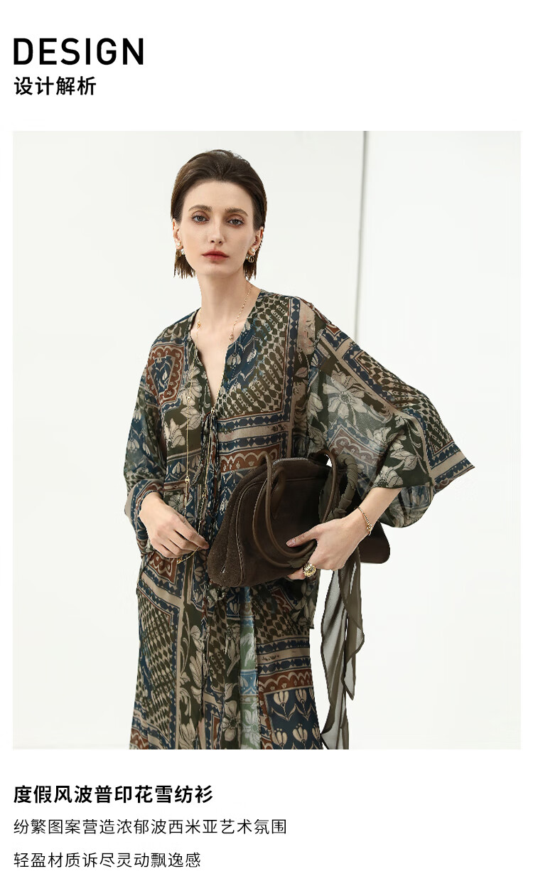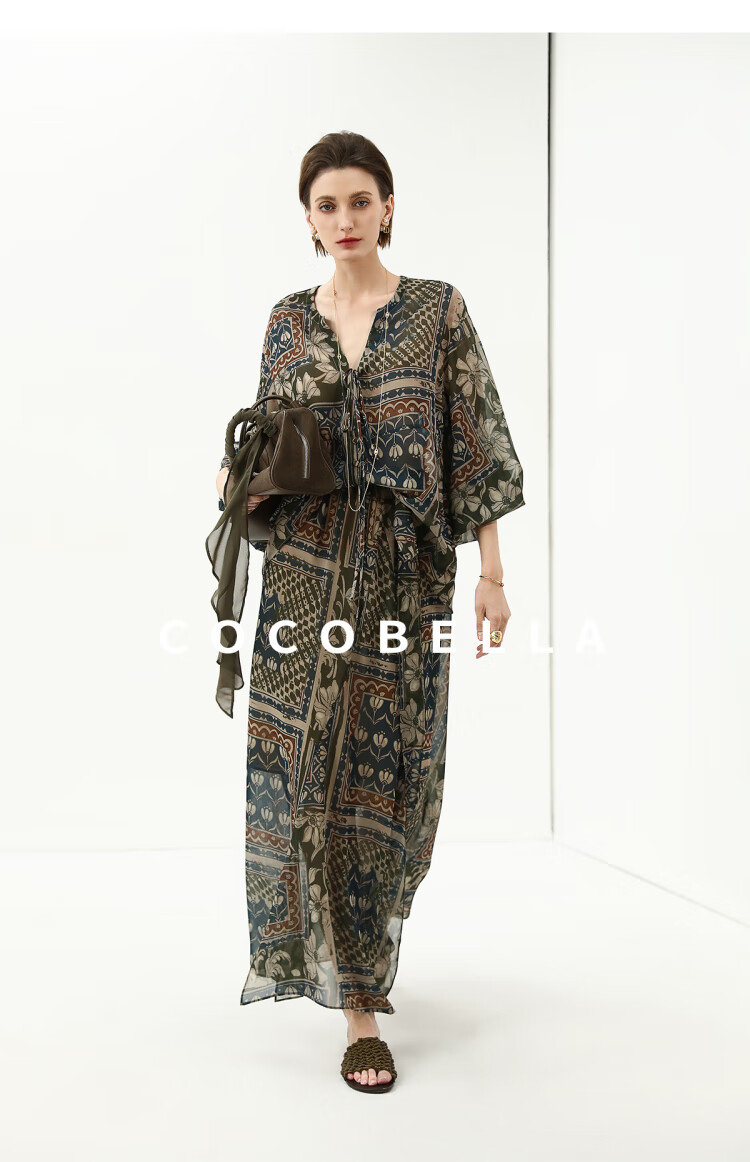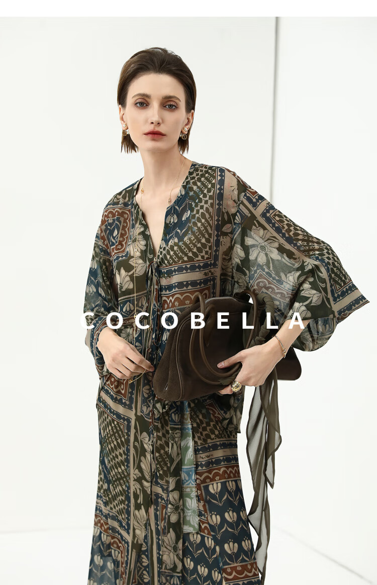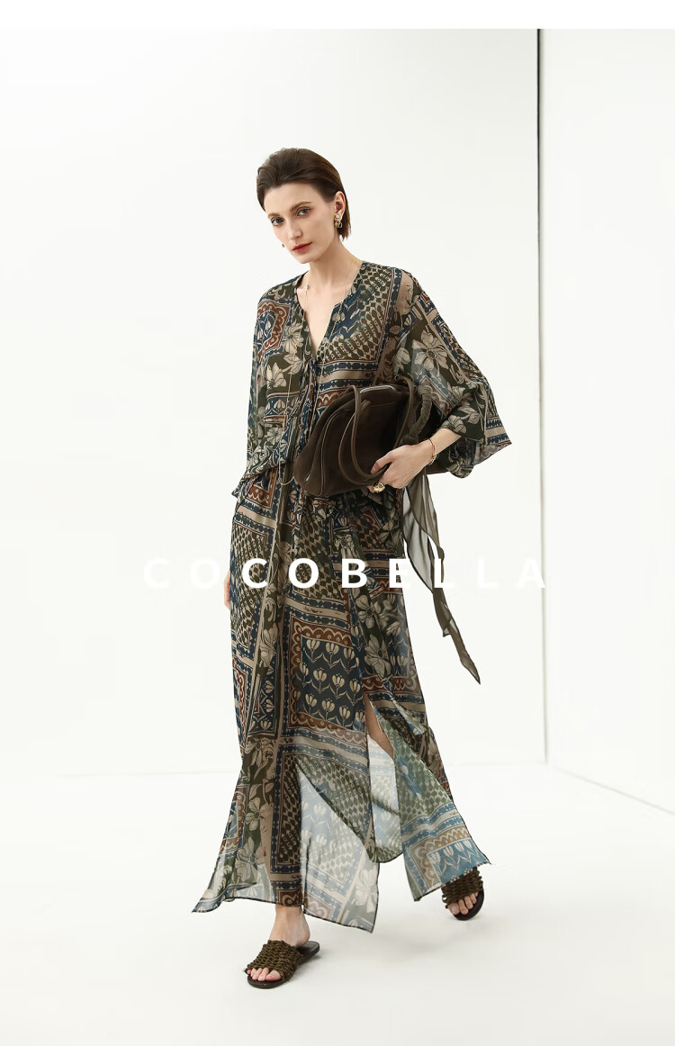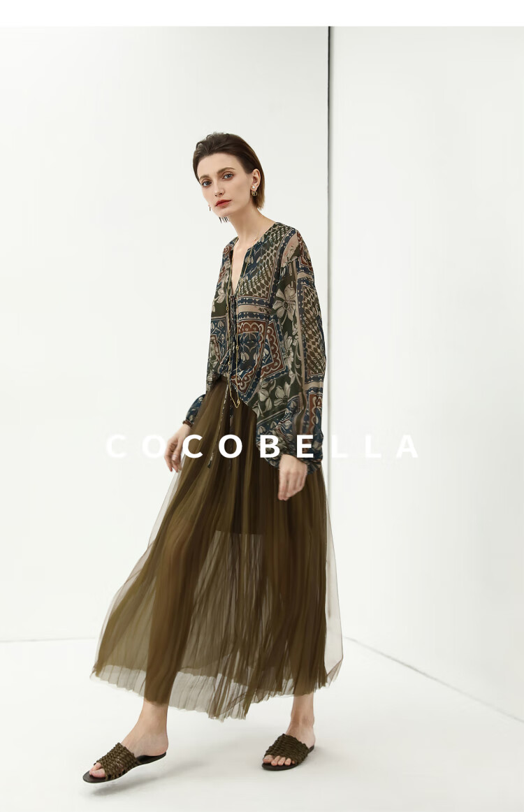 COCOBELLA静奢风波普印花雪纺衫裸领波西米亚度假衬衫SR7071