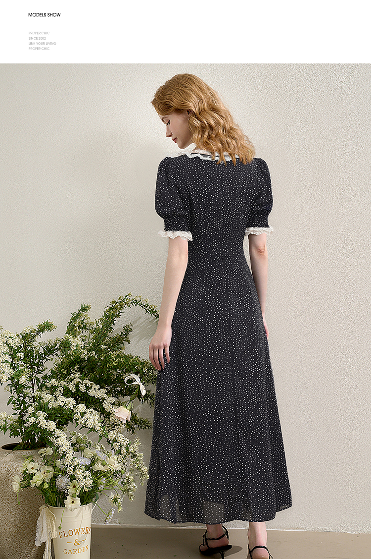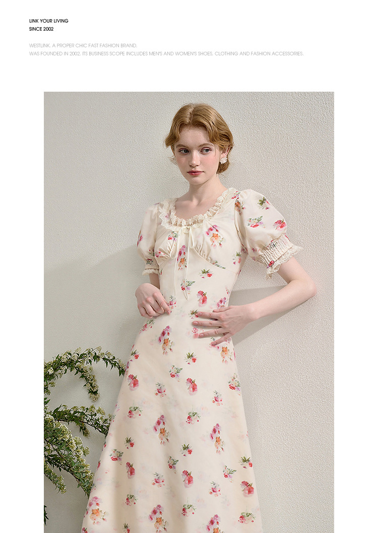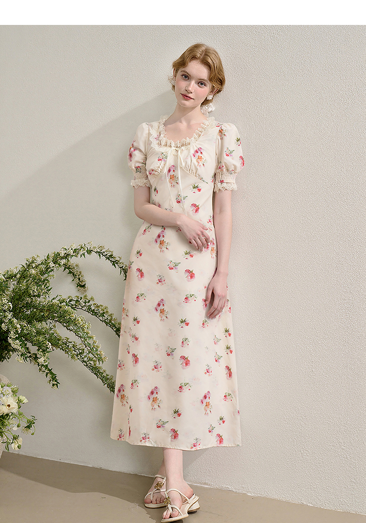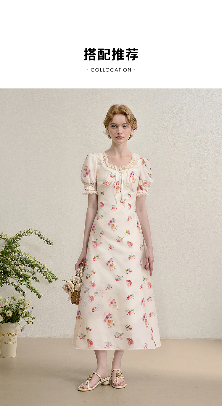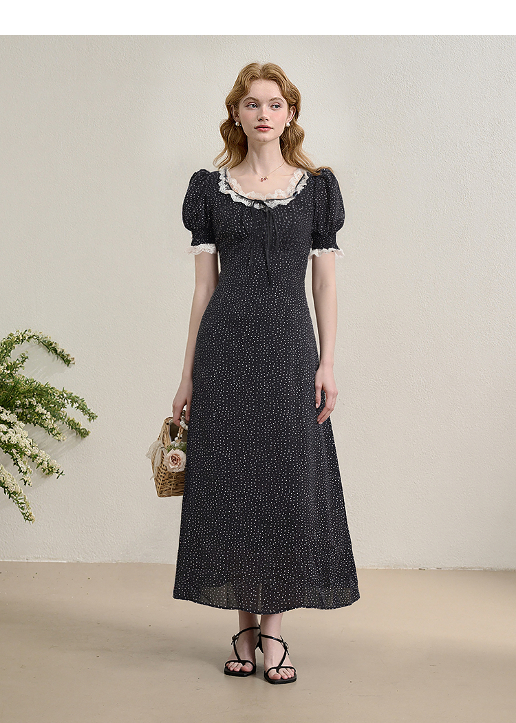 【限时秒杀】西遇法式泡泡袖连衣裙女夏季新款蕾丝花边修身收腰网纱长裙SS050571