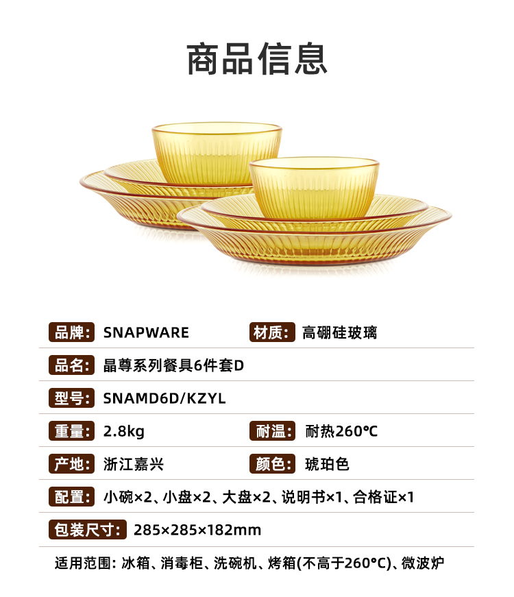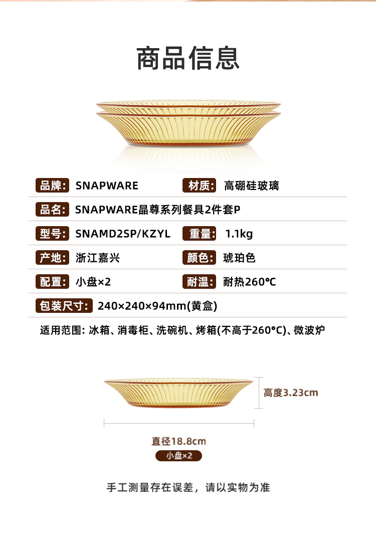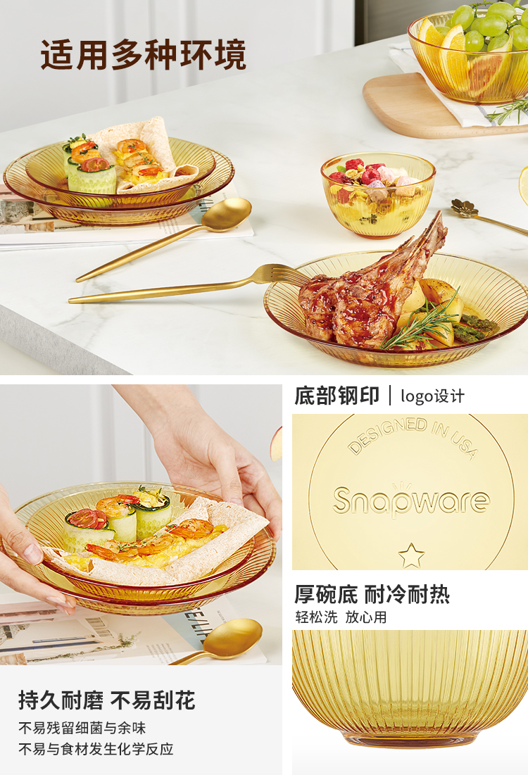 【自营】 康宁 SNAPWARE系列晶尊系列深盘/平盘/饭碗/面碗 持久耐磨 不易刮花
