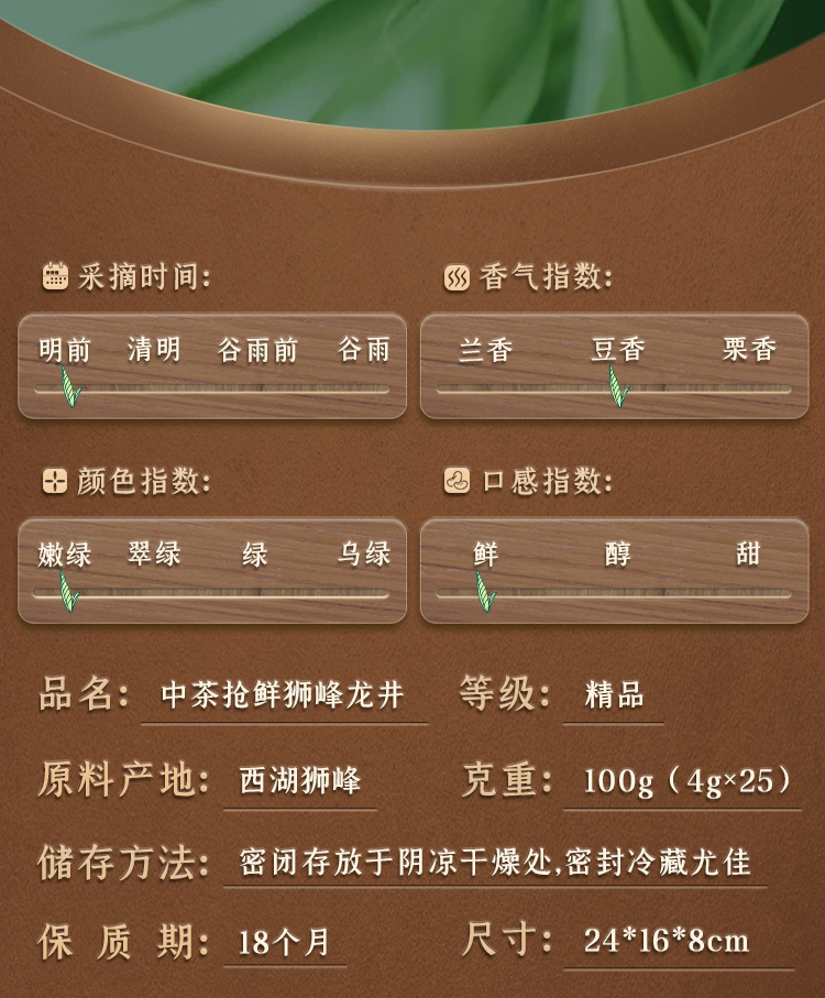 中茶茶叶 2024春茶 明前 狮峰西湖龙井精品级绿茶散茶木盒100g