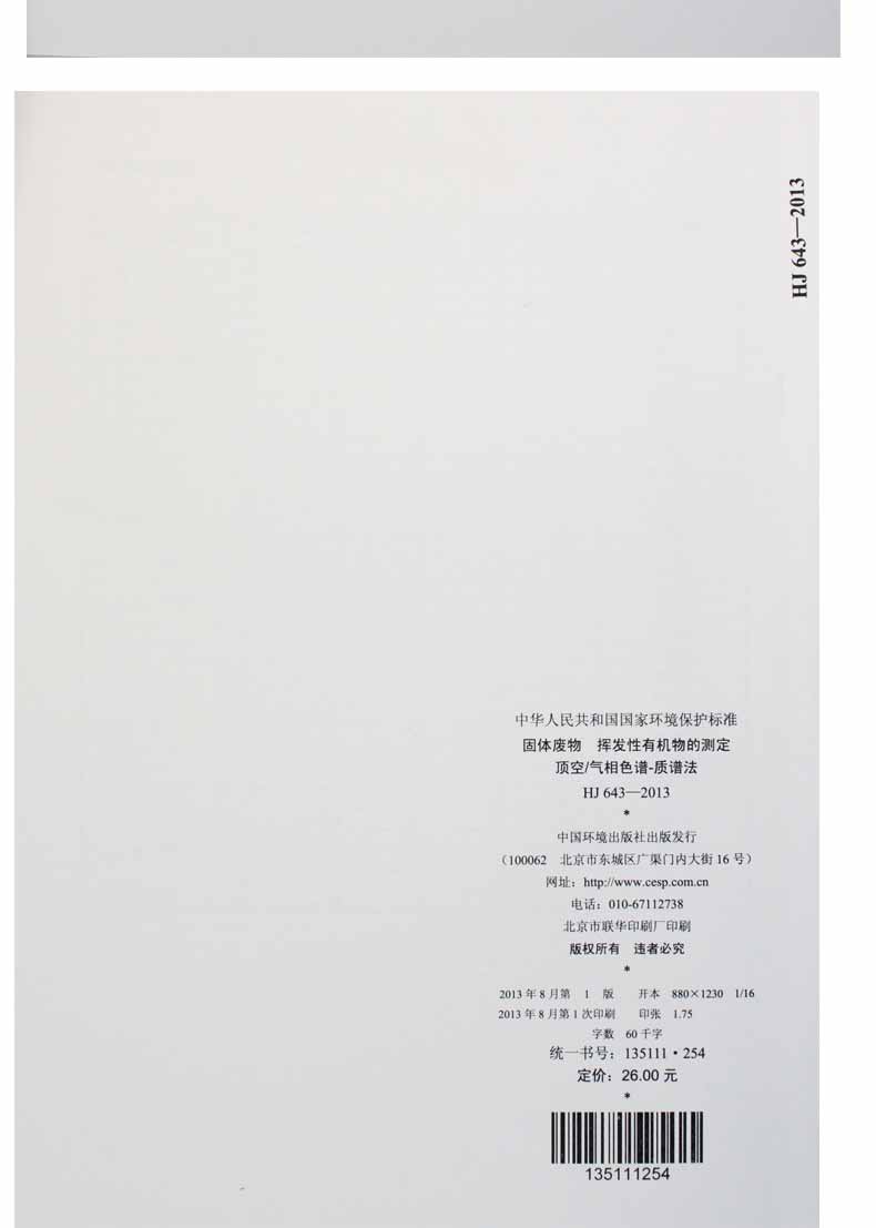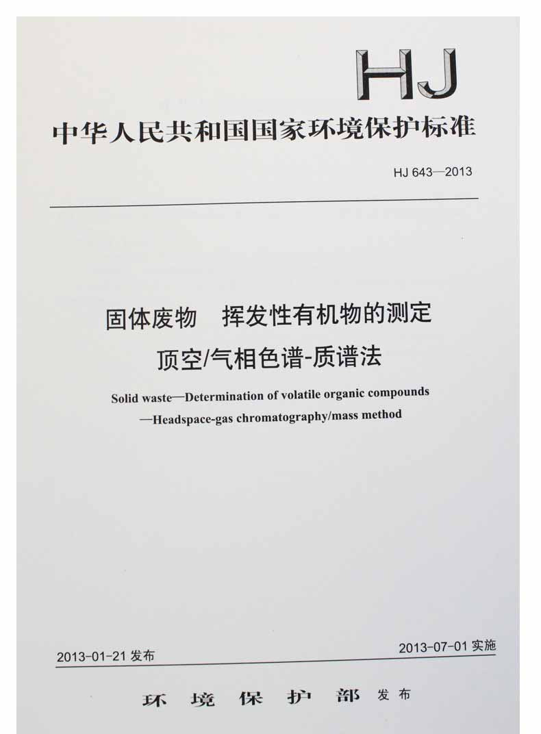 HJ 643-2013 固体废物 挥发性有机物的测定 顶空/气相色谱-质谱法 国家标准 国标 GB 环境保护135111254