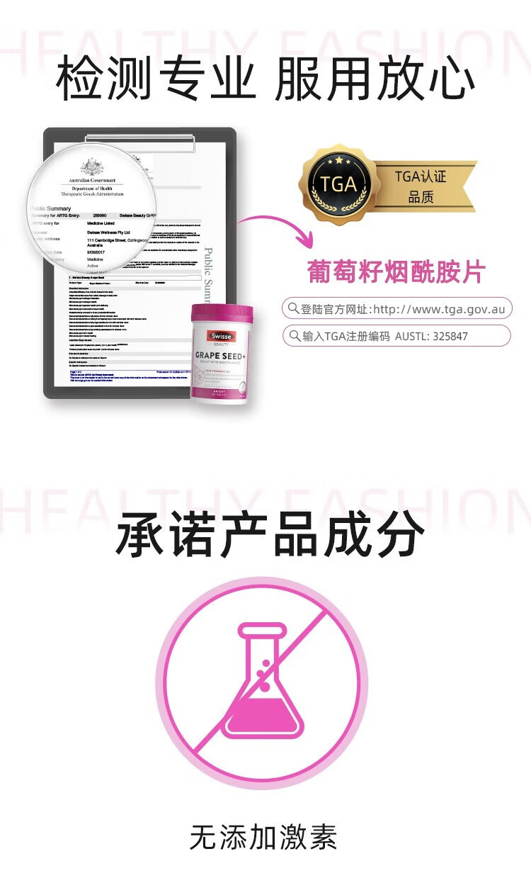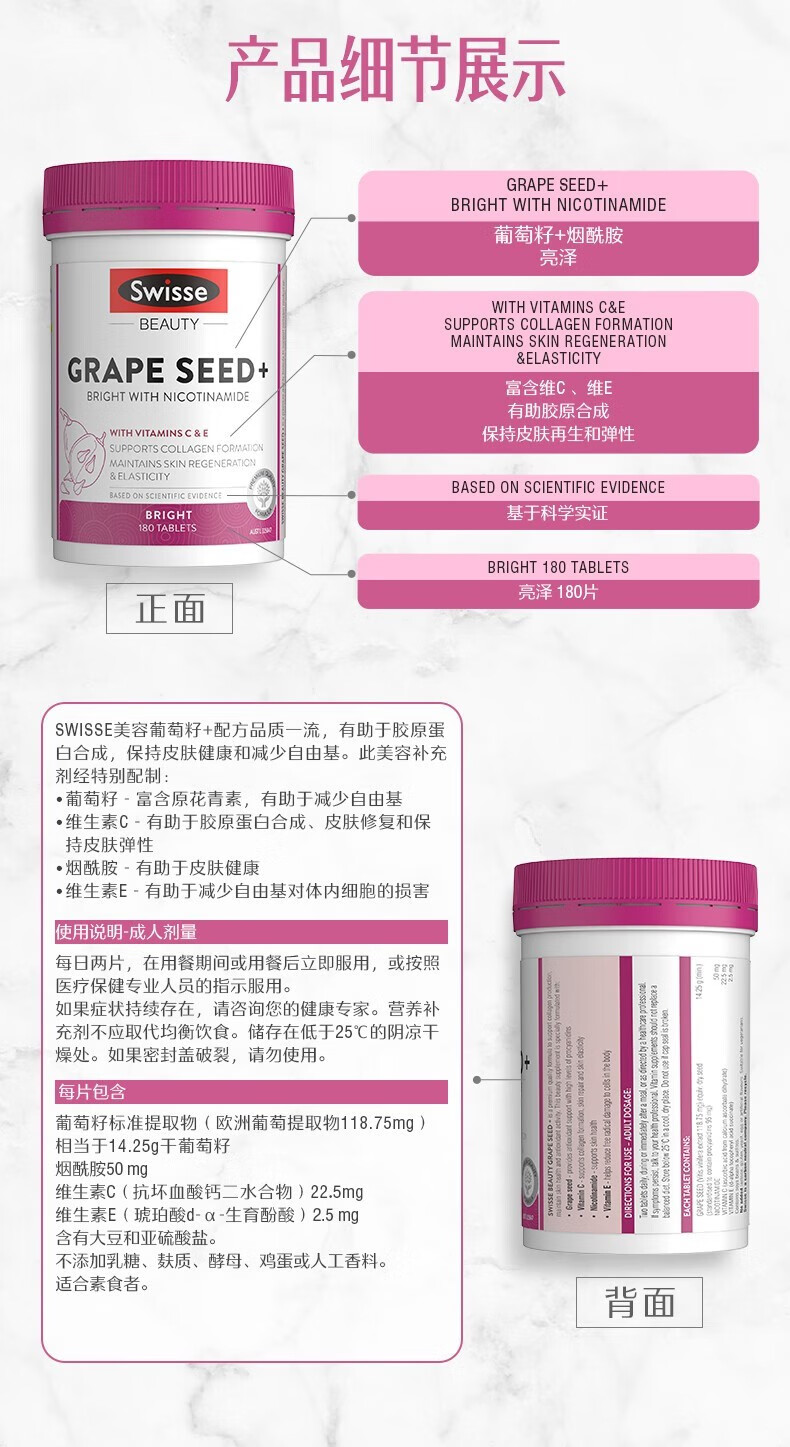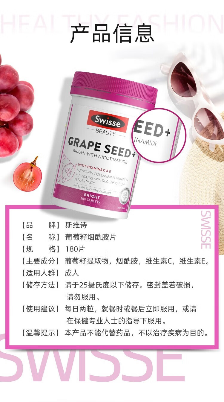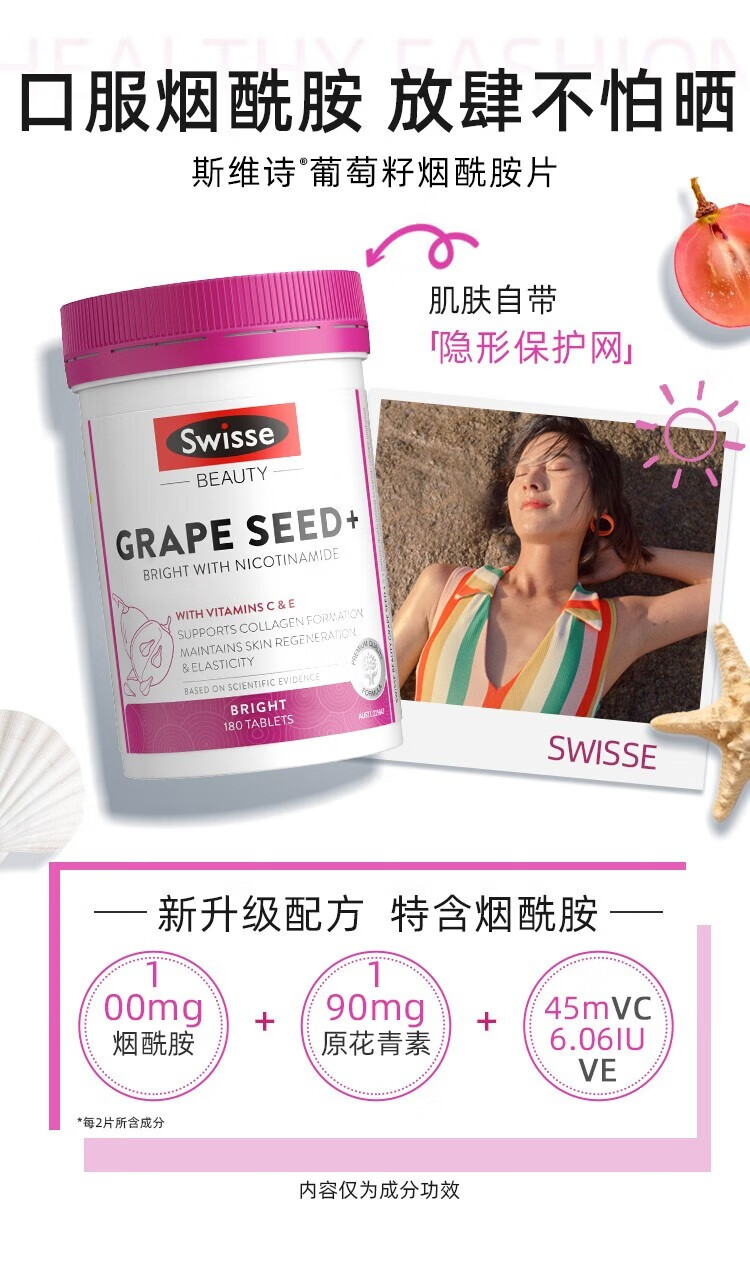 【保税仓】澳大利亚Swisse斯维诗烟酰胺葡萄籽 180粒(有效期至28年1月)