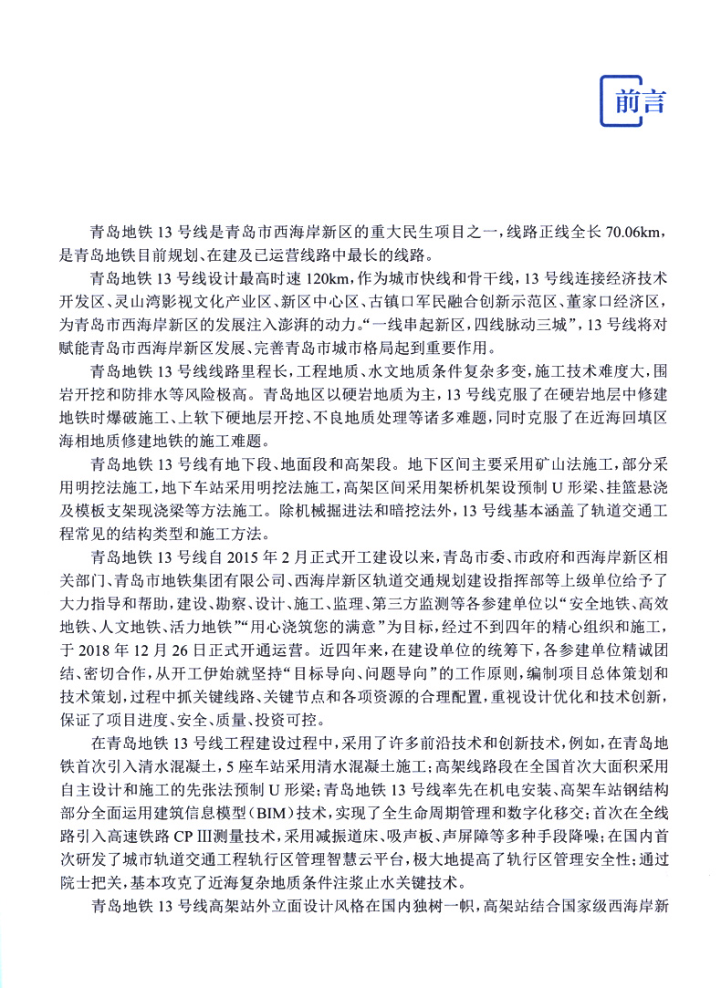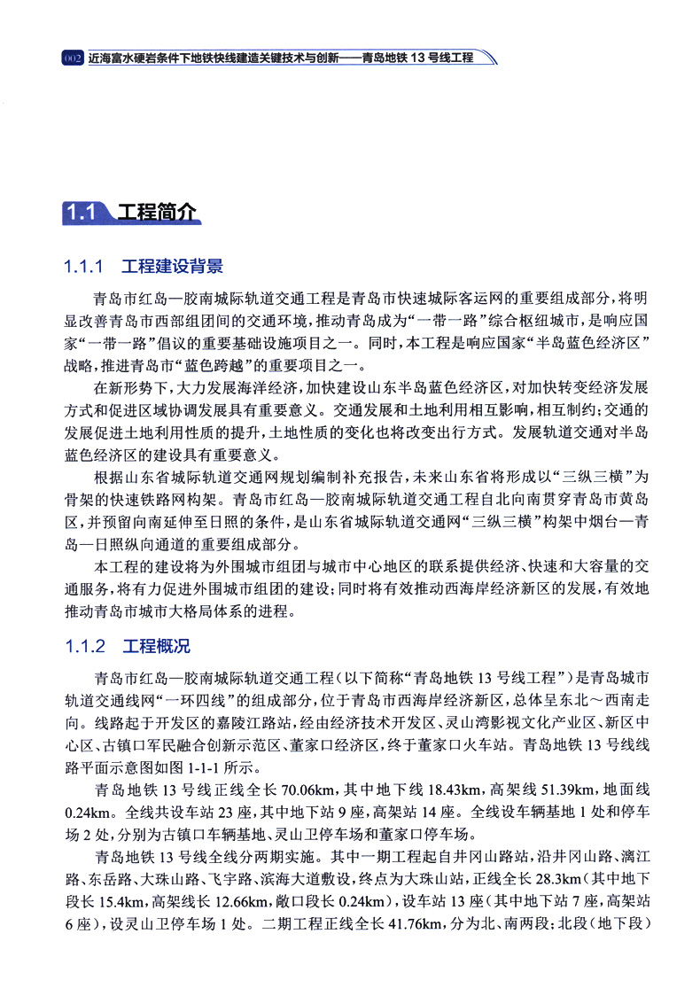 书名:近海富水硬岩条件下地铁快线建造关键技术与创新——青岛地铁13号线工程