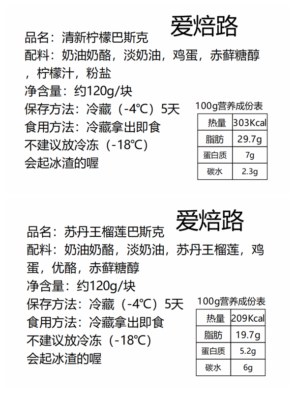 0蔗糖0麸质 Kiri芝士巴斯克蛋糕 柠檬/开心果/原味 低碳生酮