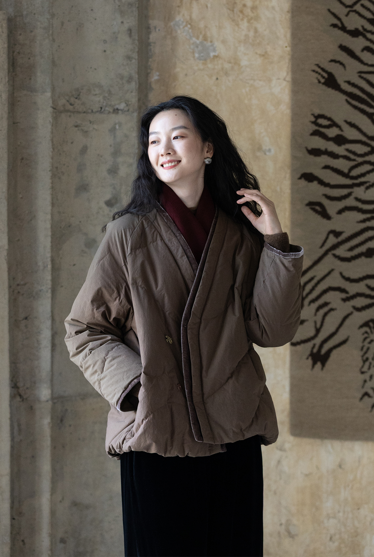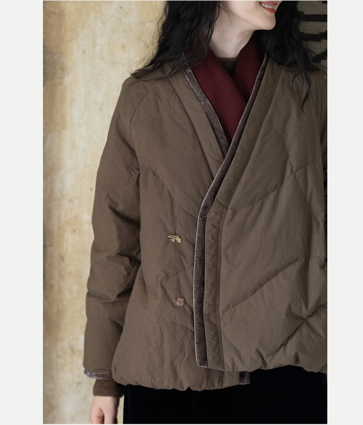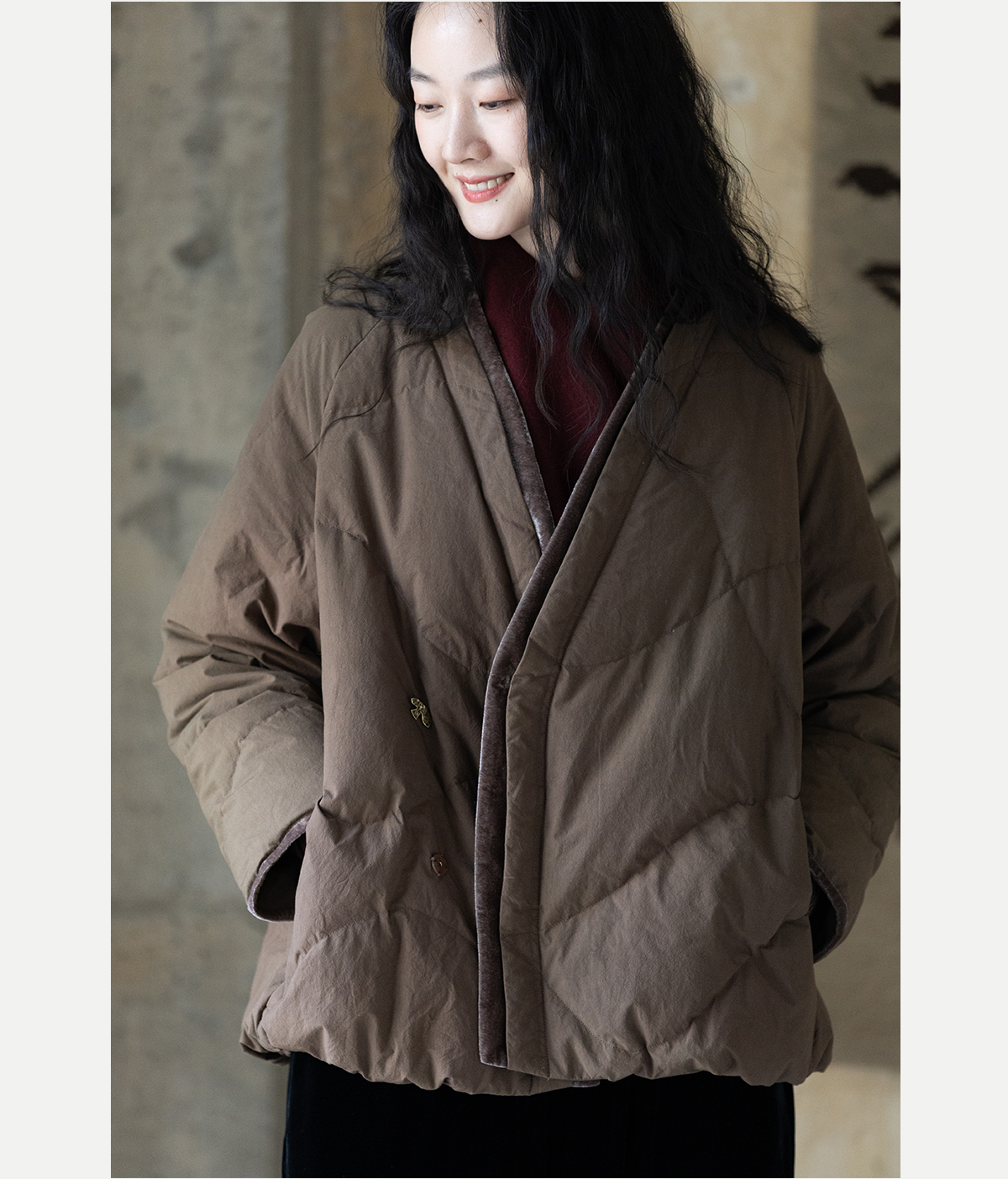 牧衣游原创 净色纯棉高蓬松红嘴雁绒羽绒外套宽松保暖羽绒服 徐风
