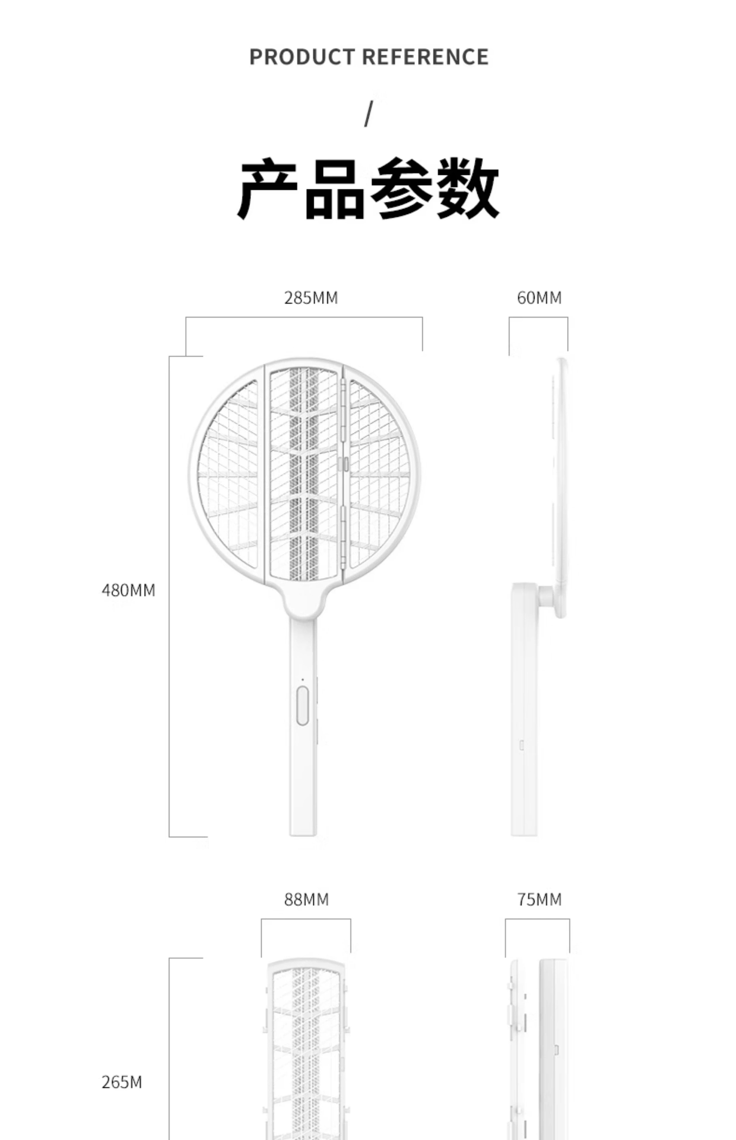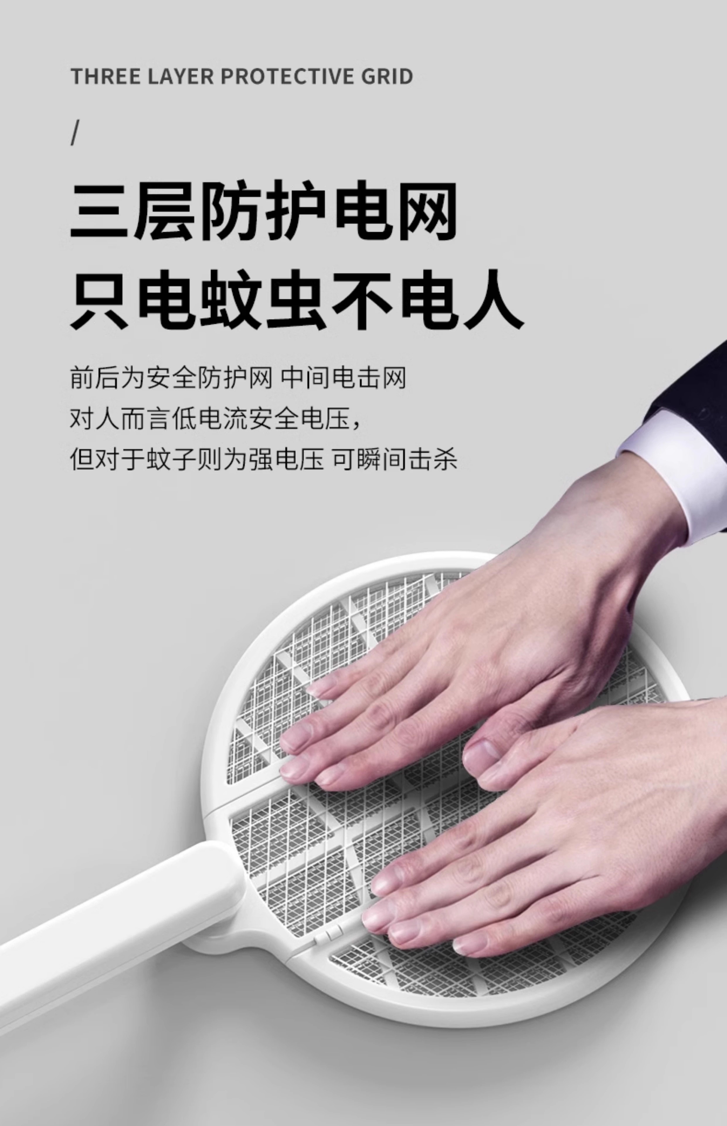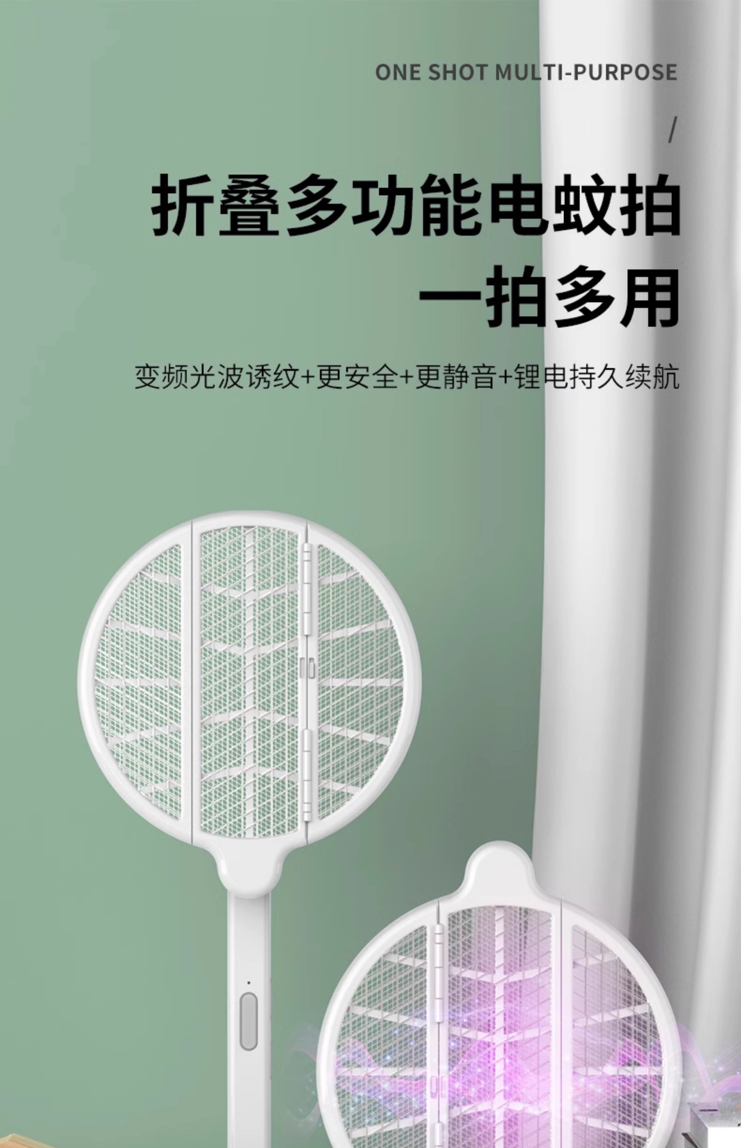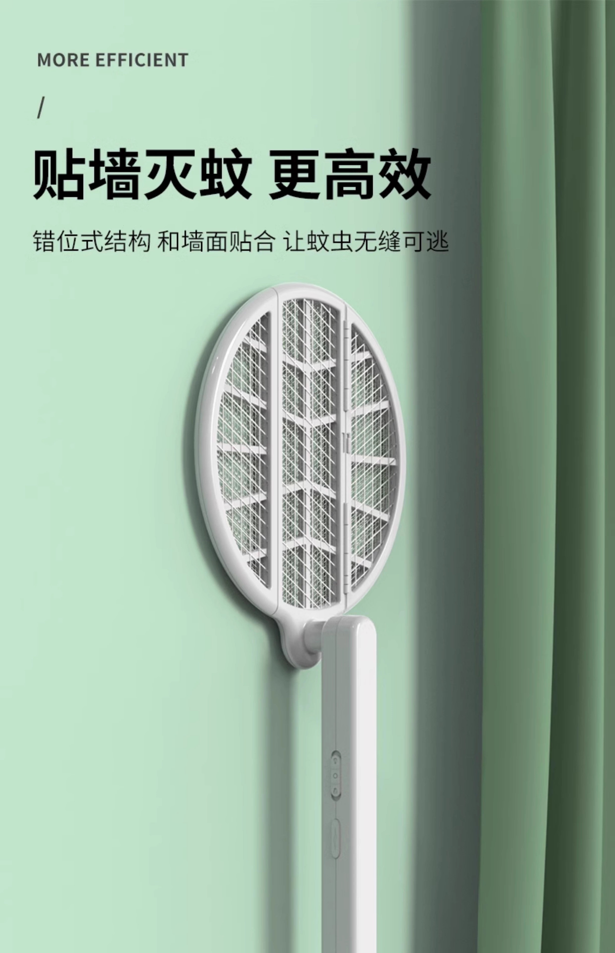 【多样屋专柜】雷探长自动诱蚊-拍面三折叠电蚊拍 露营家用车载灭蚊拍充电驱蚊神器