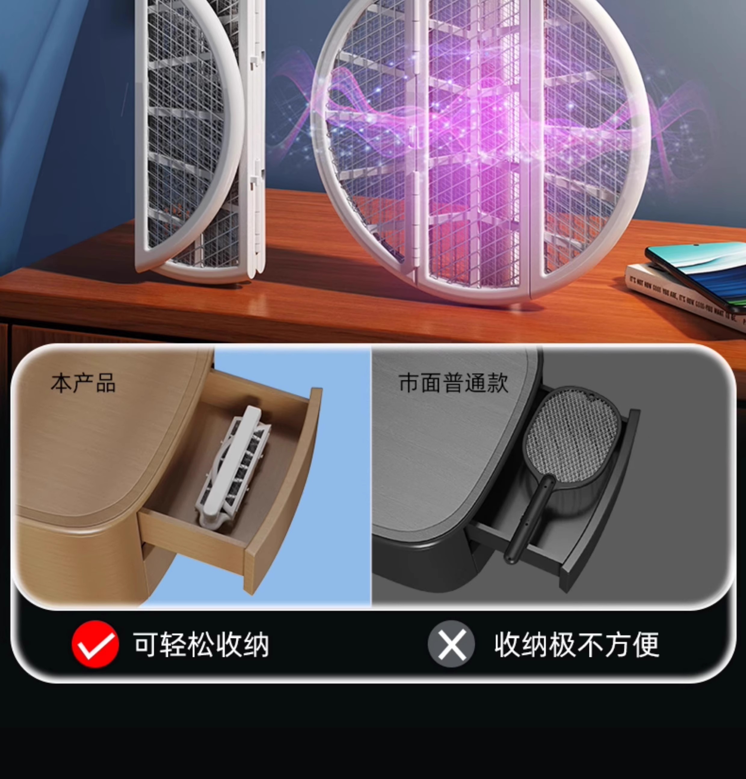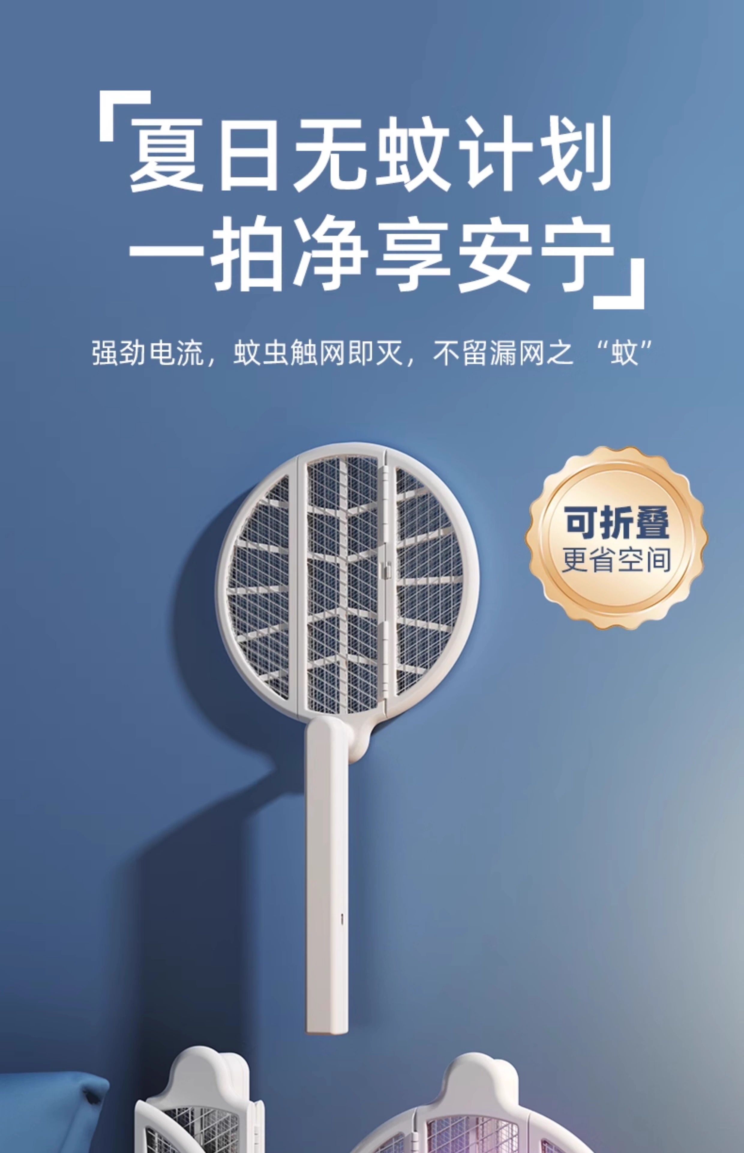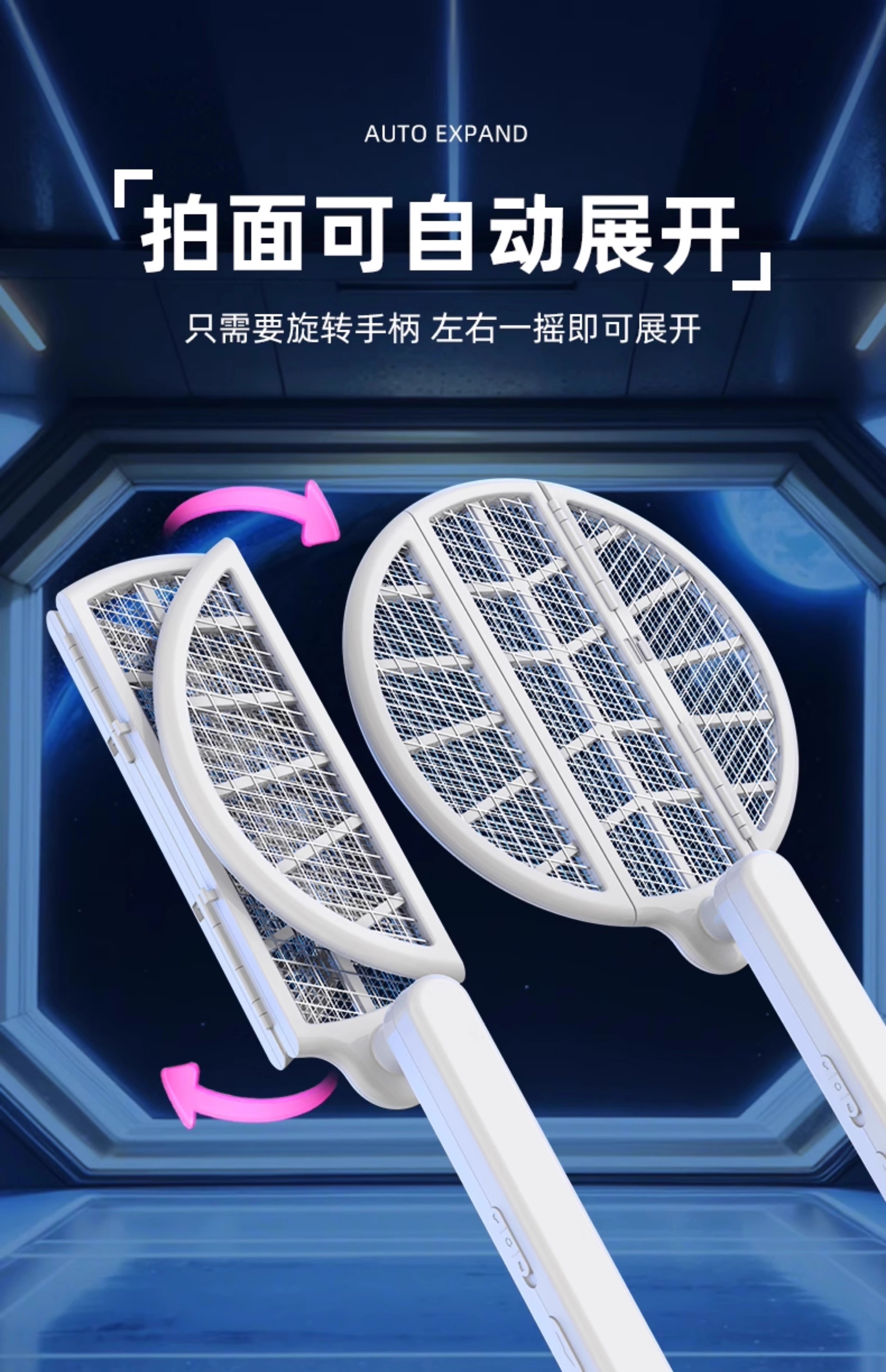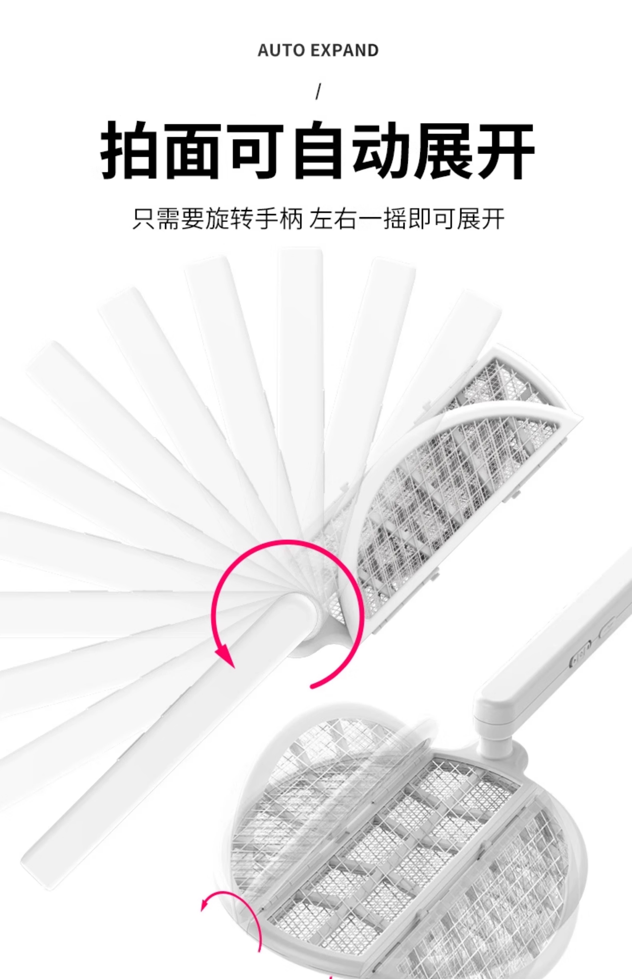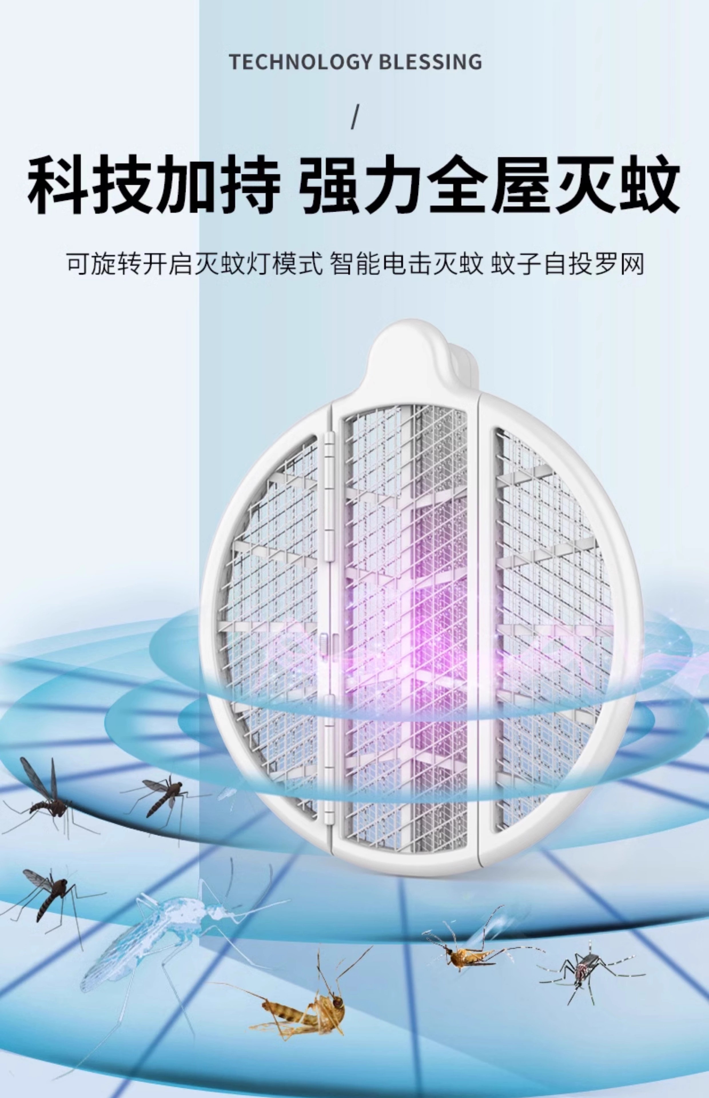 【多样屋专柜】雷探长自动诱蚊-拍面三折叠电蚊拍 露营家用车载灭蚊拍充电驱蚊神器