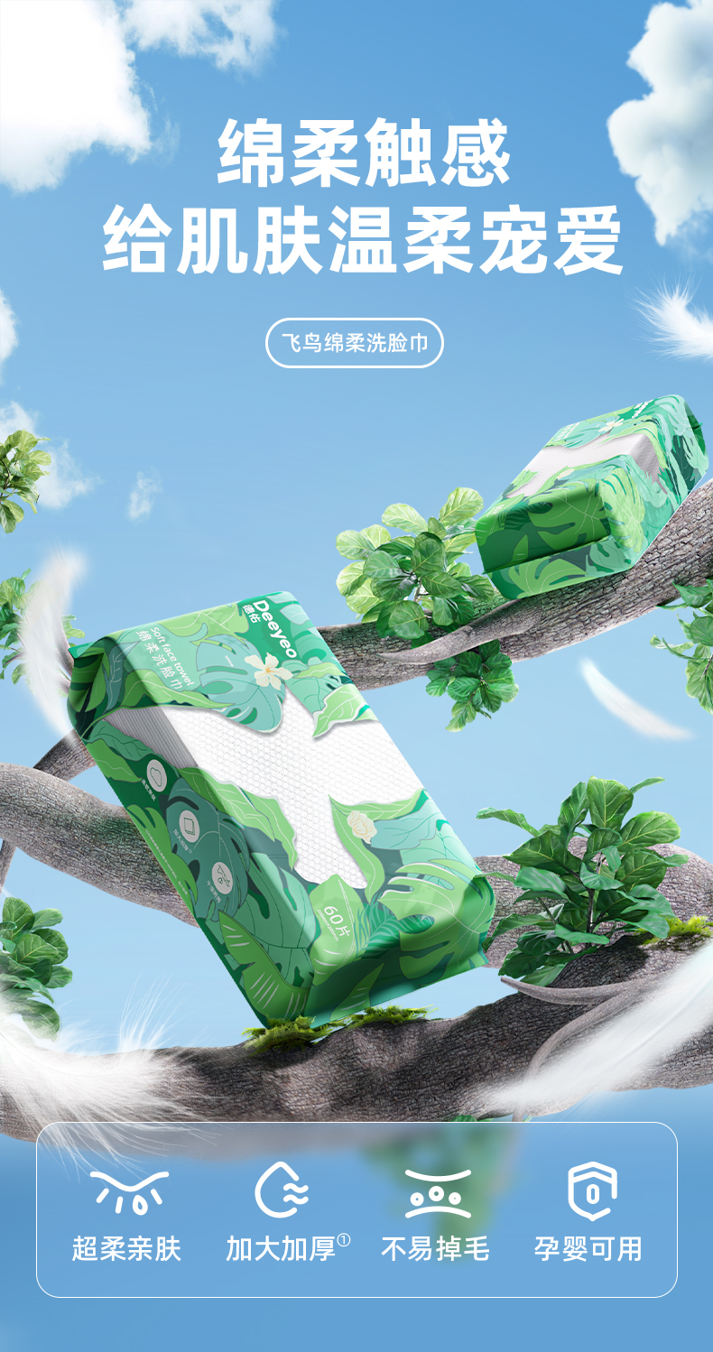 【GX】德佑飞鸟一次性洗脸巾女抽取式加厚干湿两用绵柔巾60抽*3包/6包