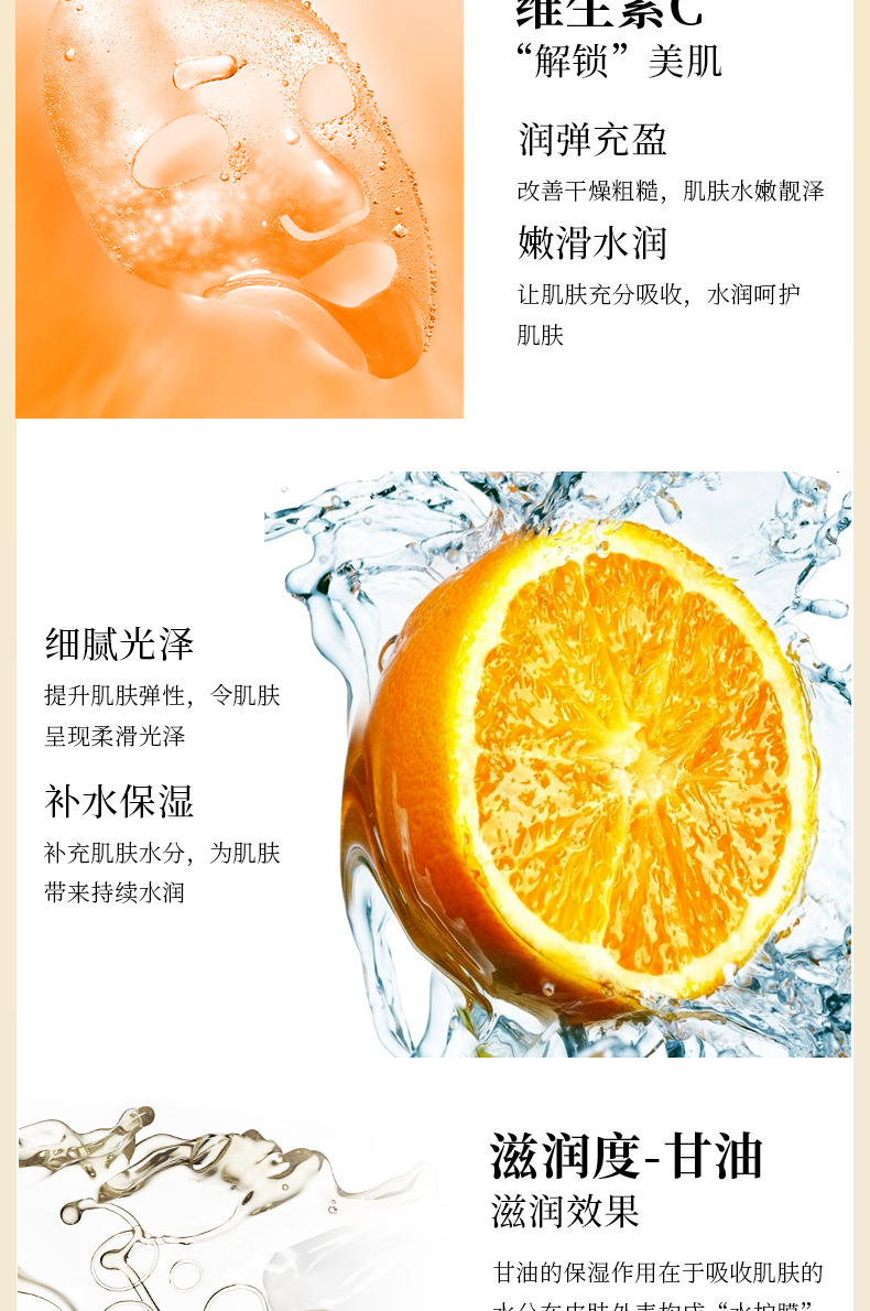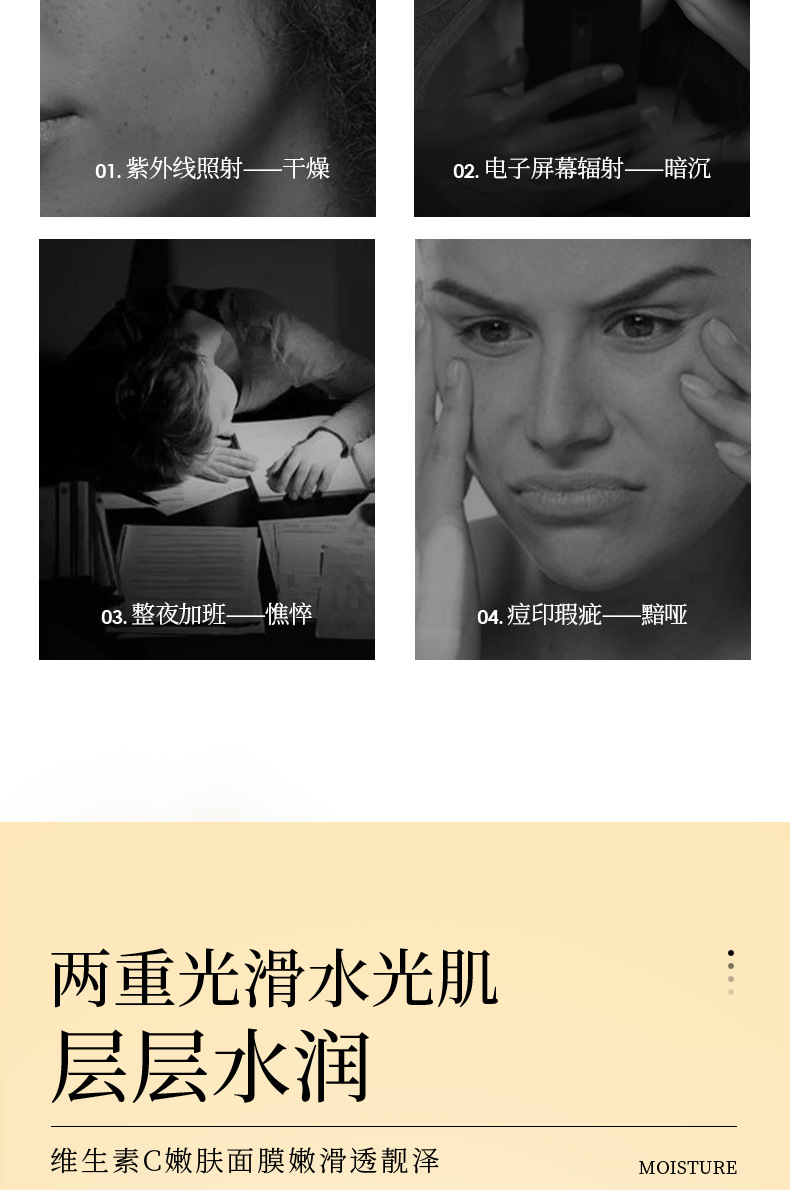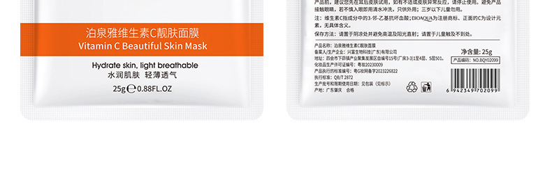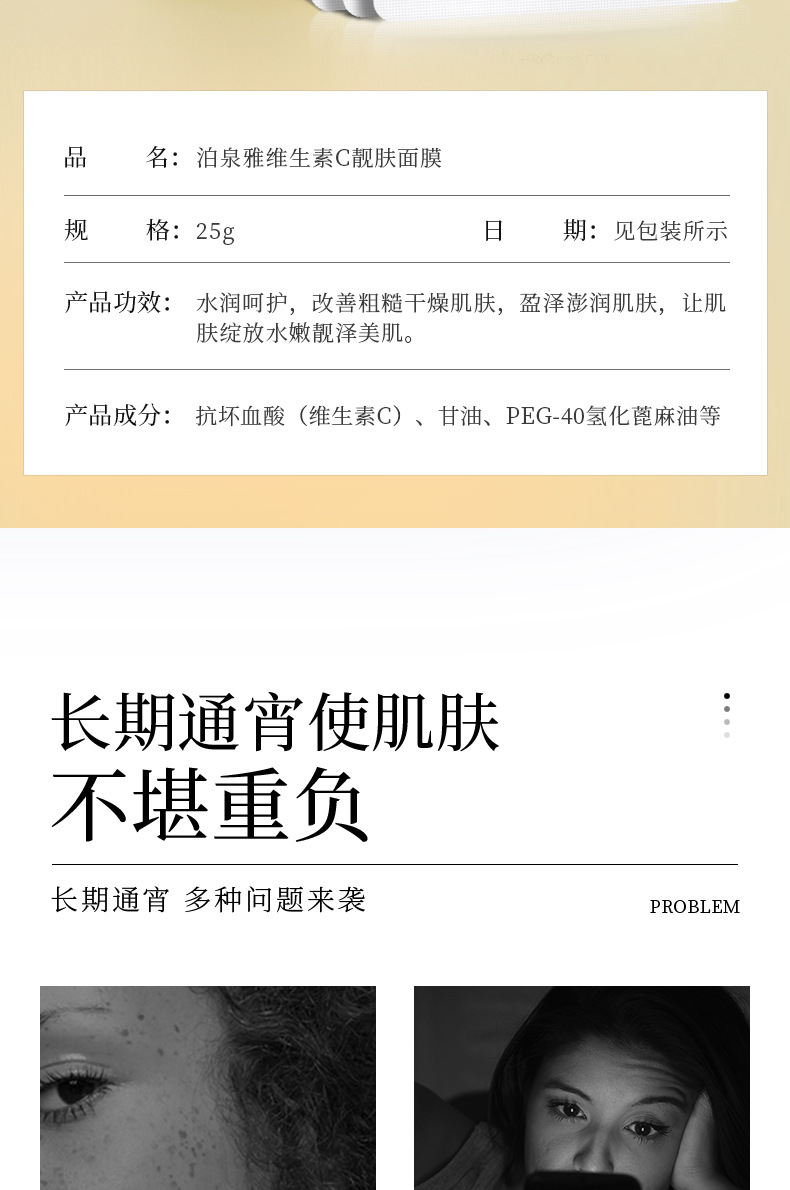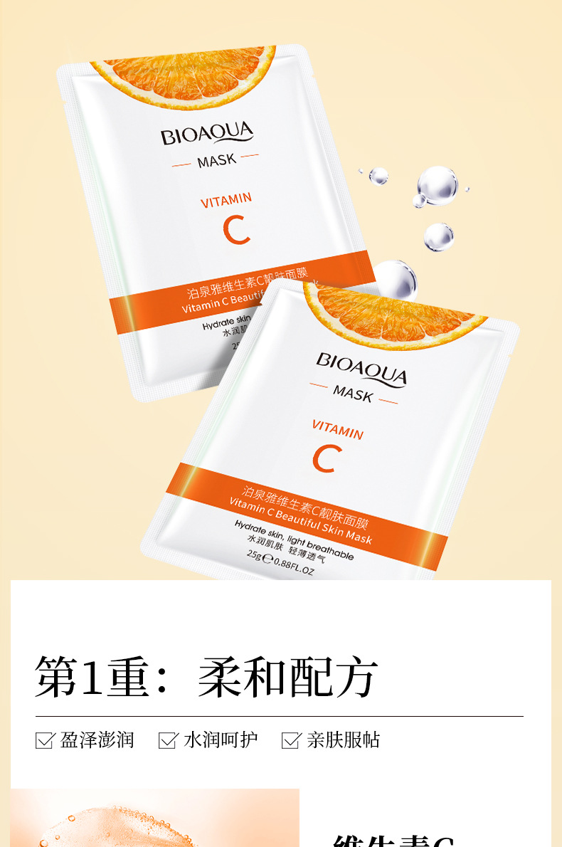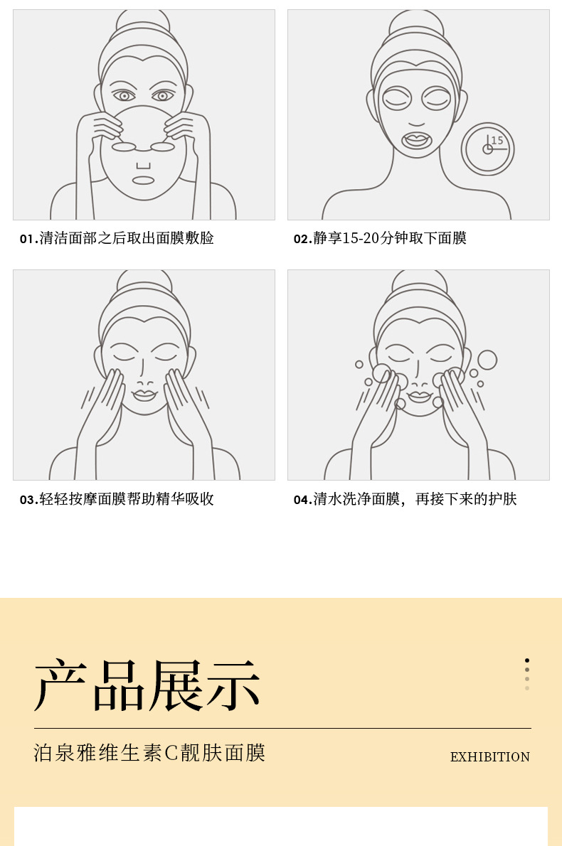 泊泉雅维生素C嫩肤面膜片装补水保湿细腻光泽嫩肤不粘腻面膜 20片