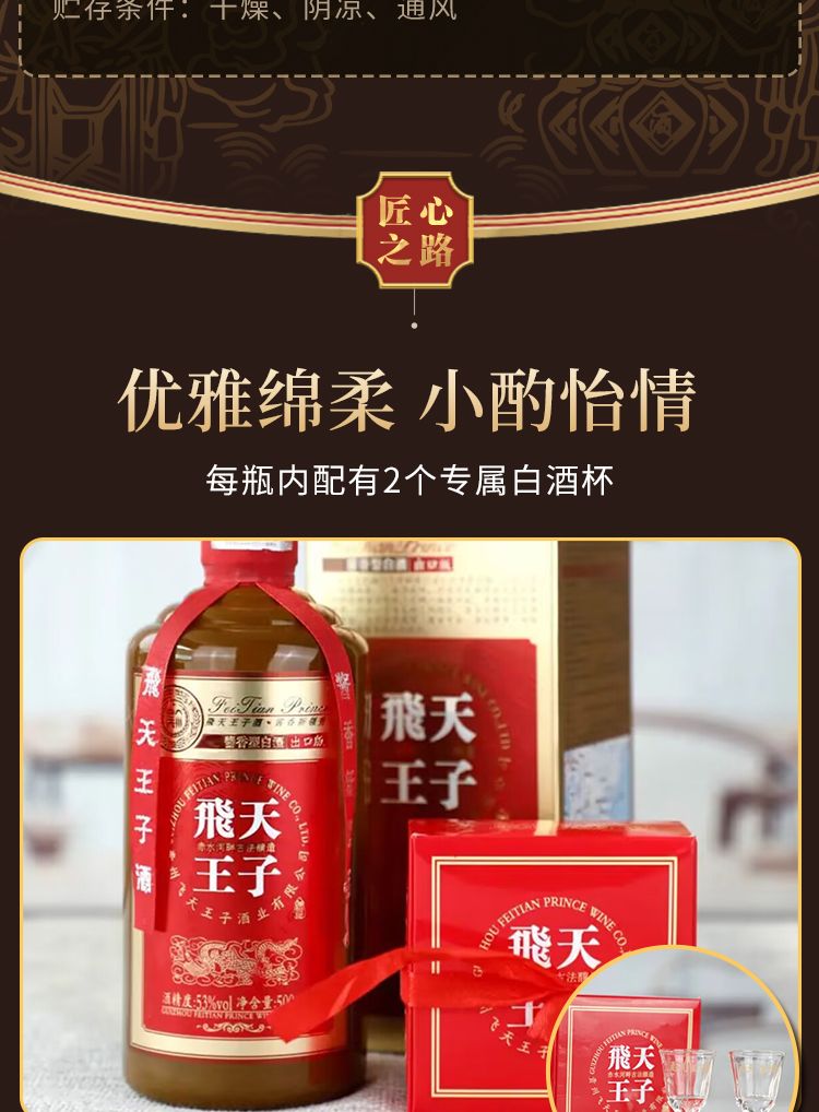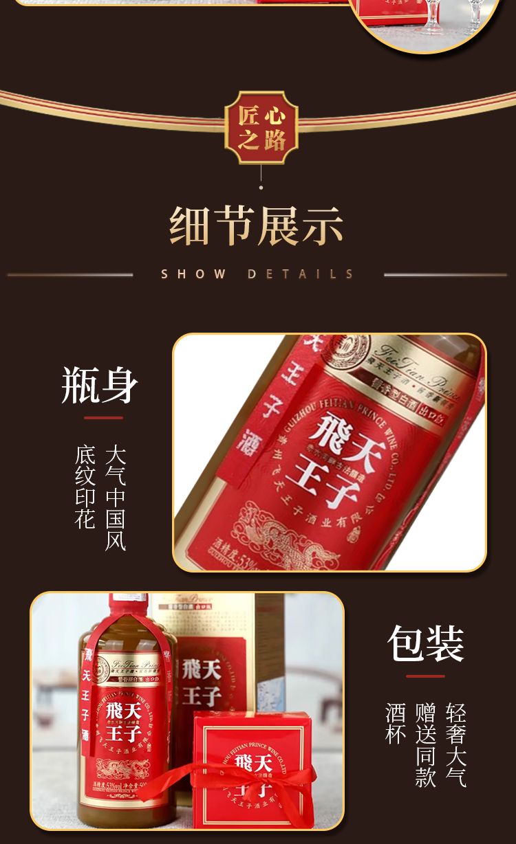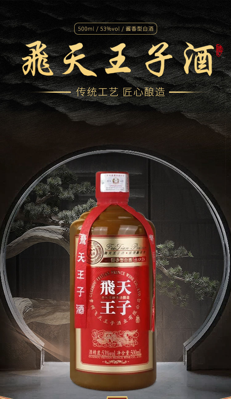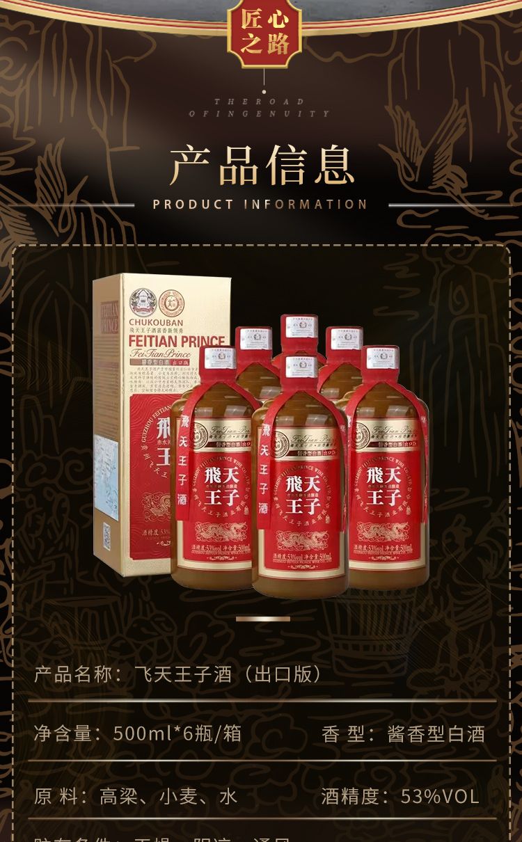 贵州经典飞天王子酒(出口版)53度酱香型白酒 整箱500ml*6瓶包邮