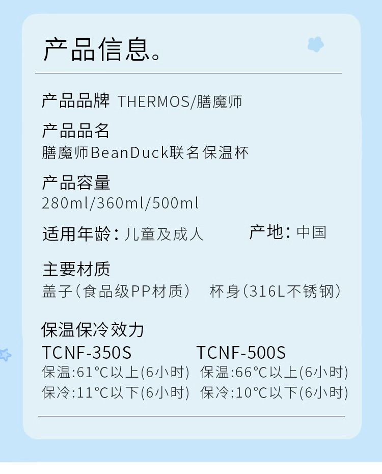 膳魔师不锈钢Bean Duck系列保温保冷直饮杯保温杯350ml【不支持补差,非质量问题不退不换】S