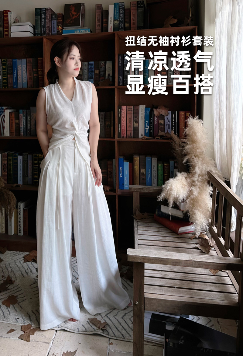 壁虎瑜伽【2508TZ395】扭结无袖衬衫套装【5天发货】
