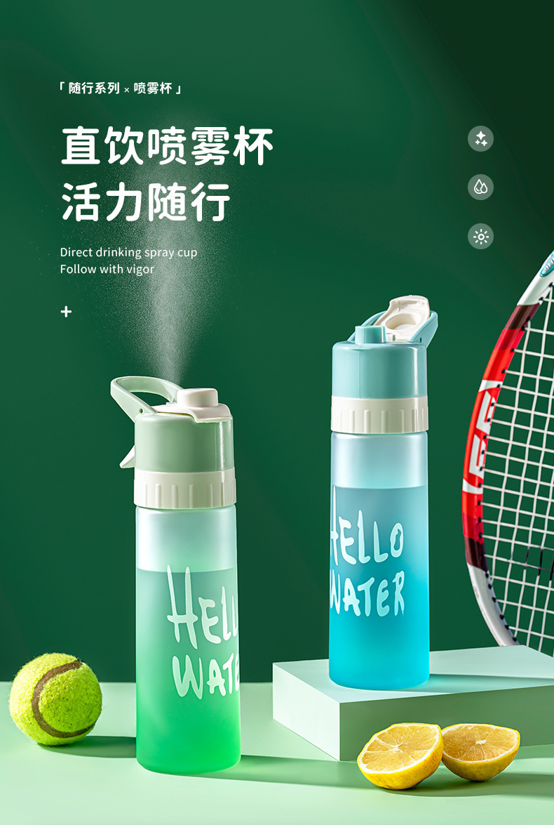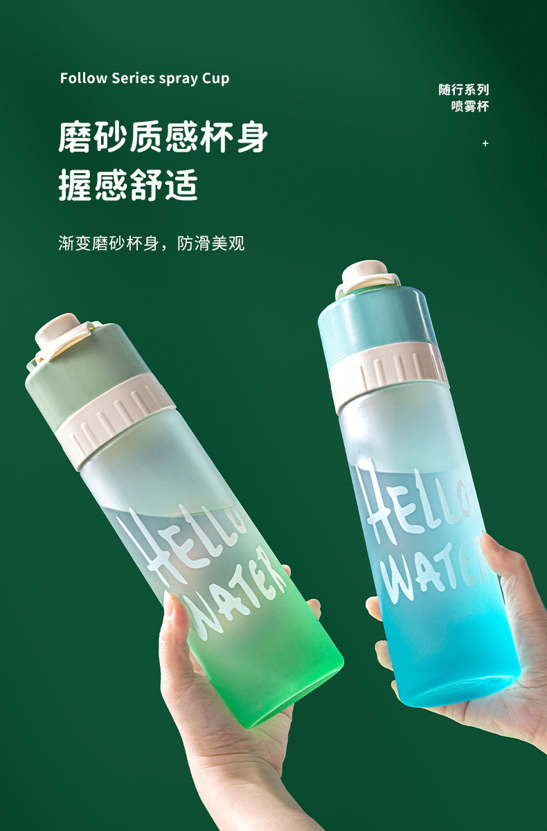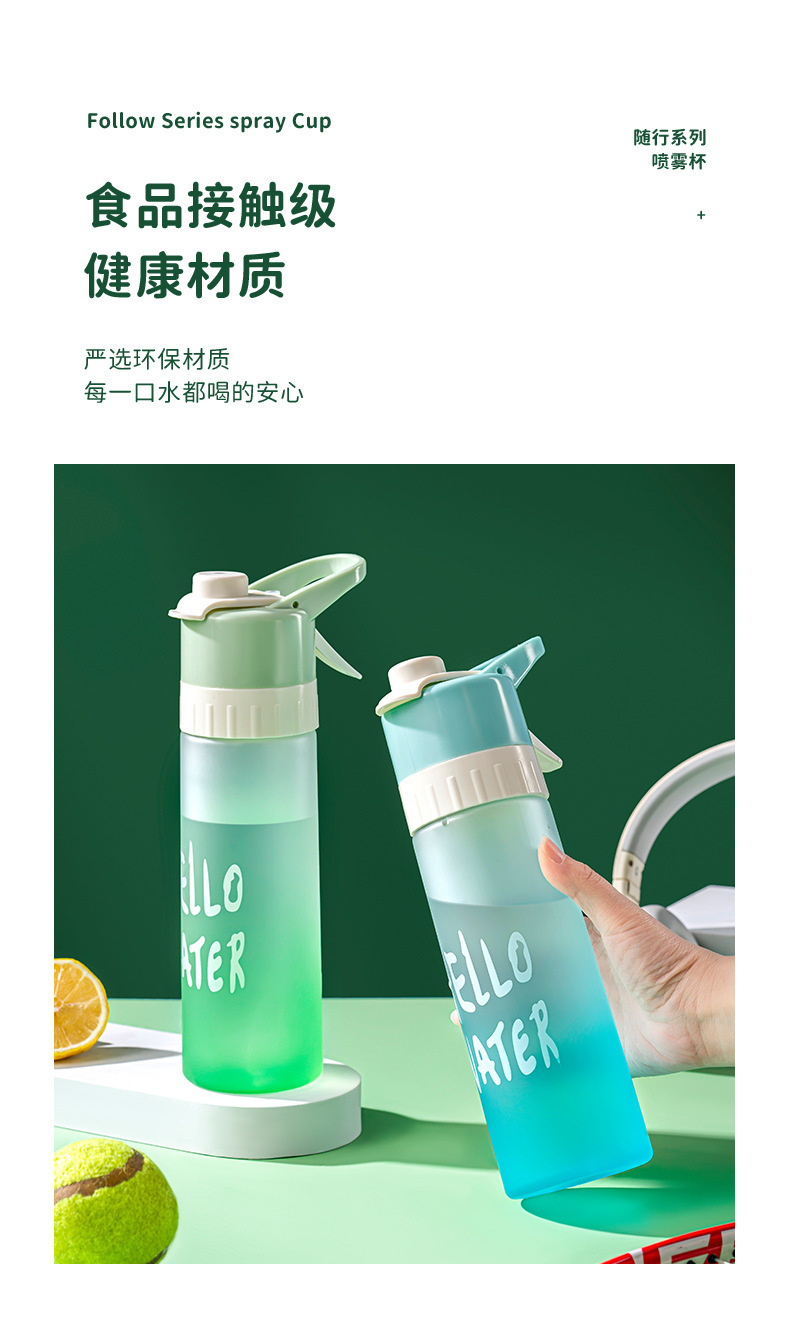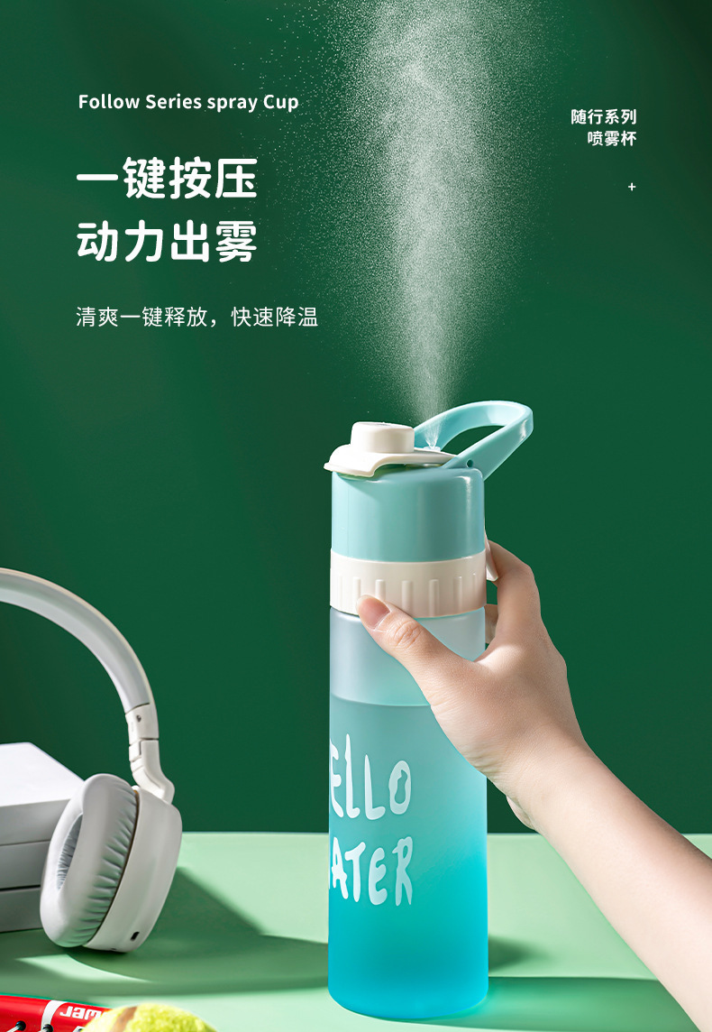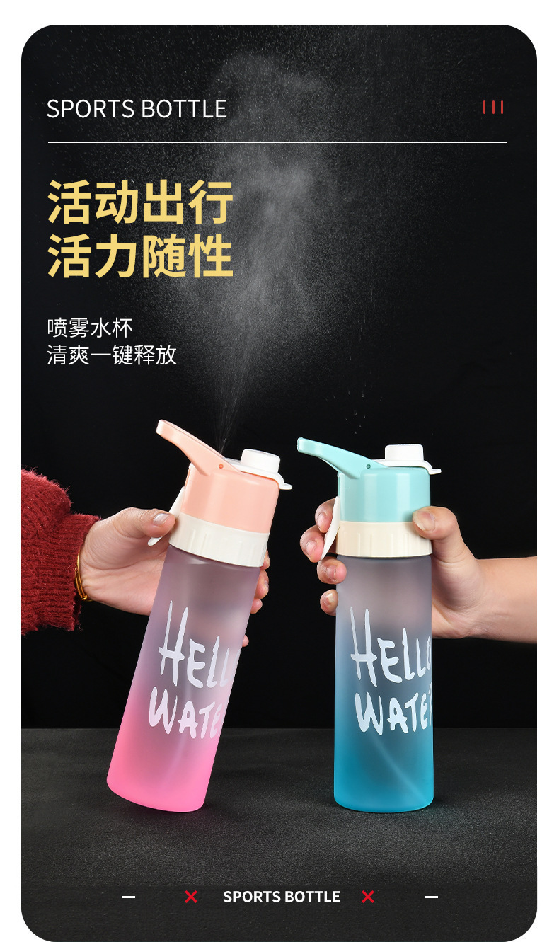 【喷雾水杯!清爽一键释放】高颜值运动喷雾杯大容量塑料水杯 学生吸管便携水壶 防烫耐高温户外