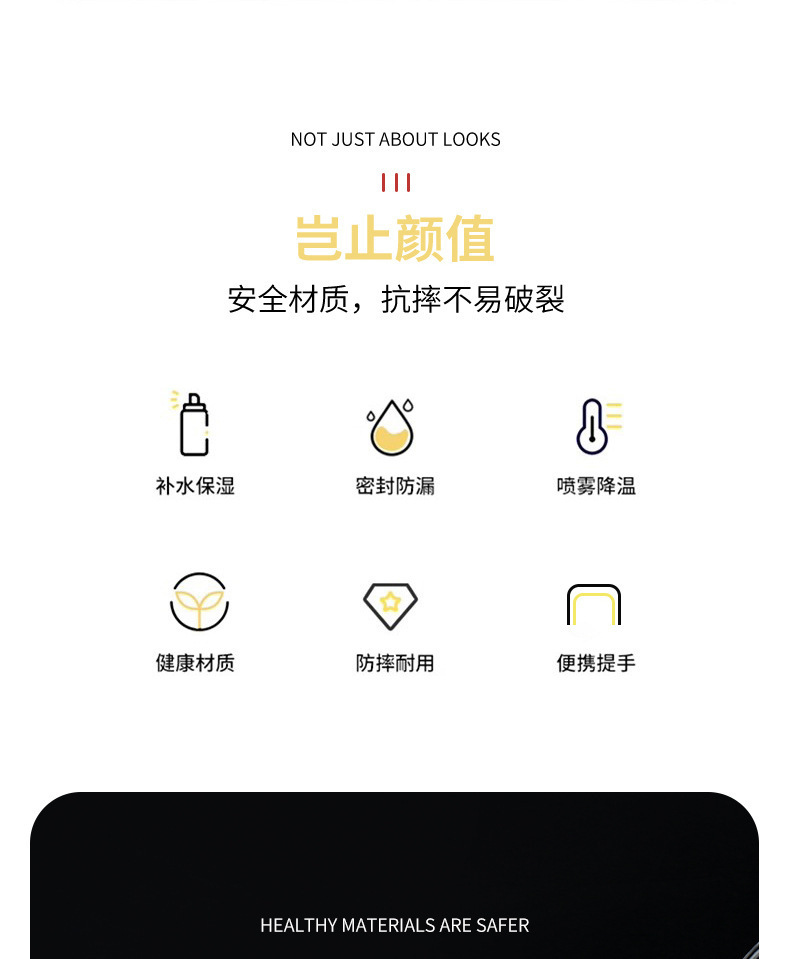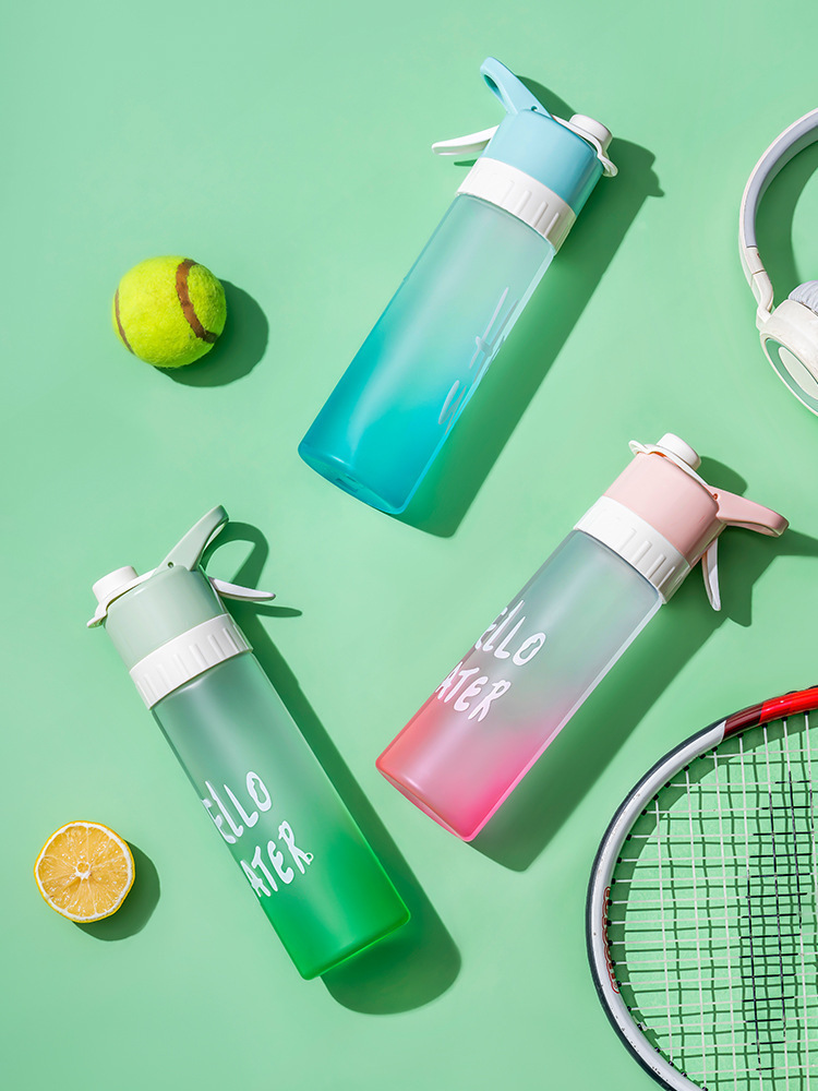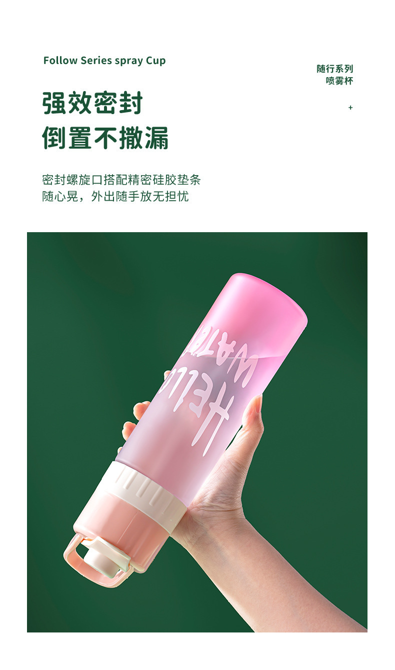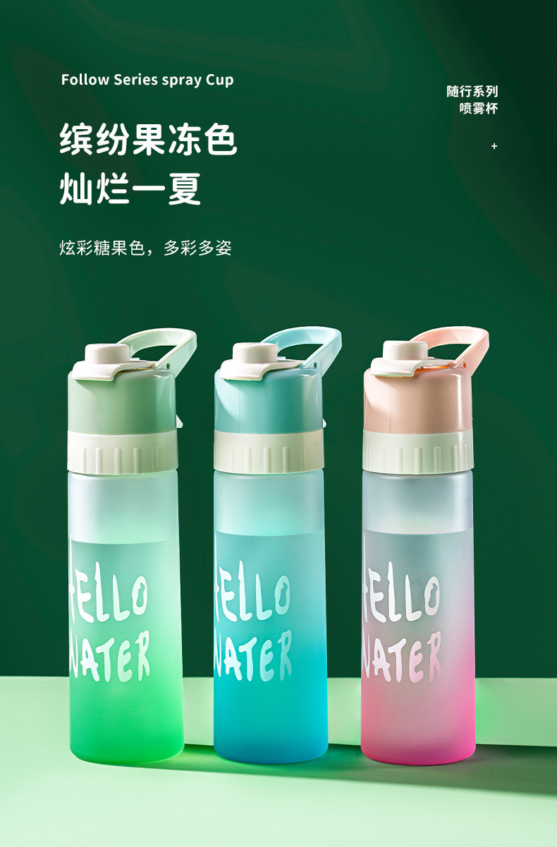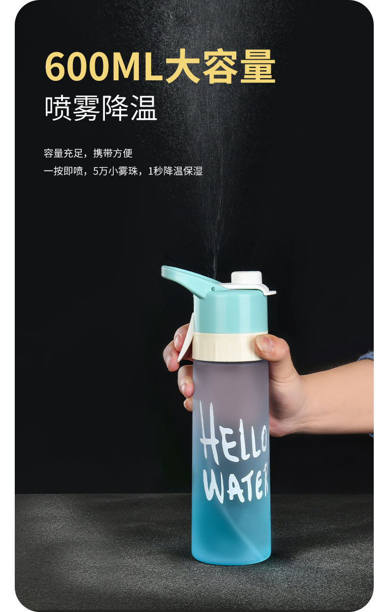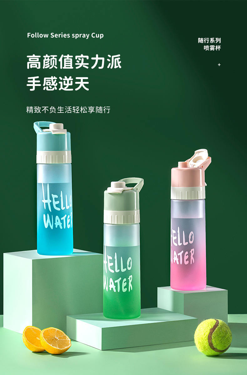 【喷雾水杯!清爽一键释放】高颜值运动喷雾杯大容量塑料水杯 学生吸管便携水壶 防烫耐高温户外