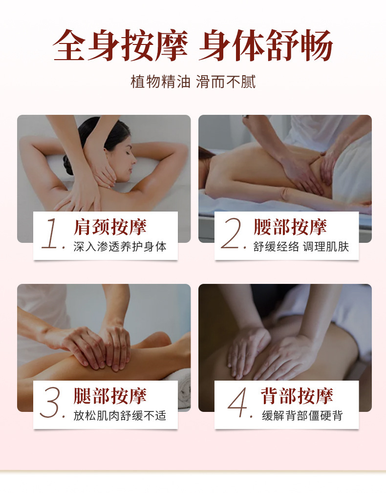 身体按摩精油刮痧推拿开背玫瑰花瓣润肤油美容院按摩SPA足浴专用