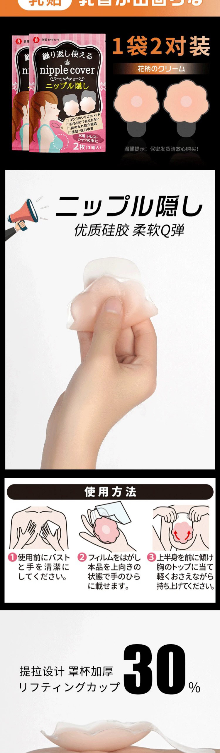 「单盒30枚装」日式防走光贴领口男女衣服防漏贴胸口裙子防汗防滑固定隐形贴配饰