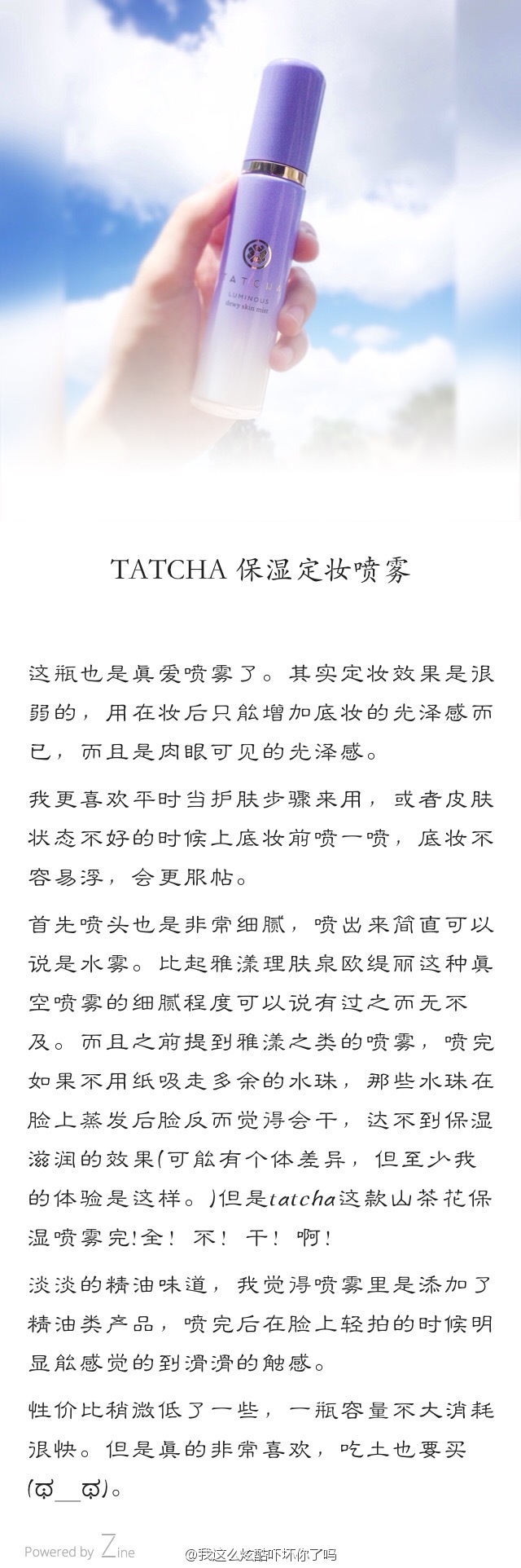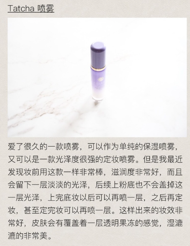 此外我还经常会在懒得护肤的时候只用它,因为它喷上脸之后即使不叠加其他产品也不会有拔干的现象,可以维持比较久的保湿感。