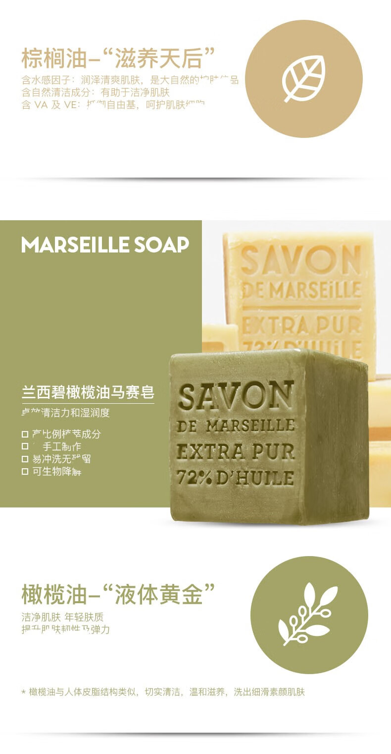 这款马赛皂推荐用来作为沐浴以及清洁衣物,虽然官方说明也是可以用于洁面,