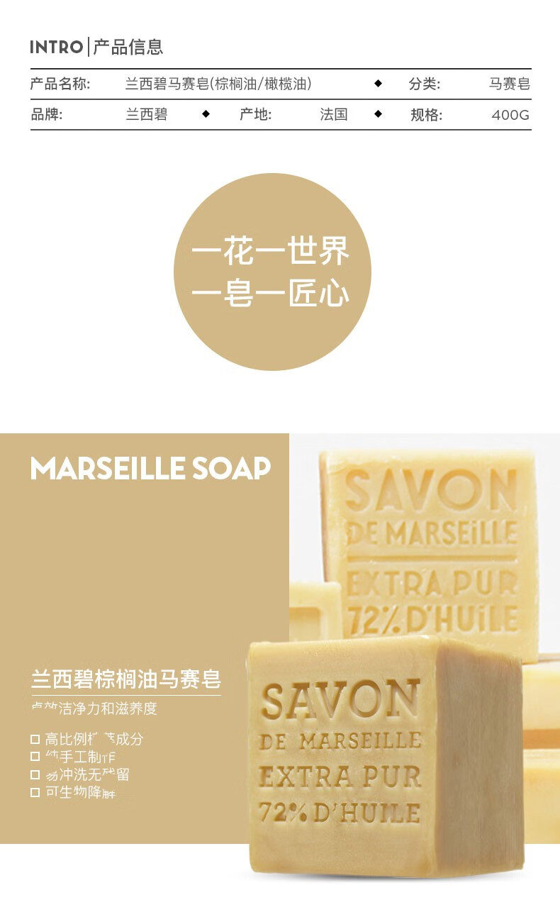 【商品名称】法国LCDP兰西碧马赛皂400g/块