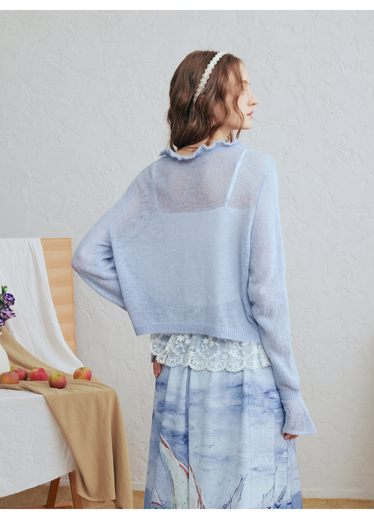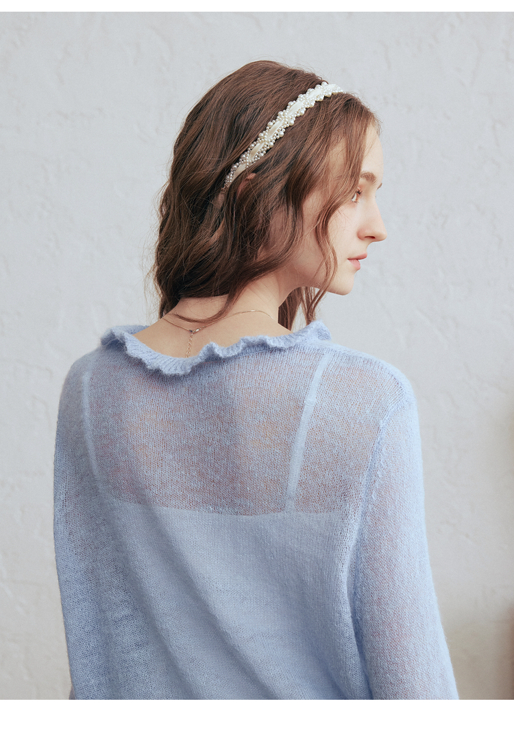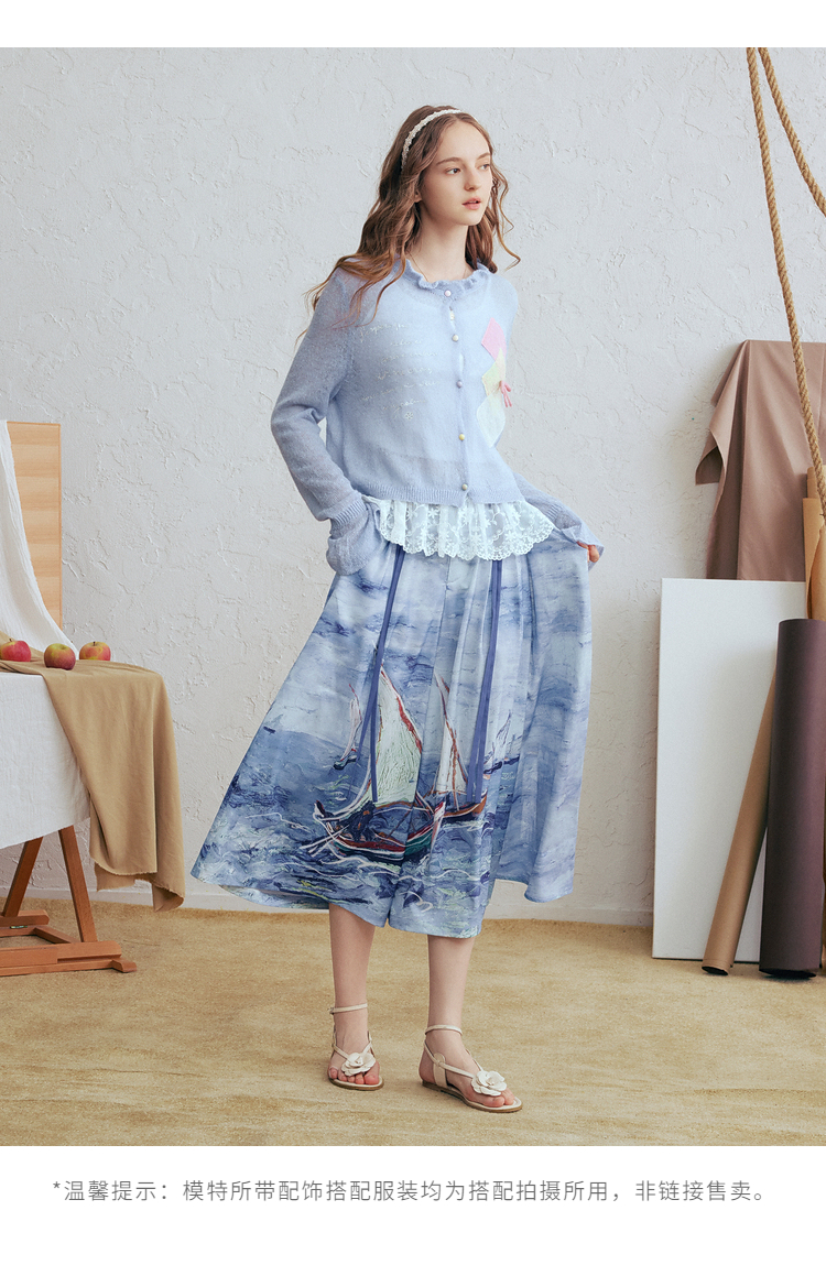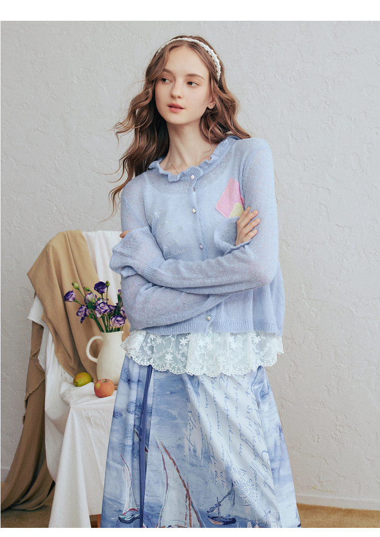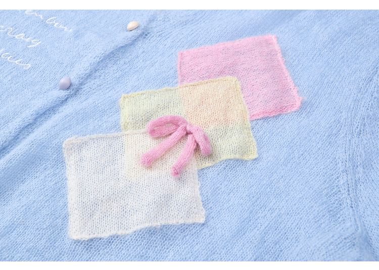两三事梵高文艺珍珠来信2026春新款拼色菱形格刺绣薄款针织开衫女