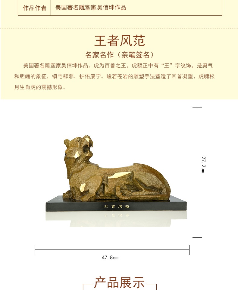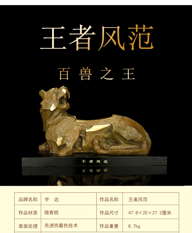 宇达青铜全铜虎摆件《王者风范》十二生肖 创意装饰 家居工艺摆件 长47.8cm