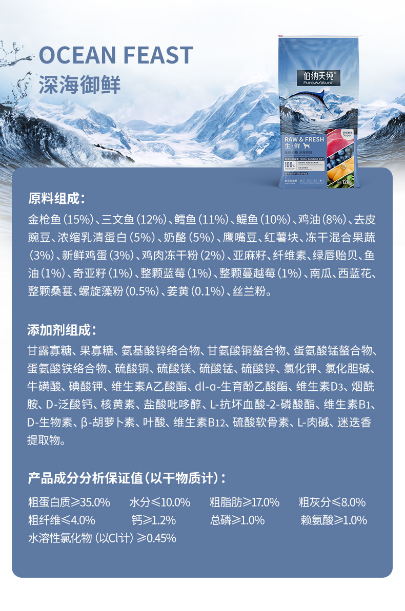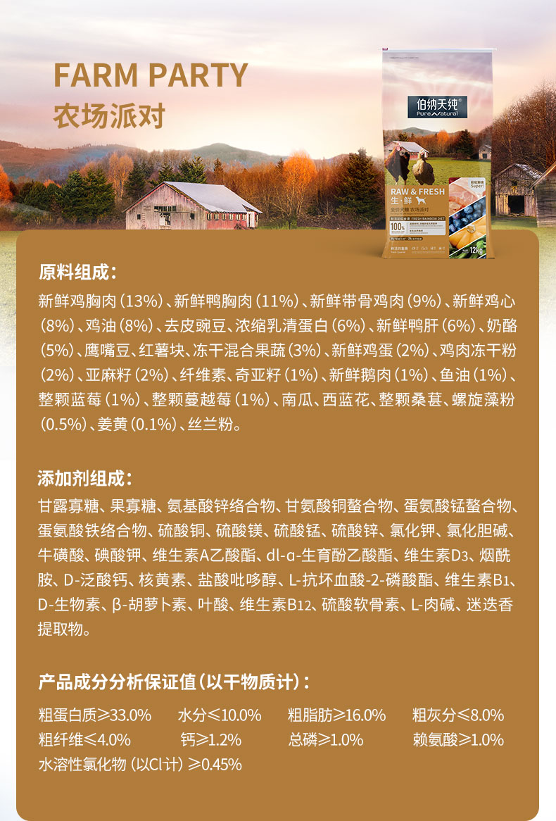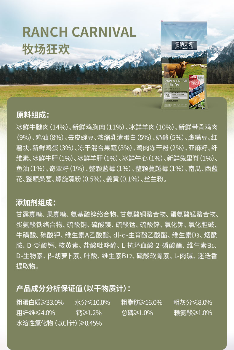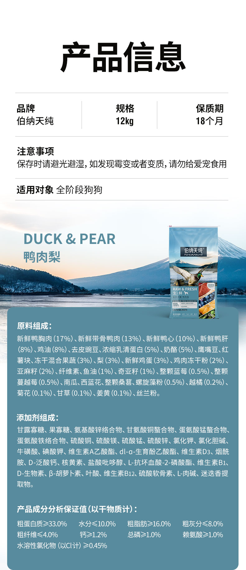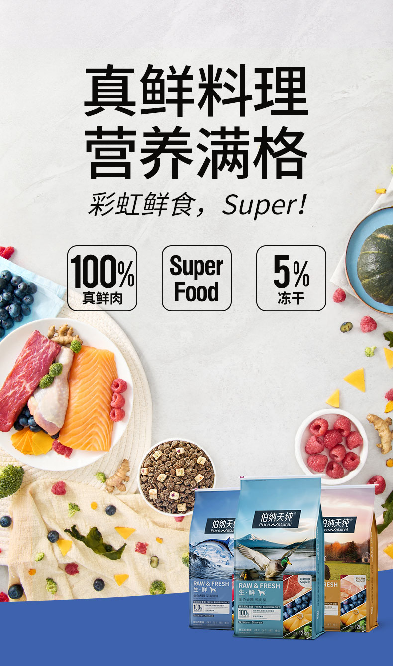 伯纳天纯生鲜super鲜肉狗粮冻干粮12kg 泰迪金毛通用犬粮