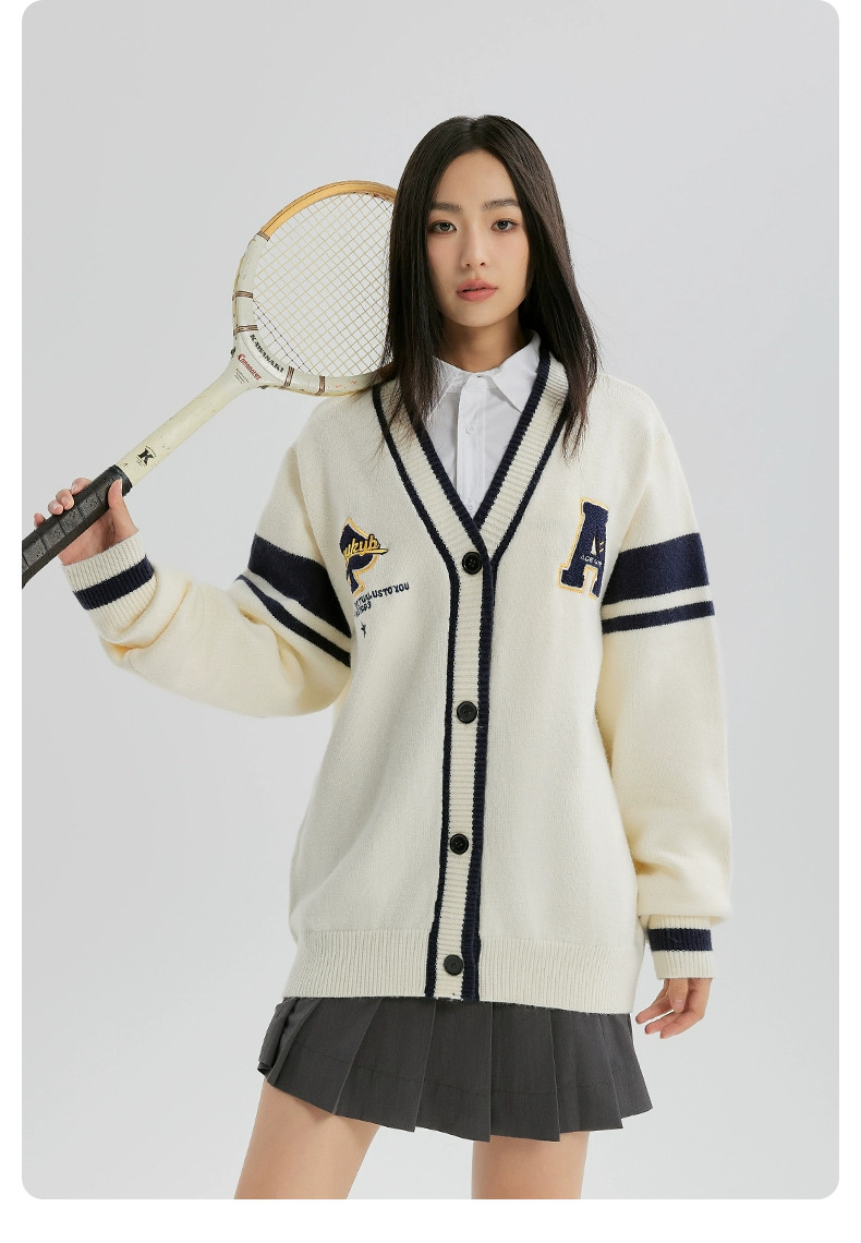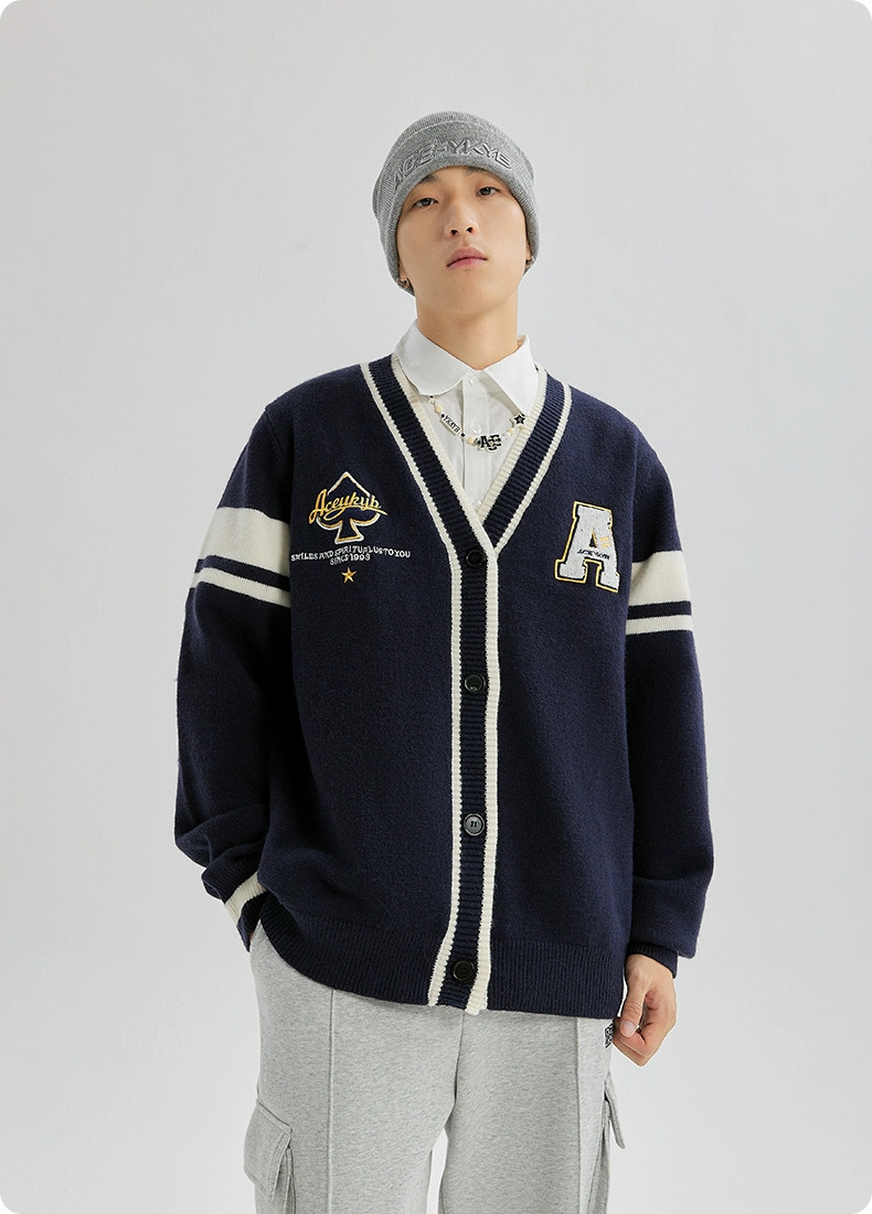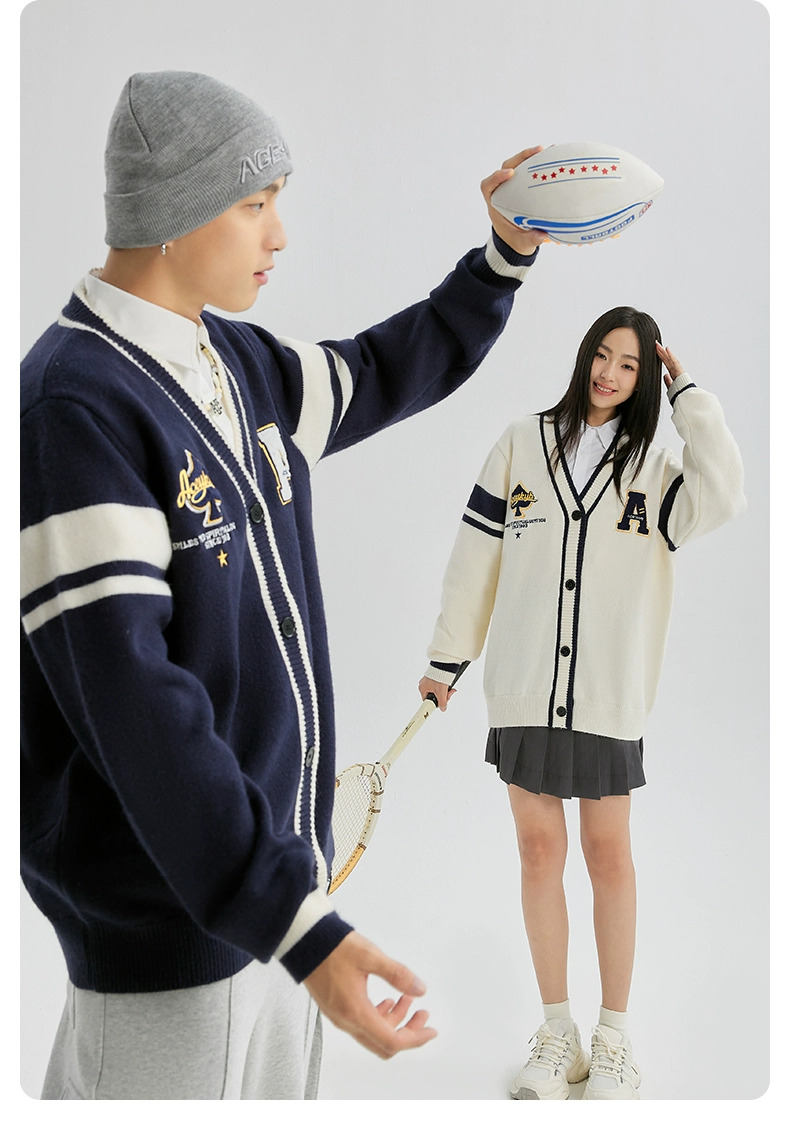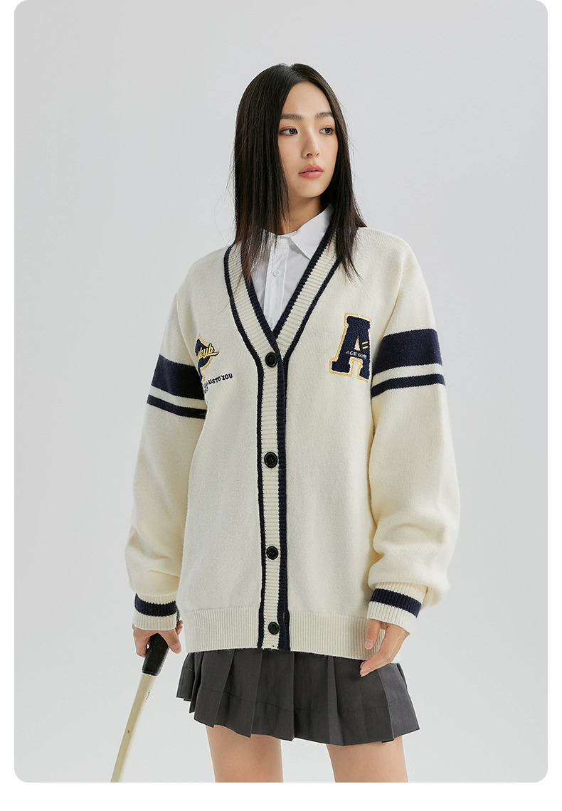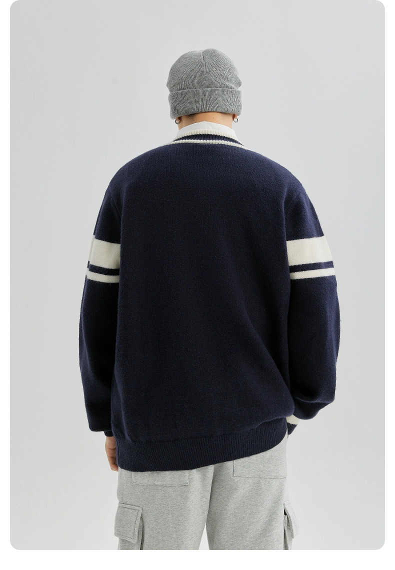 [买就送背心]YKYB黄子韬开衫毛衣新款时尚学院风条纹撞色外套宽松百搭针织衫