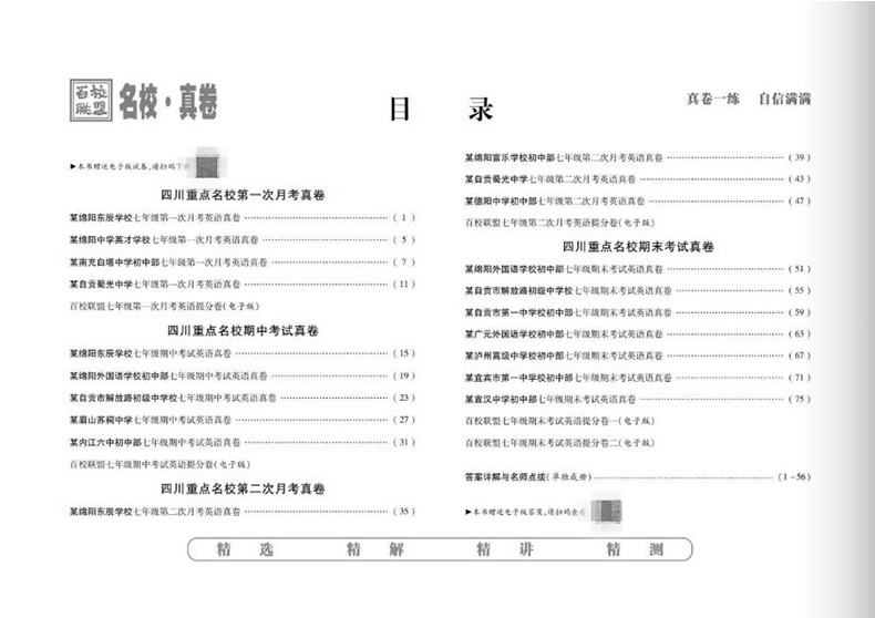 百校联盟七八年级上下册语文数学英语物理试卷人教北师大教科版四川名卷初中名校月考期中期末真卷