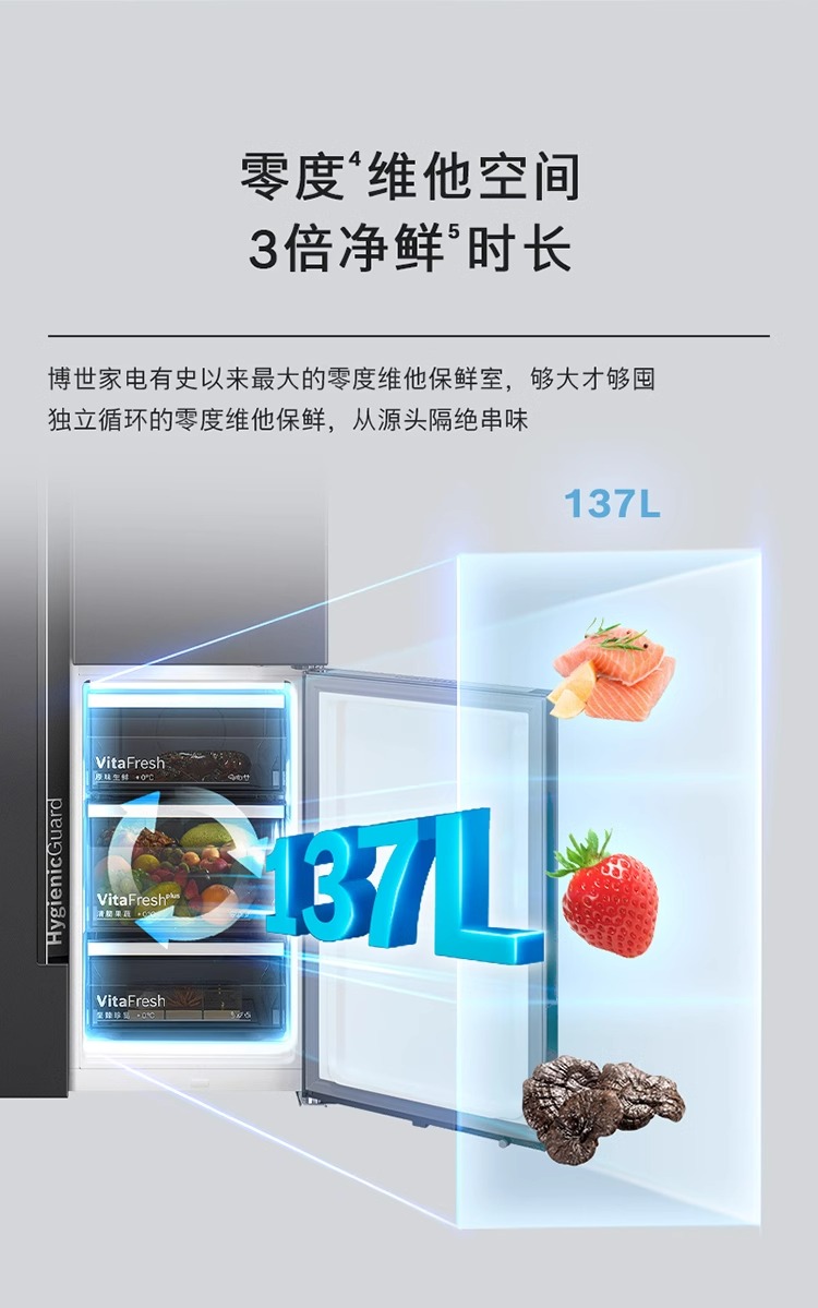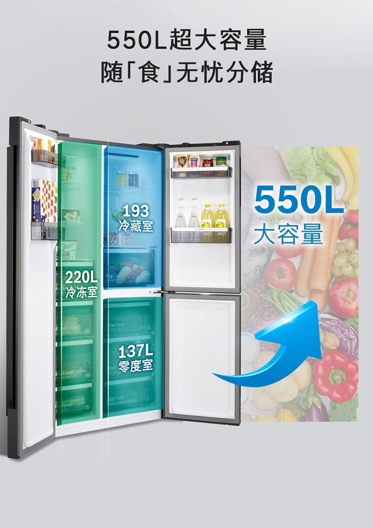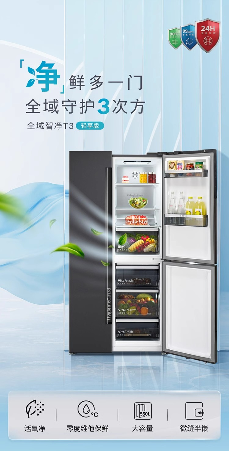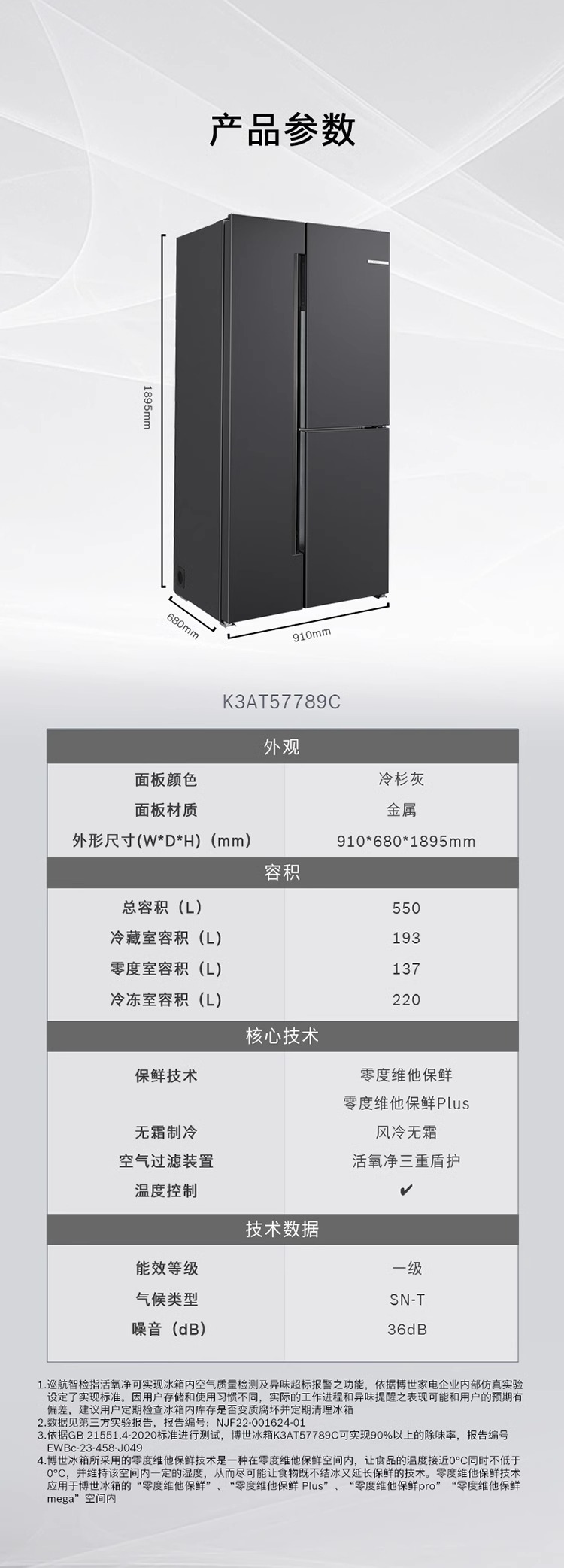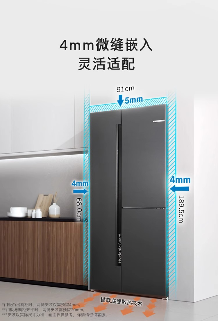 博世(BOSCH) 530升全域智净T3对开双循环活氧零度保鲜无霜冰箱 K3AT57789C冷杉灰