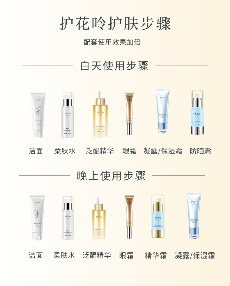 护花呤始创于2002年,一个因爱而生的小众国货品牌,源自于医学家对妻子的爱,为了让生育后的妻子容颜重返年轻,医学家试遍成分研制配方,终于推出了一系列年轻减龄的抗衰老护肤品。(注:效果可测试)