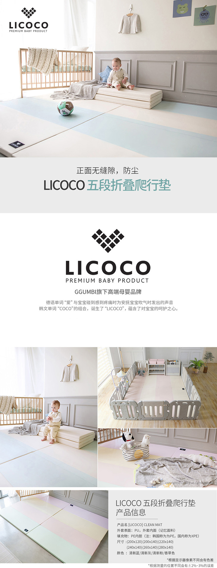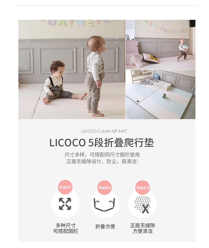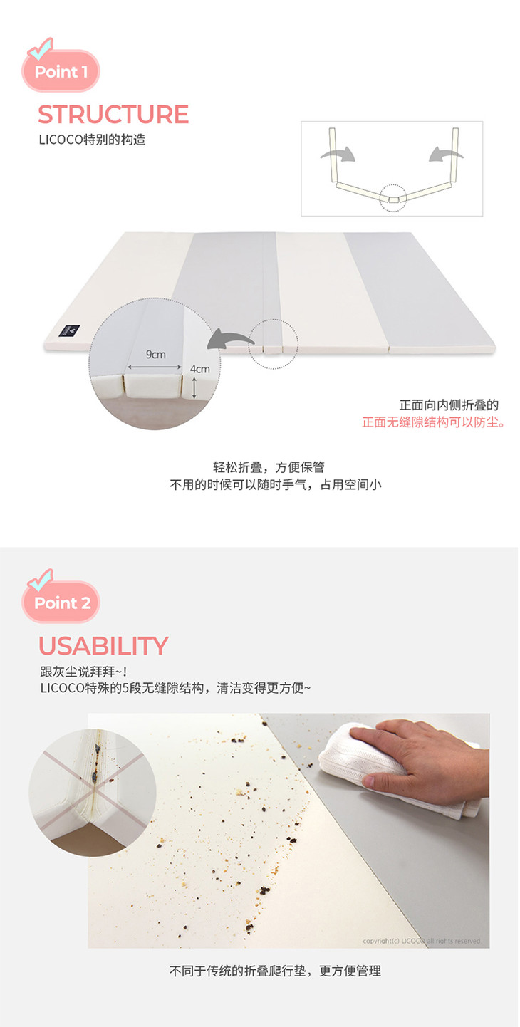 【LICOCO】里科科宝宝无缝折叠爬行垫婴儿爬爬垫游戏垫PU加厚4cm